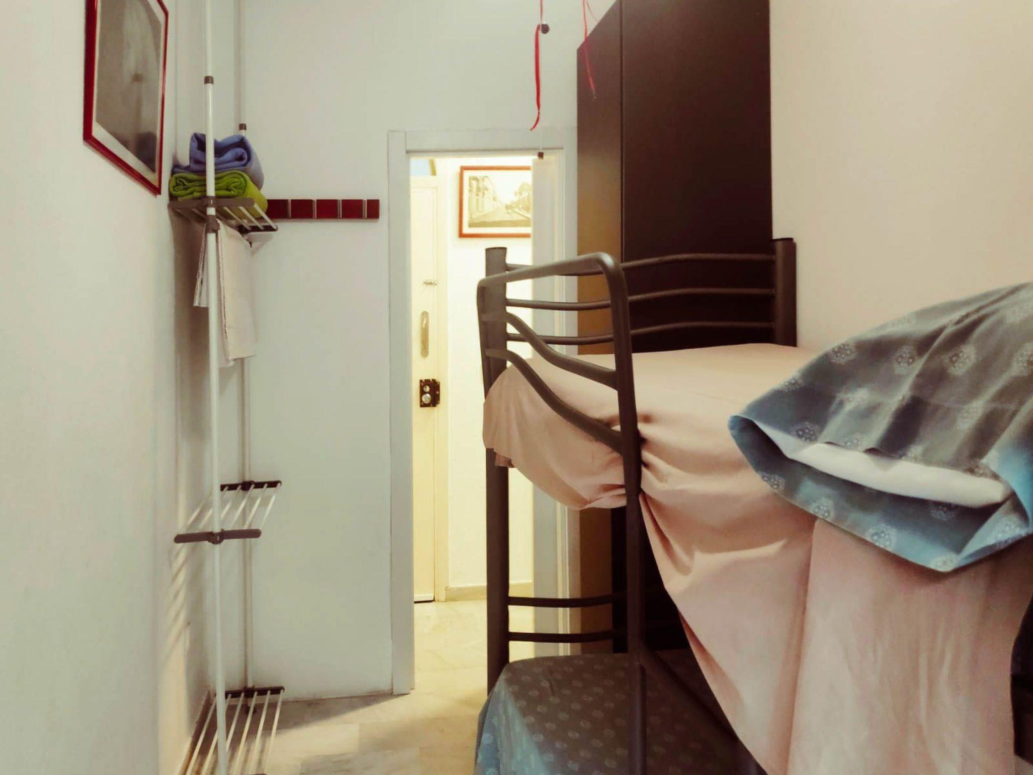 The interior of the flat is perfectly equipped to guarantee a comfortable and pleasant stay. There are two double bedrooms, the first with a bunk bed ideal for younger guests or friends travelling together, and the second with a double bed, perfect for couples. The living room, a full bathroom, and a fully equipped kitchen are complemented by three balconies overlooking the lively street and a window onto the quiet central courtyard, giving the space exceptional light and ventilation.