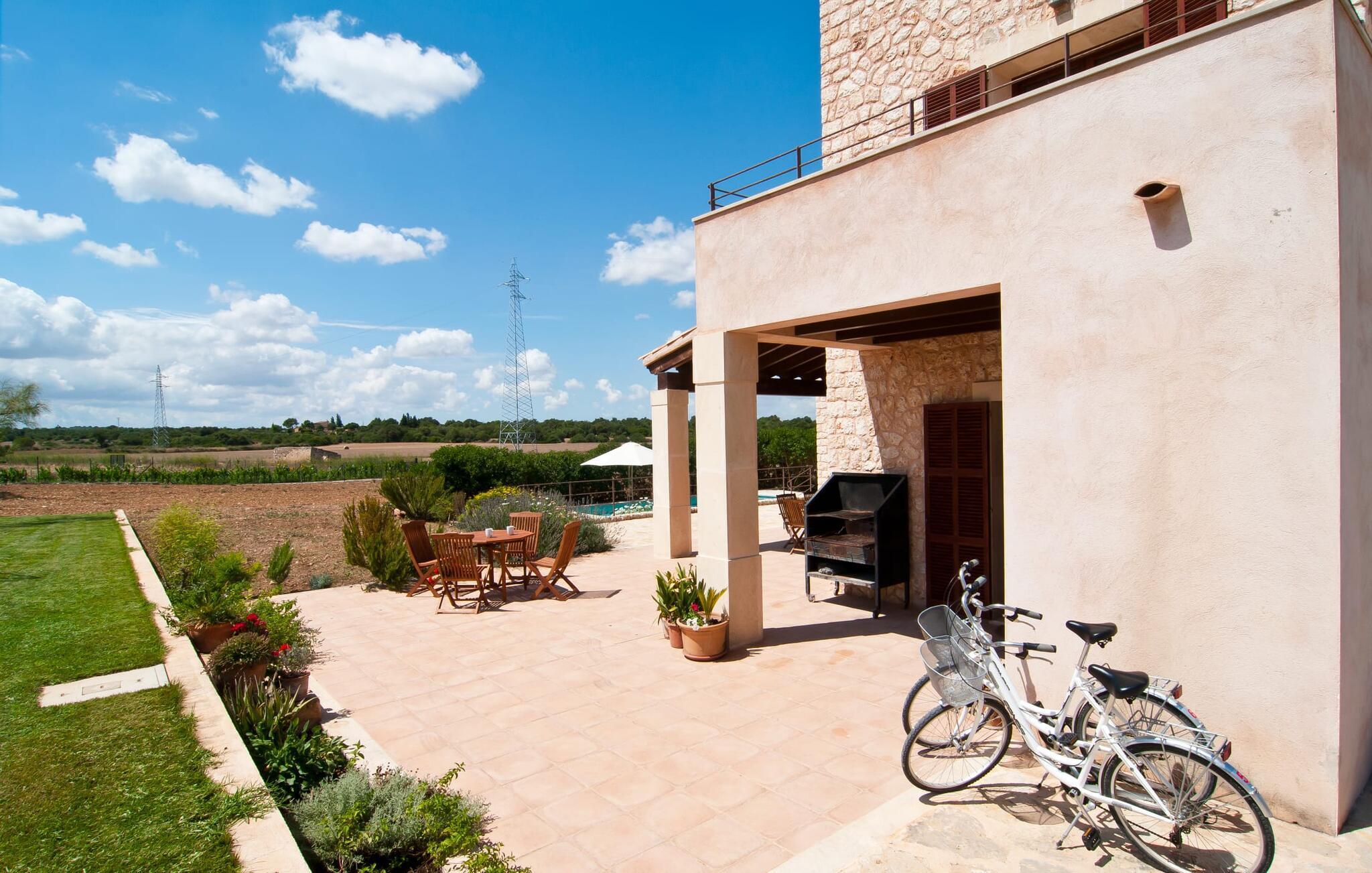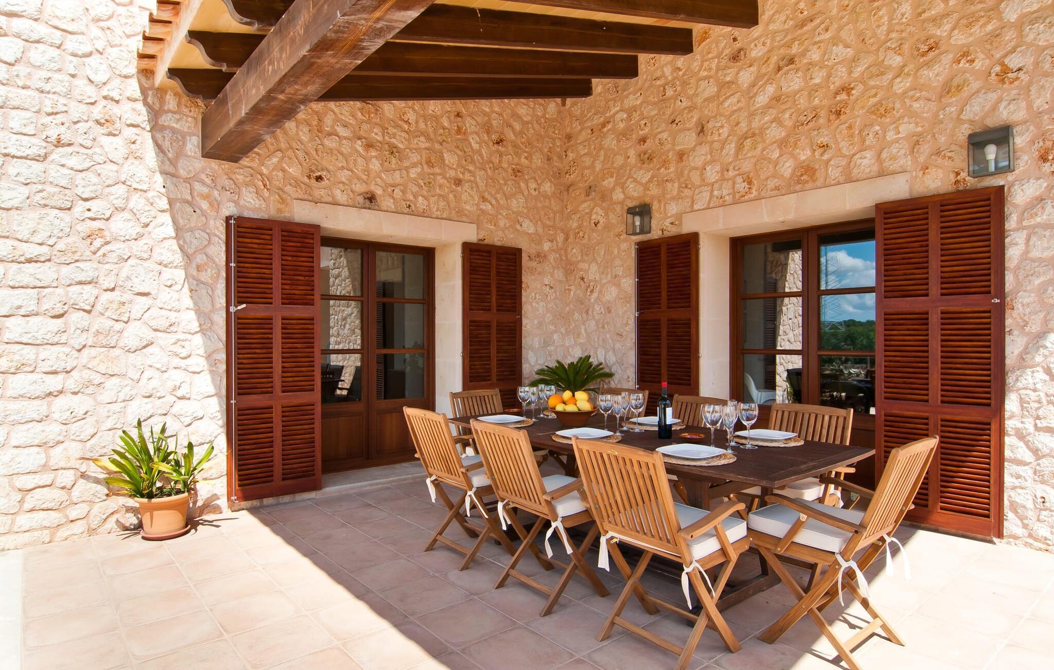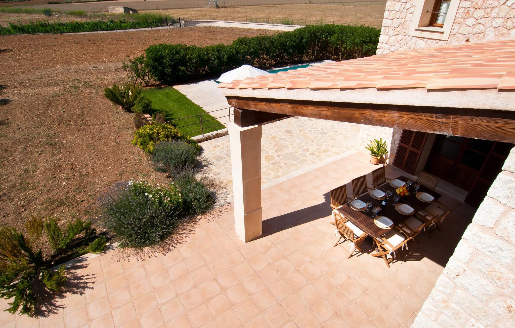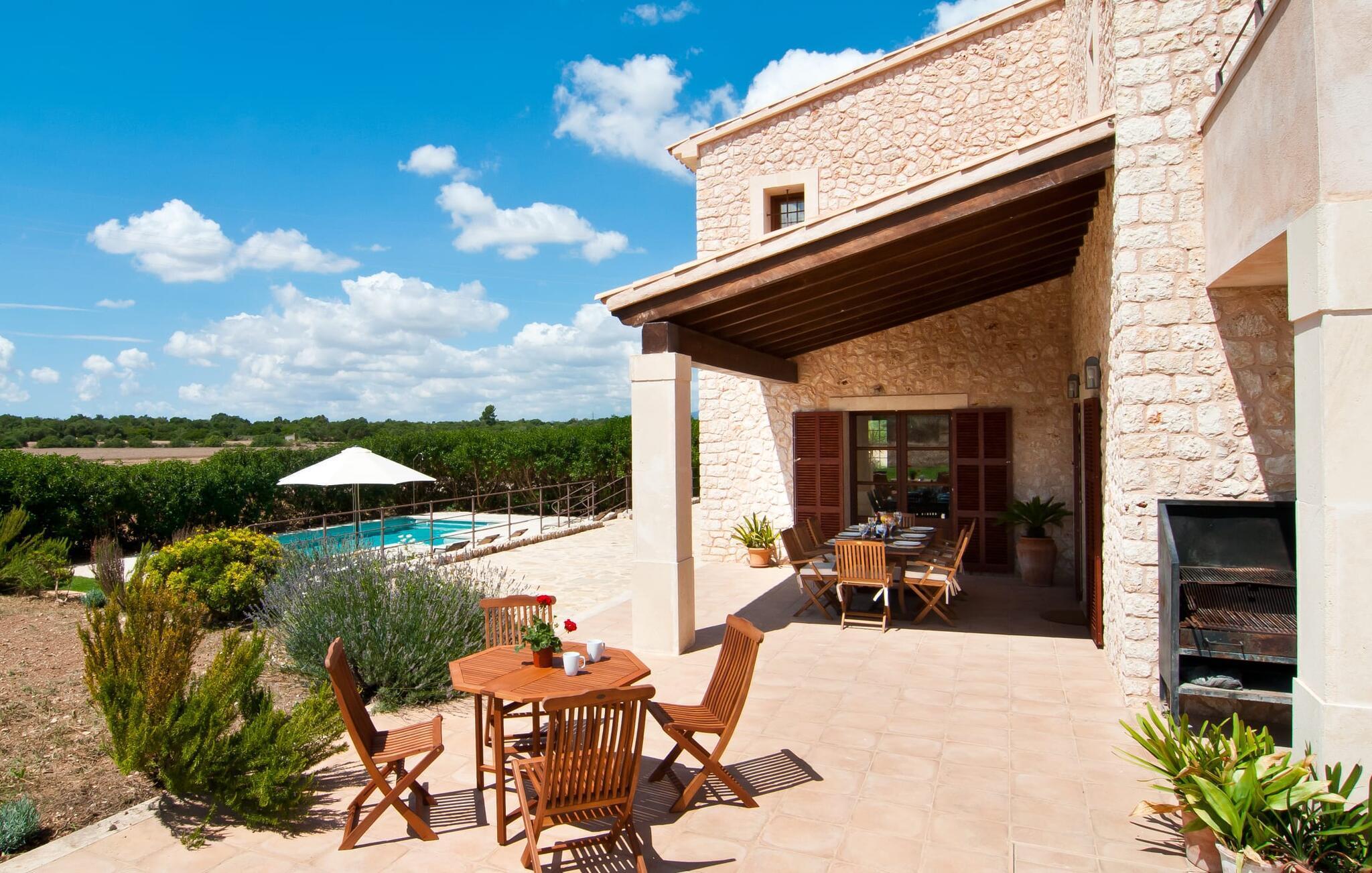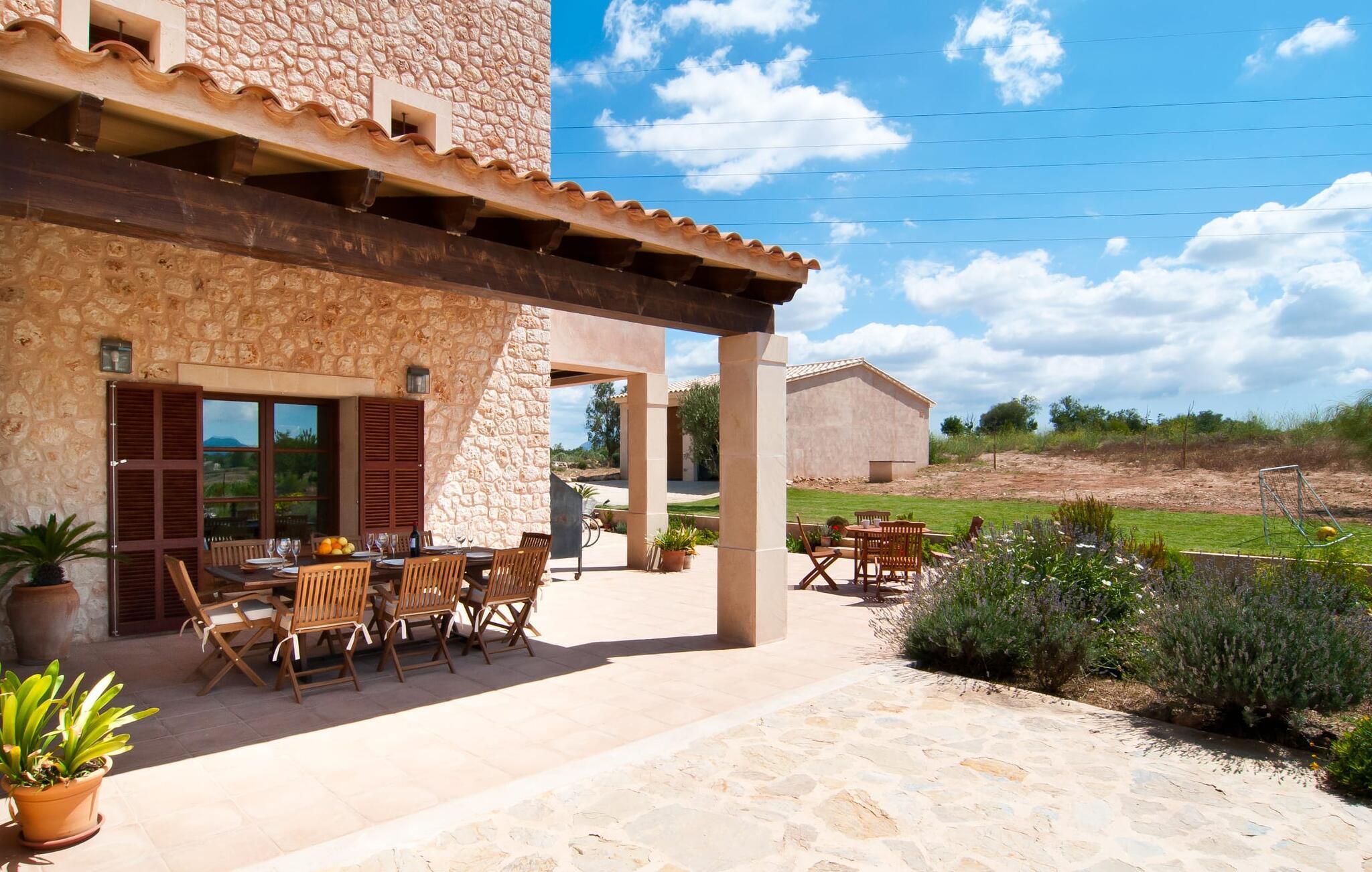 Selv på avstand kan du se hvilket fortryllende feriehus Villa Son Perot er. Det toetasjes huset med en fantastisk vakker fasade i naturstein og vinduer og skodder i tre ligger på en 15 000 m² stor tomt med gode transportforbindelser mellom Manacor og Vilafranca, og det ligger også på landsbygda i Bonany. Eiendommen tilbyr også alt du trenger for en fullstendig tilfredsstillende ferie. En del av den vakkert anlagte eiendommen er preget av terrasser og plener samt ulike dekorative middelhavsplanter i blomsterbed og kar. På varme dager kan du kjøle deg ned i det 9 meter lange bassenget foran huset. Bassenget er lett tilgjengelig via en bred trapp og er omkranset av en innbydende solterrasse. Seks komfortable solsenger er tilgjengelig for utstrakt avslapning. Her kan du ligge og drømme under den dypblå middelhavshimmelen og legge hverdagen langt bak deg. En parasoll er tilgjengelig for ekstra beskyttelse mot UV-stråler. Terrassen rett foran huset, som kan nås via noen få trappetrinn, gir også mulighet til å slappe av i den luftige skyggen og nyte de fantastiske omgivelsene derfra. Du kan sitte ved det store spisebordet i en herlig atmosfære, ta med deg måltidene ut og la blikket vandre i det fjerne. Utekjøkkenet og grillen gir gode muligheter til å tilberede måltider utendørs, og gir deg muligheten til å lage regionale delikatesser med råvarer fra markedet.