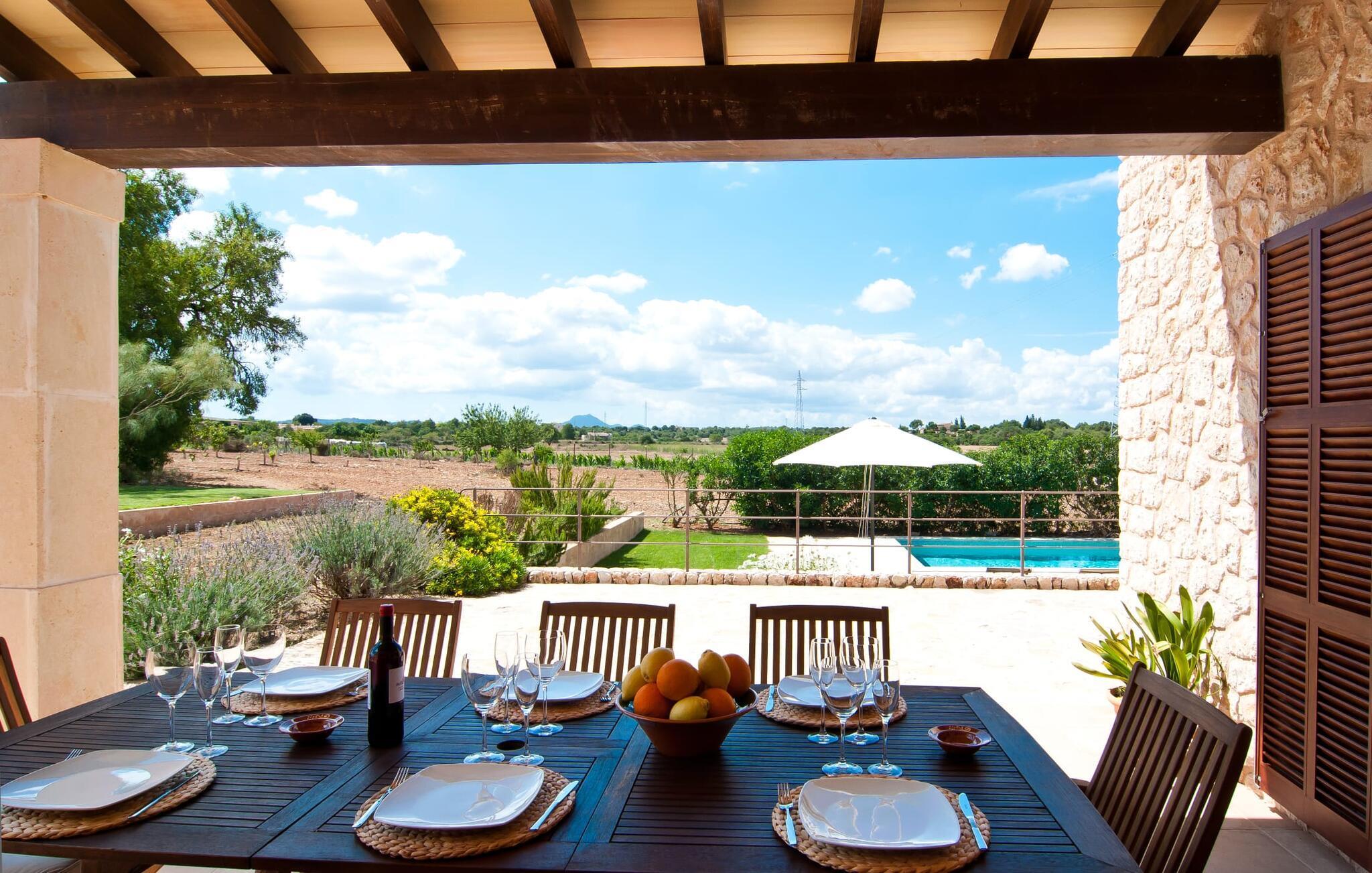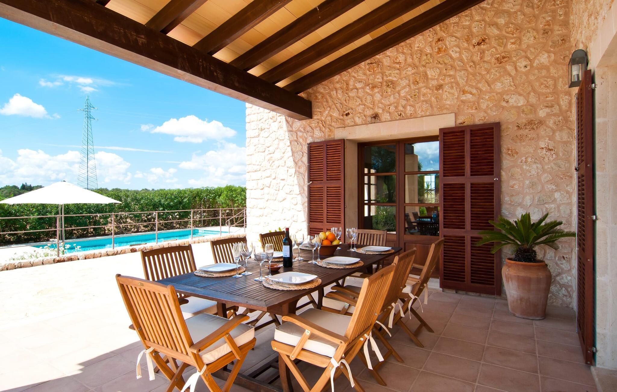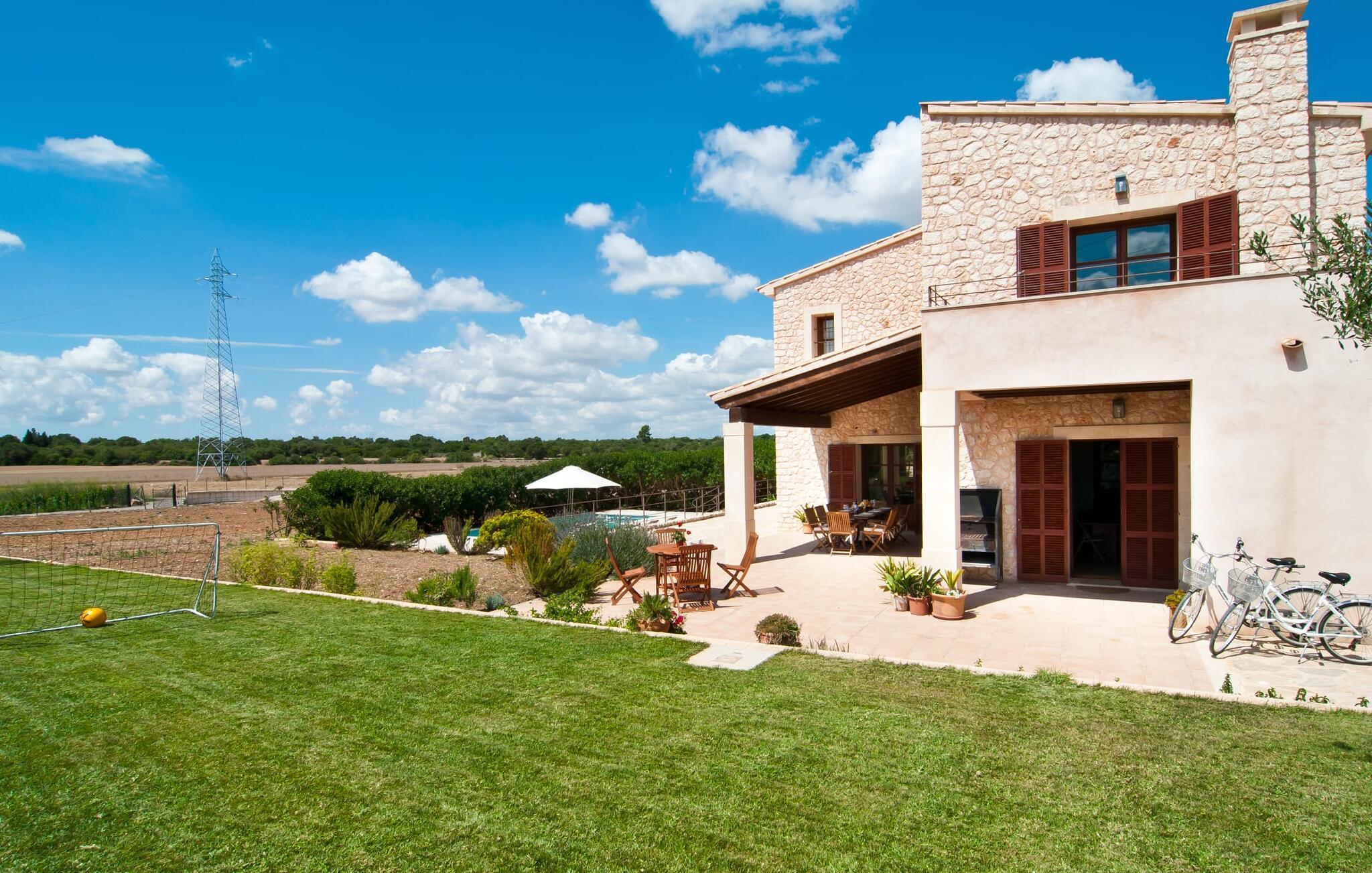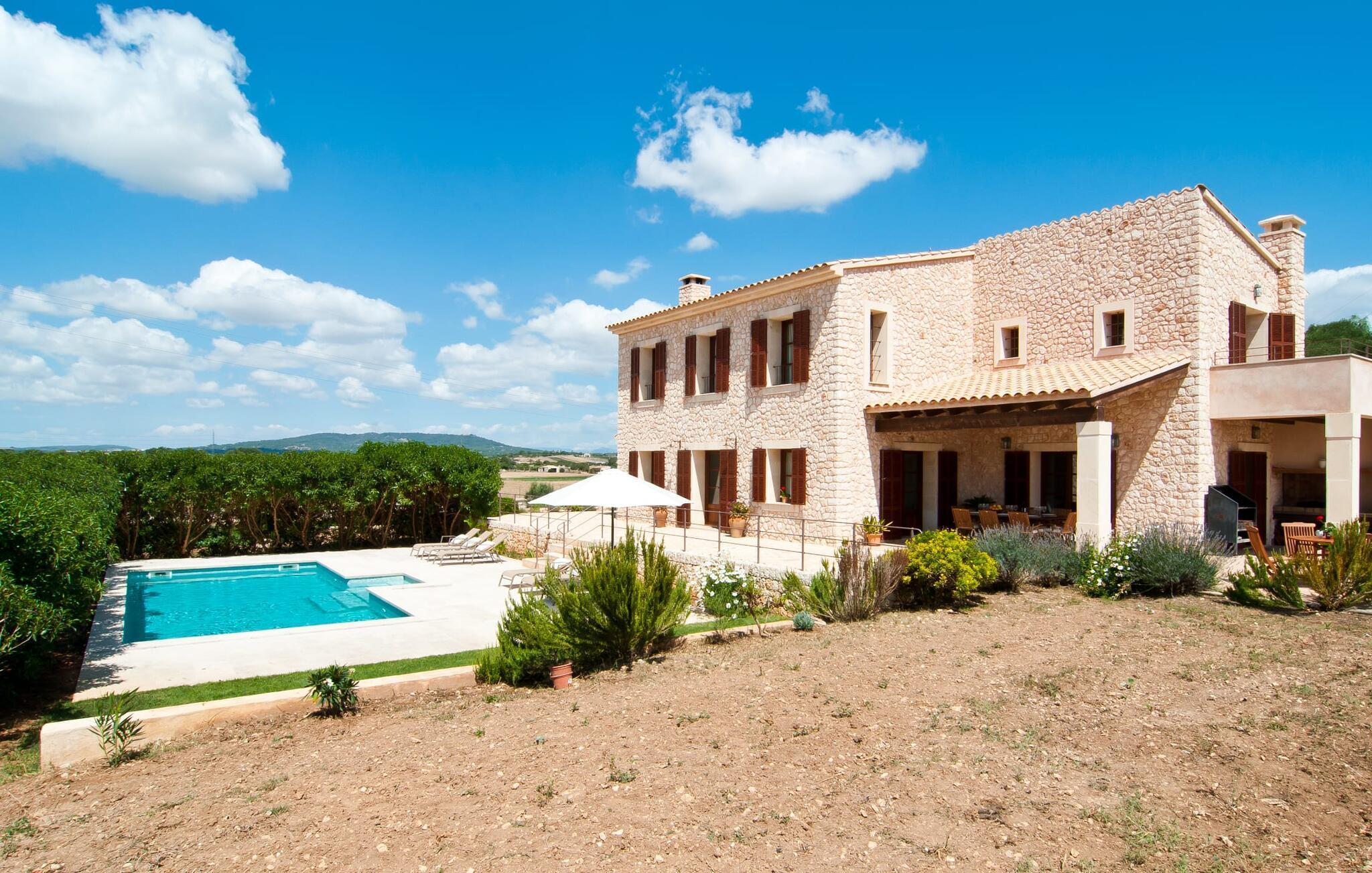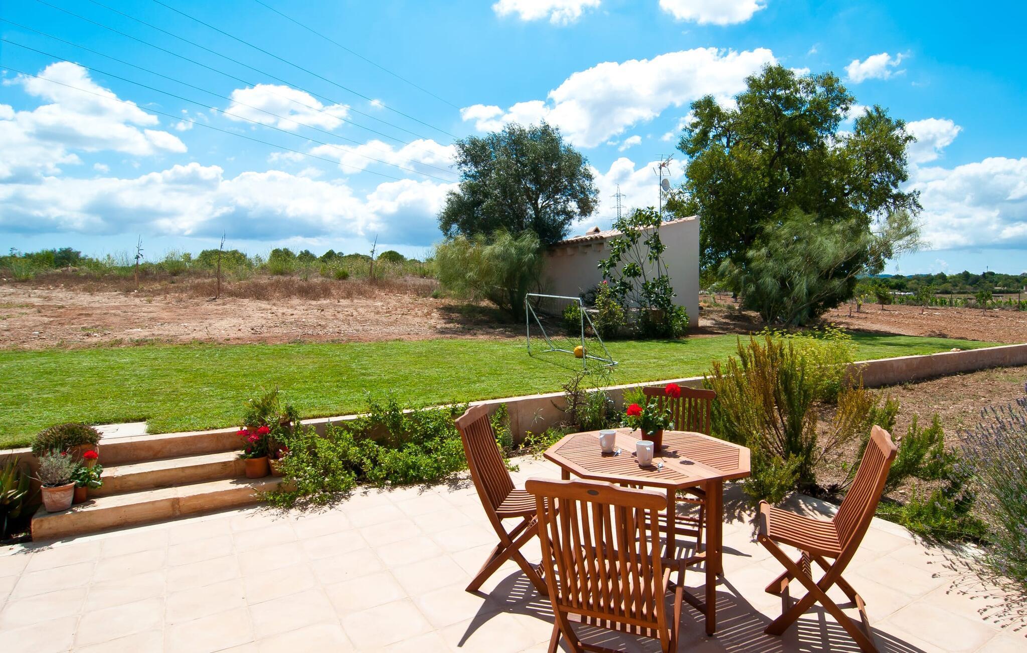 Selv på avstand kan du se hvilket fortryllende feriehus Villa Son Perot er. Det toetasjes huset med en fantastisk vakker fasade i naturstein og vinduer og skodder i tre ligger på en 15 000 m² stor tomt med gode transportforbindelser mellom Manacor og Vilafranca, og det ligger også på landsbygda i Bonany. Eiendommen tilbyr også alt du trenger for en fullstendig tilfredsstillende ferie. En del av den vakkert anlagte eiendommen er preget av terrasser og plener samt ulike dekorative middelhavsplanter i blomsterbed og kar. På varme dager kan du kjøle deg ned i det 9 meter lange bassenget foran huset. Bassenget er lett tilgjengelig via en bred trapp og er omkranset av en innbydende solterrasse. Seks komfortable solsenger er tilgjengelig for utstrakt avslapning. Her kan du ligge og drømme under den dypblå middelhavshimmelen og legge hverdagen langt bak deg. En parasoll er tilgjengelig for ekstra beskyttelse mot UV-stråler. Terrassen rett foran huset, som kan nås via noen få trappetrinn, gir også mulighet til å slappe av i den luftige skyggen og nyte de fantastiske omgivelsene derfra. Du kan sitte ved det store spisebordet i en herlig atmosfære, ta med deg måltidene ut og la blikket vandre i det fjerne. Utekjøkkenet og grillen gir gode muligheter til å tilberede måltider utendørs, og gir deg muligheten til å lage regionale delikatesser med råvarer fra markedet.