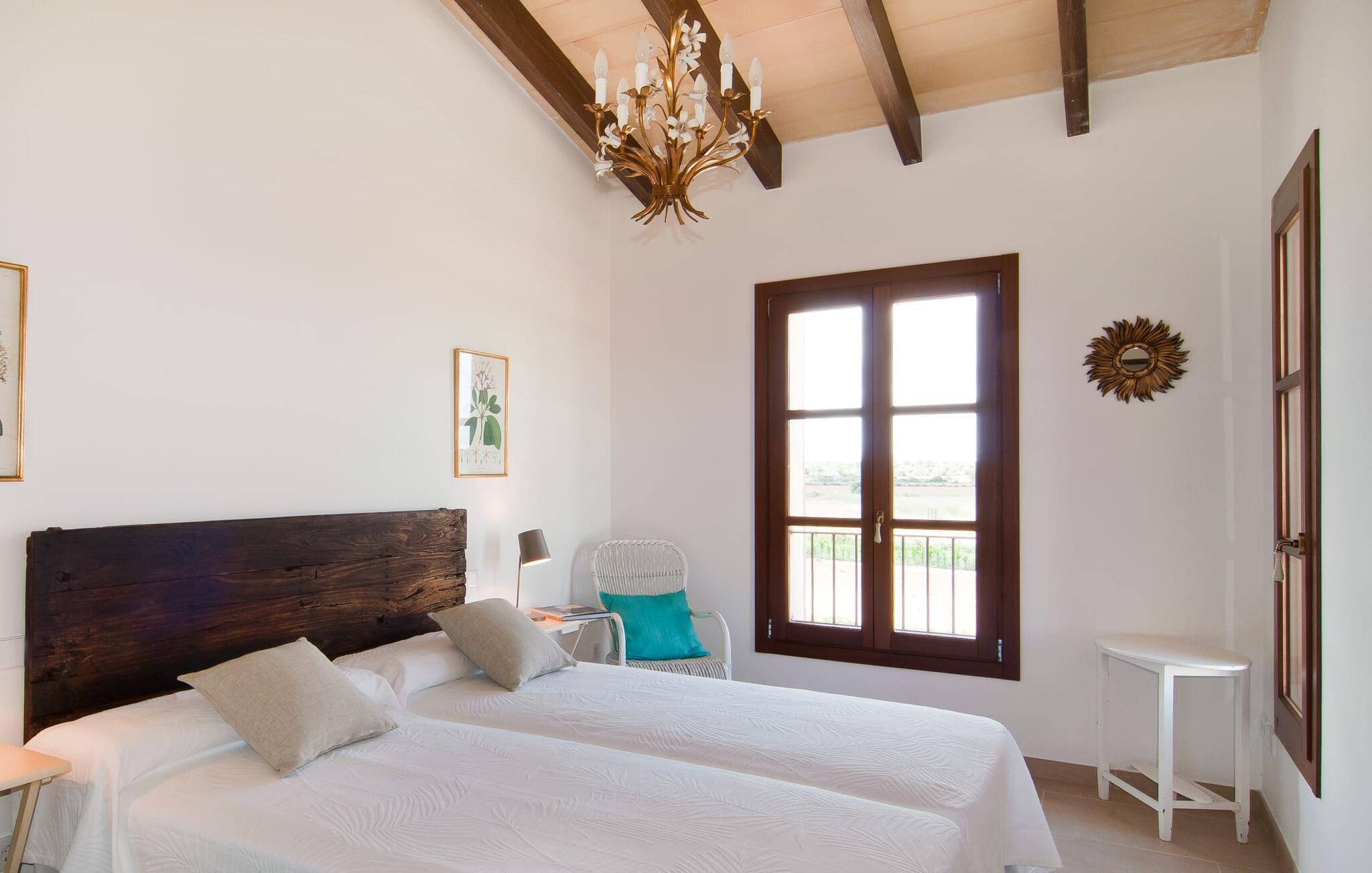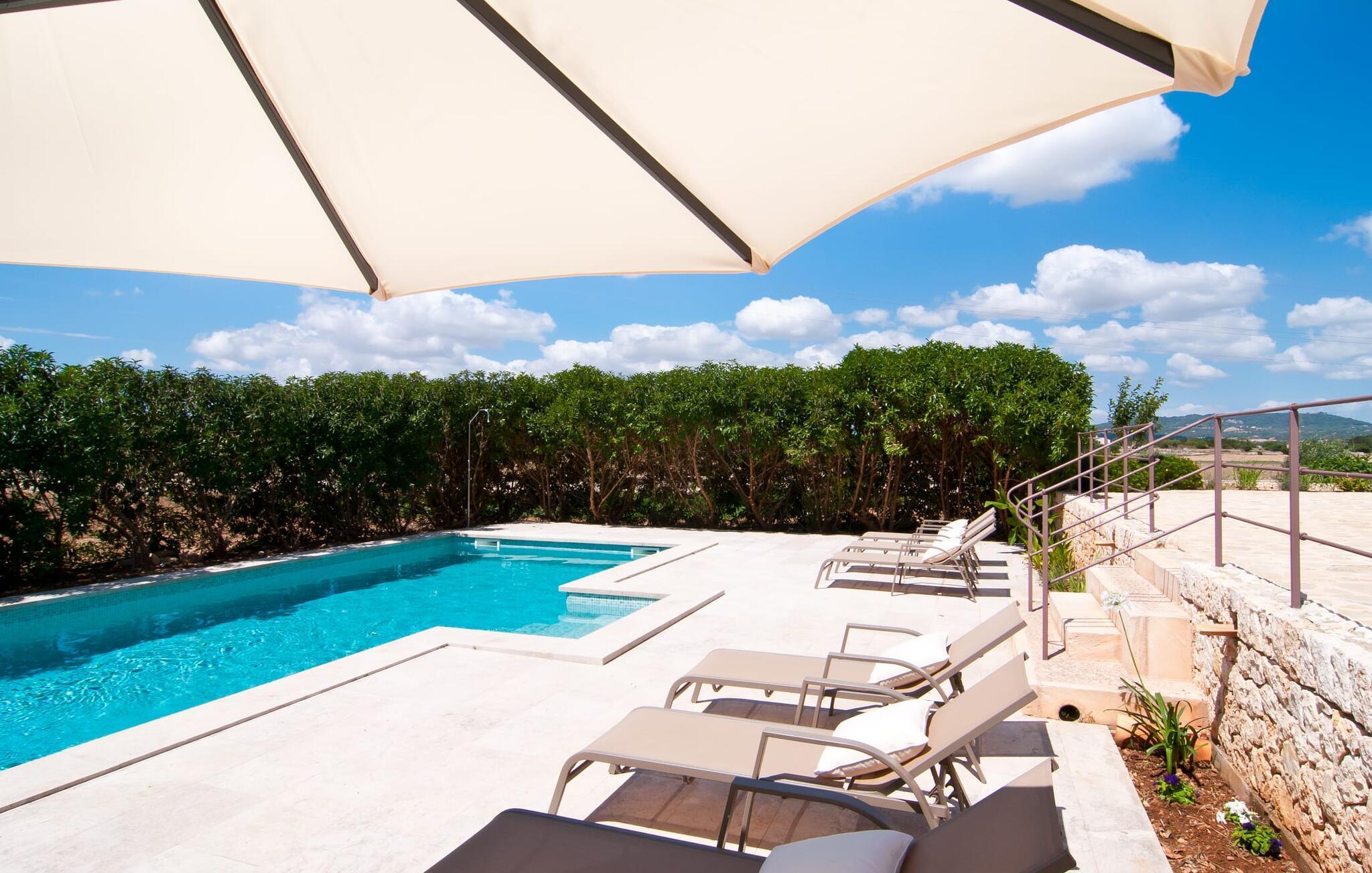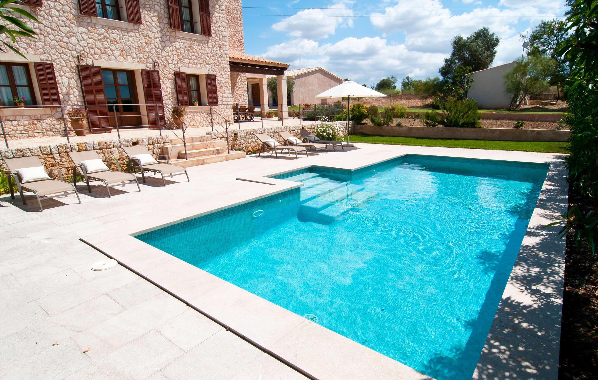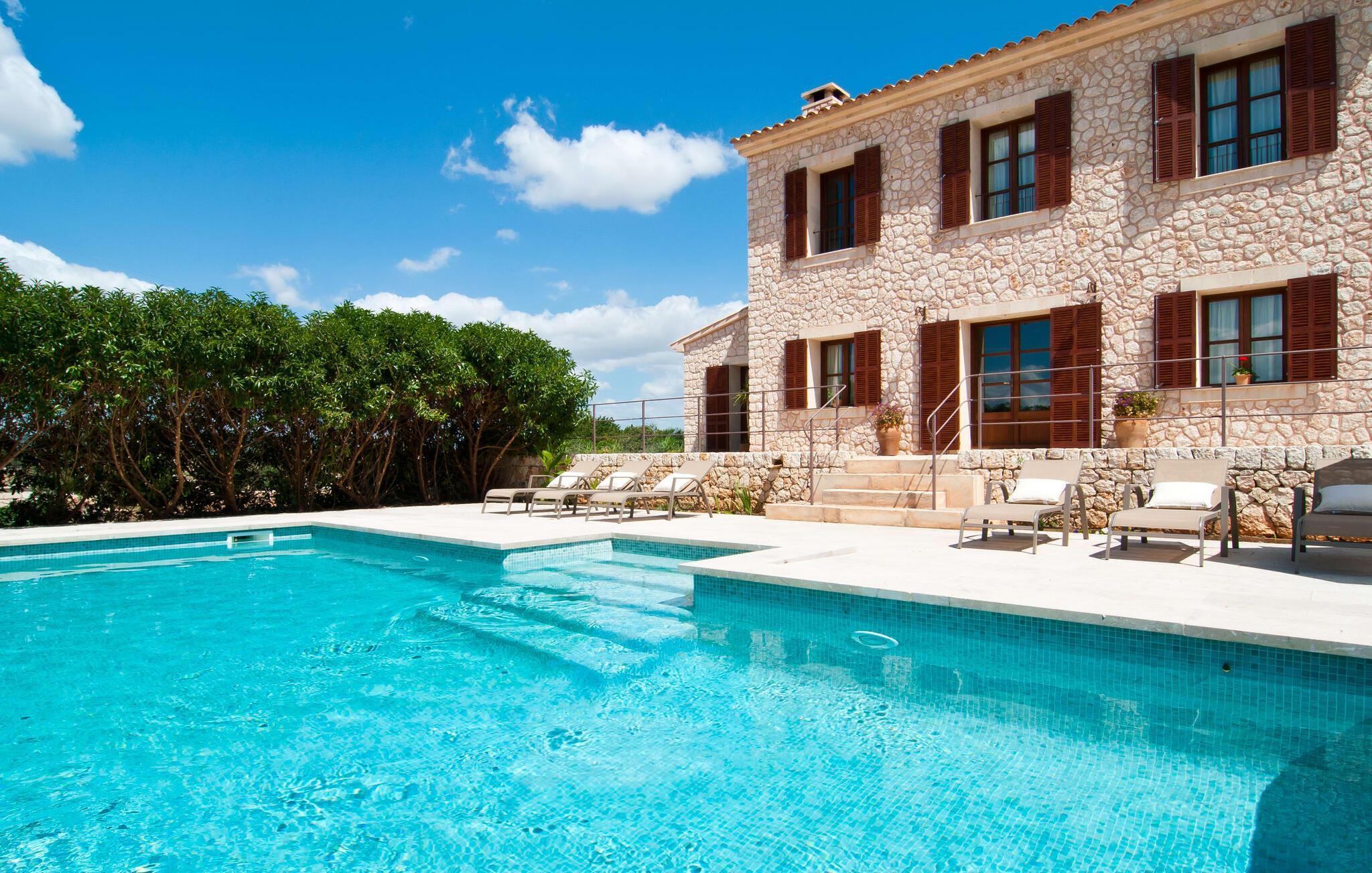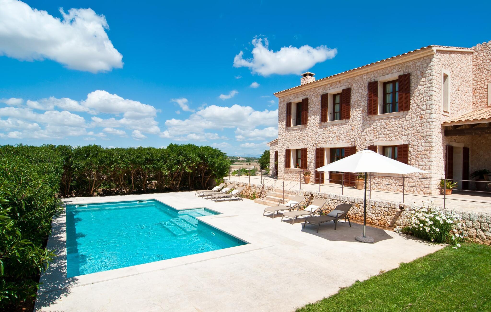 Selv på avstand kan du se hvilket fortryllende feriehus Villa Son Perot er. Det toetasjes huset med en fantastisk vakker fasade i naturstein og vinduer og skodder i tre ligger på en 15 000 m² stor tomt med gode transportforbindelser mellom Manacor og Vilafranca, og det ligger også på landsbygda i Bonany. Eiendommen tilbyr også alt du trenger for en fullstendig tilfredsstillende ferie. En del av den vakkert anlagte eiendommen er preget av terrasser og plener samt ulike dekorative middelhavsplanter i blomsterbed og kar. På varme dager kan du kjøle deg ned i det 9 meter lange bassenget foran huset. Bassenget er lett tilgjengelig via en bred trapp og er omkranset av en innbydende solterrasse. Seks komfortable solsenger er tilgjengelig for utstrakt avslapning. Her kan du ligge og drømme under den dypblå middelhavshimmelen og legge hverdagen langt bak deg. En parasoll er tilgjengelig for ekstra beskyttelse mot UV-stråler. Terrassen rett foran huset, som kan nås via noen få trappetrinn, gir også mulighet til å slappe av i den luftige skyggen og nyte de fantastiske omgivelsene derfra. Du kan sitte ved det store spisebordet i en herlig atmosfære, ta med deg måltidene ut og la blikket vandre i det fjerne. Utekjøkkenet og grillen gir gode muligheter til å tilberede måltider utendørs, og gir deg muligheten til å lage regionale delikatesser med råvarer fra markedet.