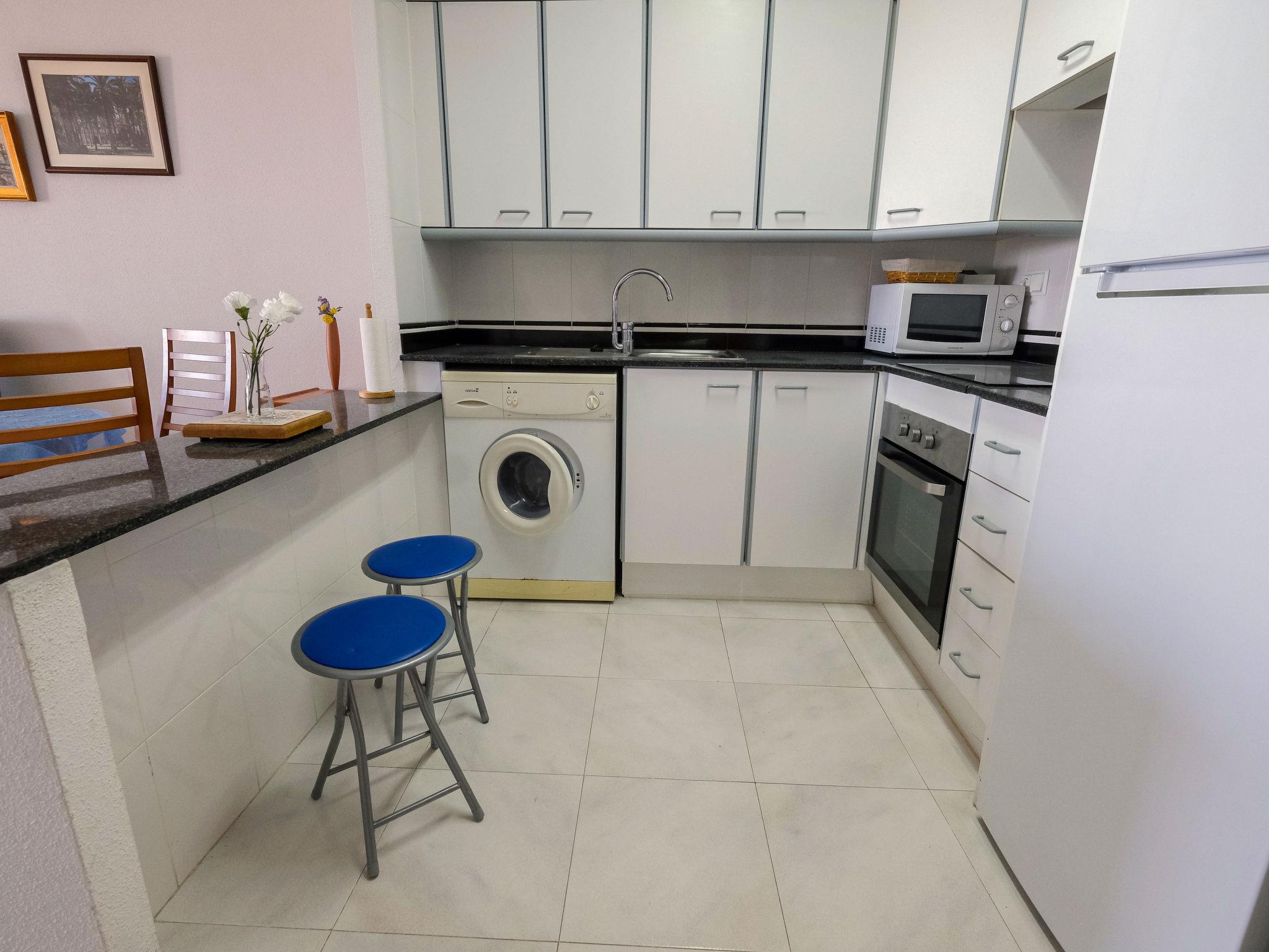 Orde de Malta: Apartment block "Ordre de Malta". In the resort Sant Carles de la Rapita, 180 m from the sea, 180 m from the beach. For shared use: garden, swimming pool (8 x 4 m, depth 80 - 190 cm, seasonal availability: 01.May. - 30.Oct. pool opening hours: 10:00-21:00). Outdoor shower, pool maintenance by the owner/gardener. In the house: lift. Communal covered parking space n 30. Shop 400 m, supermarket 1 km, shopping centre 800 m, restaurant, bar 100 m, pedestrian zone 10 m, 10 minute walk to the centre, bus stop "Hife" 400 m, railway station "l'Aldea" 20 km, sandy beach "Faro" 250 m. Sports harbour 1 km, sailing school 1 km, sports centre 1 km. Nearby attractions: Parque Natural del Delta de l'Ebre 20 km, Peñiscola 40 km, Vinaroz 20 km, Port Aventura Salou 80 km. Hiking paths: La Foradada Sant Carlos de la Rapita 6 km. Please note: car recommended. Groups of teenagers on request only.