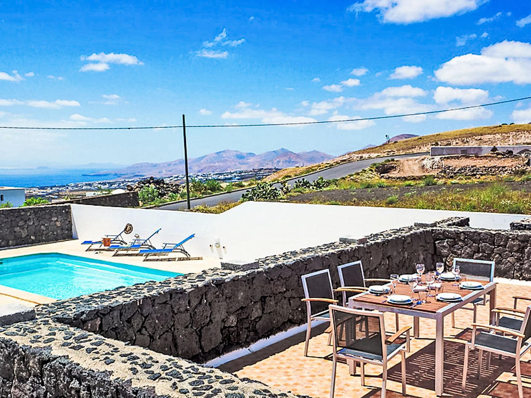 House "Pelzer", built in 2005. In the resort Tias (15minutos), on the outskirts Arrecife capital, in a quiet position, 8 km from the sea, 8 km from the beach. Private: property 1'078 m2, wildlife garden, beautiful garden to relax, swimming pool angular (10 x 4 m, depth 105 - 206 cm, seasonal availability: 01.Jan. - 31.Dec.). Outdoor shower, terrace, parking on the premises. Shop 4 km, grocery, restaurant 500 m, bus stop "Tegoyo Vuelta" 1.1 km, sandy beach 8 km. Golf course (18 hole) 7 km, tennis 8 km. Nearby attractions: Parque temático 9 km. Please note: car recommended.