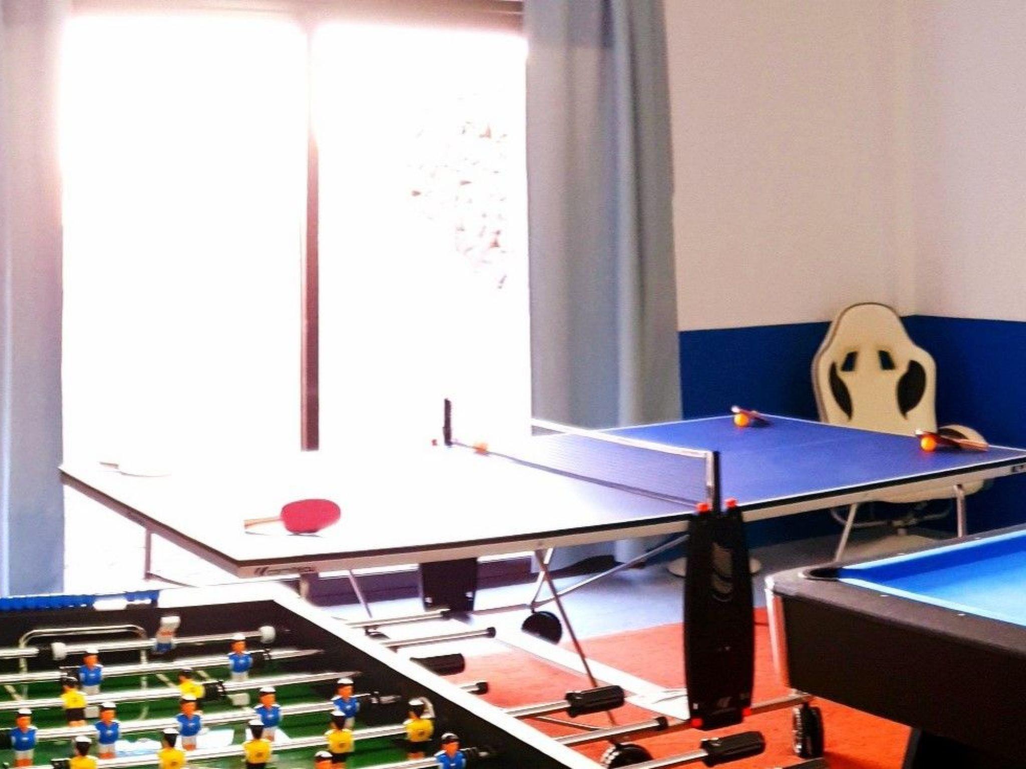 Outside, there is a garden for exclusive use, which is fully fenced - ideal for guests with medium-sized dogs. A terrace, a balcony and a roof terrace invite you to linger outdoors. The outdoor hot tub in the conservatory, the 18 m2 private swimming pool, the 40 m2 gaming room with pool table, table football, table tennis, darts and much more, as well as a playground in the garden offer further opportunities for relaxation and entertainment. The entire outdoor area is designed to make your stay as pleasant as possible.