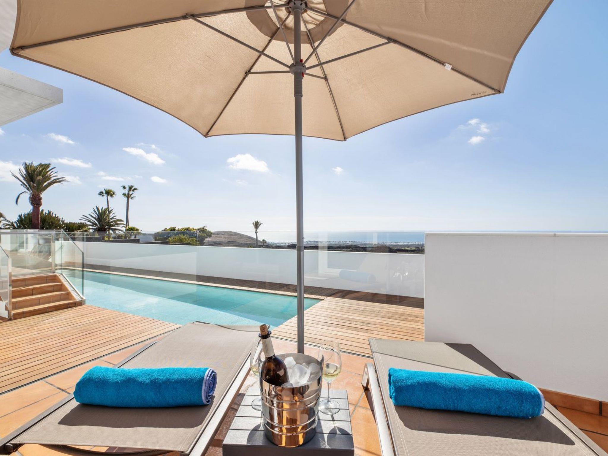 Immerse yourself in the modern charm and serenity of our holiday villa in Lanzarote, an architectural gem offering spectacular views of the sea, mountains and golf course from every room. With a privileged location in one of the best residential areas of the island, this villa guarantees sunlight all day long, protection from the wind and the privacy you crave on your holiday. Prepare yourself for an unforgettable stay where luxury merges with comfort and the natural landscape becomes the backdrop for your relaxing days.