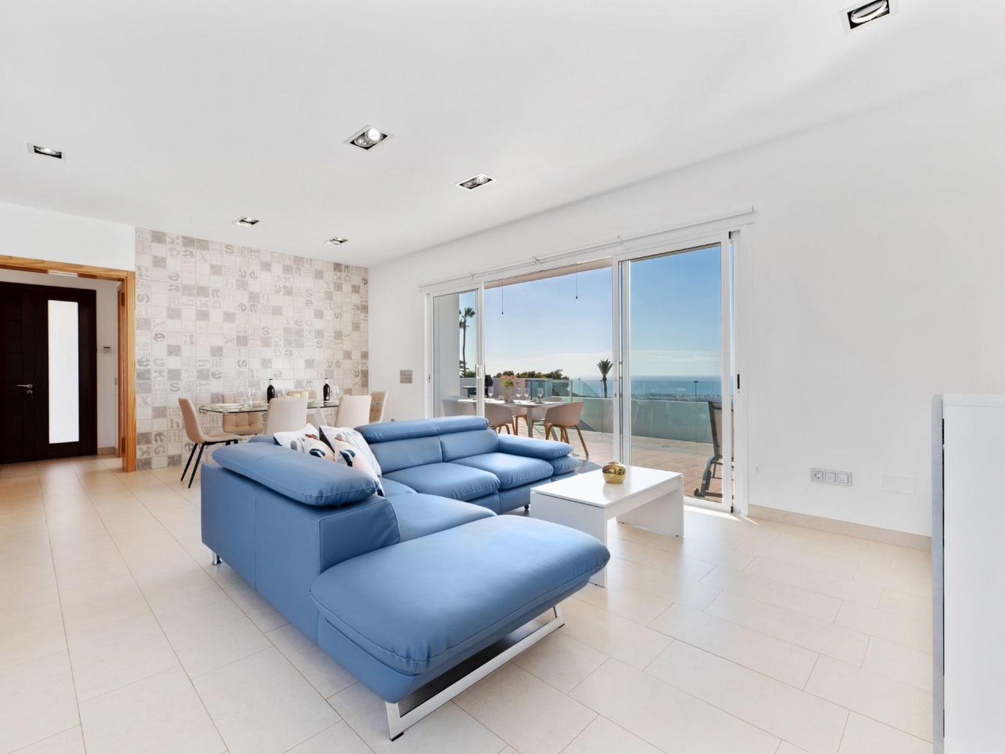 The villa's interior spares no expense in amenities, including an open plan design combining living, kitchen and dining areas, all benefiting from air conditioning to ensure your comfort at any time of the year. With 3 bedrooms suitable for up to 6 people - one with a double bed and two with twin beds that can be joined together to form double beds - every guest will find their ideal space. Modern technology enhances the home from home experience, offering a TV with satellite access, Netflix, Prime Video and a high-speed wifi connection. In addition, the house has a reverse osmosis system for drinking water, washer-dryer and a fully equipped kitchen.