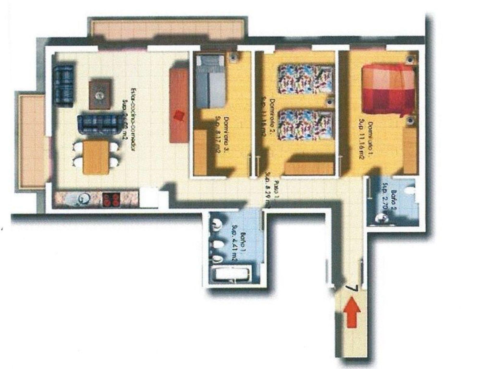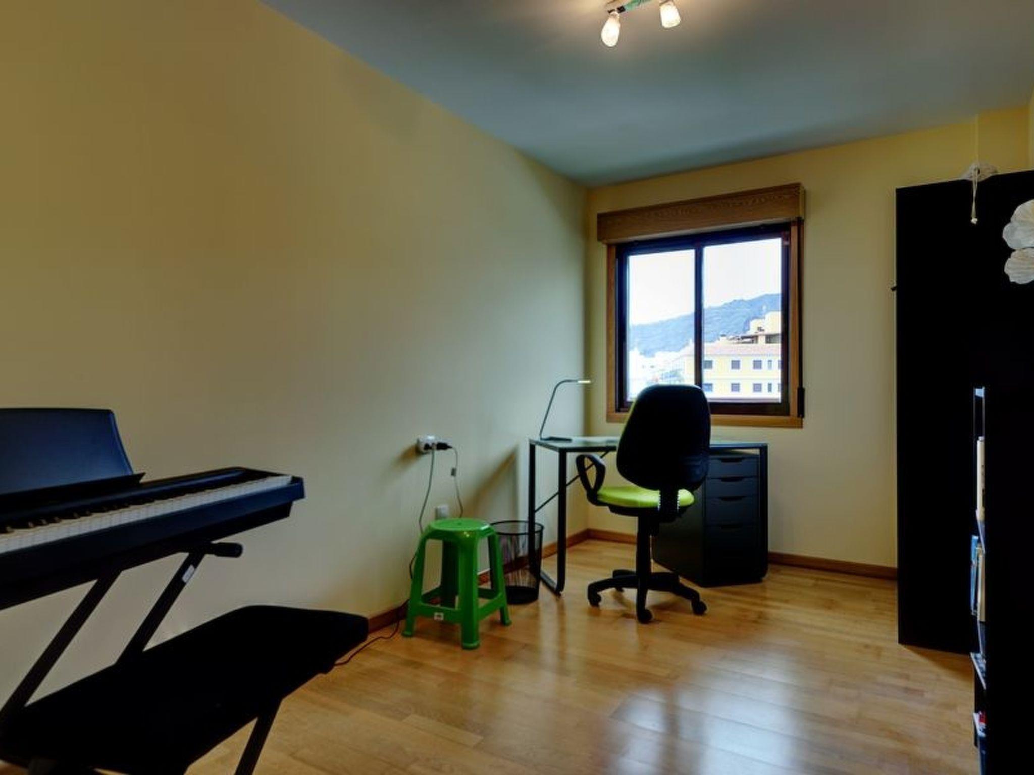 The flat Belair has a living area of 79 m² and is located 5 minutes' walk from the centre (Plaza) Tazacorte distance. There you will find all shops such as supermarket, pharmacy, post office, and several restaurants and tapas bars. Directly opposite the building is Tazacorte's public swimming pool. There is a good bus connection to Puerto de Tazacorte (beach) and the rest of the island. The beach is about 2.4 km away.Belair has two bedrooms, one with twin beds and a private bathroom, the other with a double bed. The 2nd bathroom has a bathtub, toilet and sink. In addition, there is a room that can be used as an office or music room with digital piano, which can be used.The living room of Belair is quiet and modern with an open kitchen with a ceramic hob with 3 hobs and a washing machine.Of course, there is a communal swimming pool at Belair.From the two balconies you have a beautiful view of Atlantic Ocean. In the basement is a secure garage with lift to the flat.It is rented only to non-smokers!Belair is also suitable for people with disabilities and there is a lift and everything is on one floor.