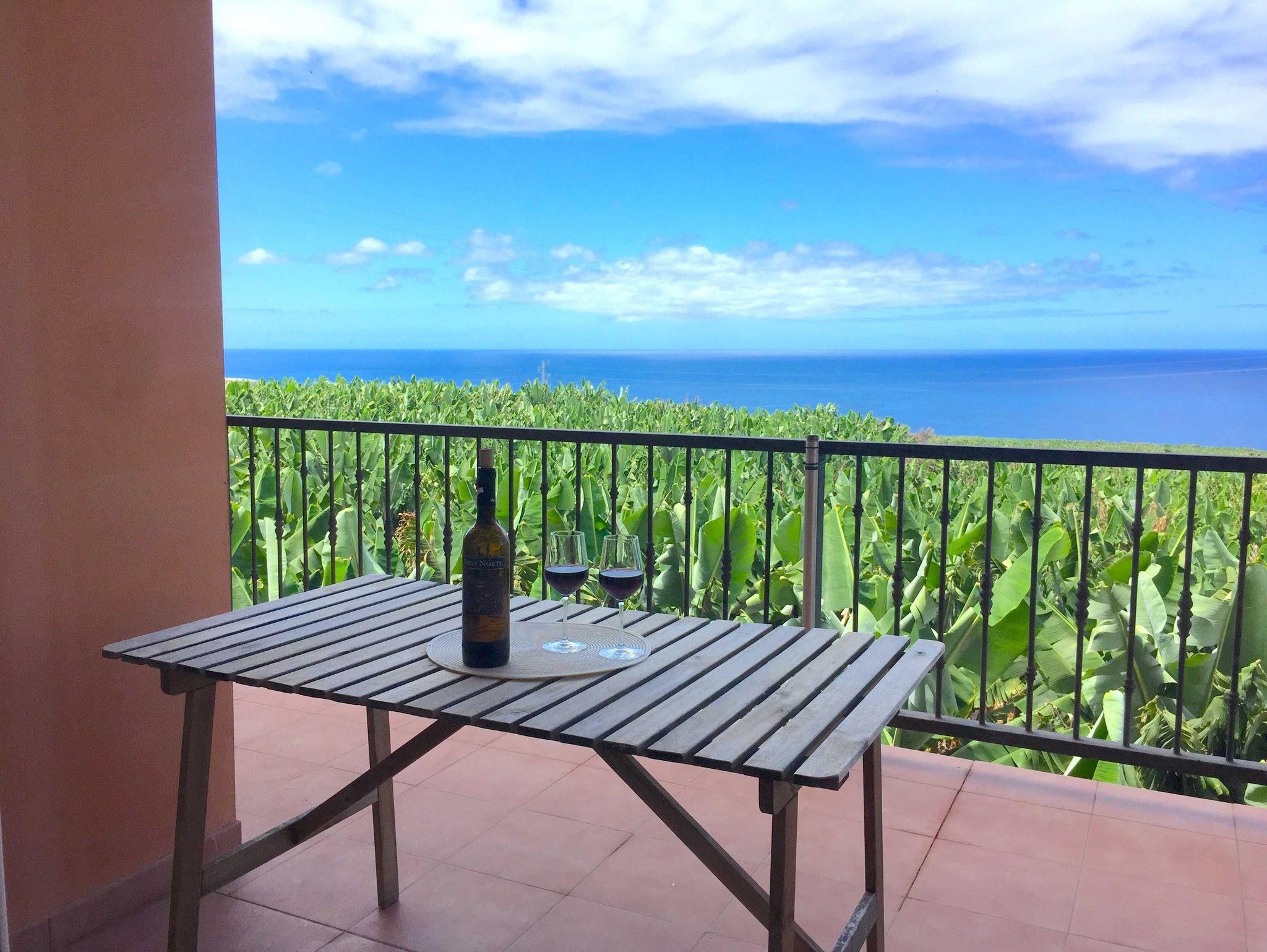 Das Apartment ist nach Westen ausgerichtet und bietet einen wundervollen, unverbauten Blick über Bananenfelder hinweg auf den Atlantik.