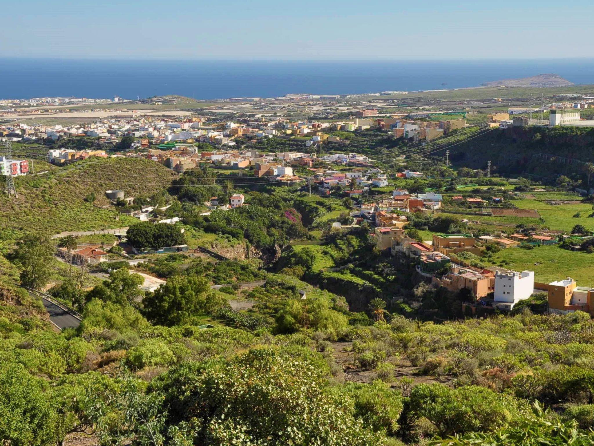 The city centre is 2.5 km away. There you will find the district of San Francisco, which together with the Basilica of San Juan forms its historical heritage. Here you will also find various supermarkets, restaurants, pizzerias, cafes, parks and shopping areas. Not to be forgotten is the archaeological site of Cuatro Puertas, located approximately 5 km away. The beaches of Melenara, Salinetas, La Garita and Playa del Hombre are 7 km away. For sports lovers, the golf course El Cortijo, horse riding and tennis are 6 km away, hiking trails nearby and water sports (surfing, body boarding or windsurfing) on nearby beaches. Shopping centres, fashion shops, hypermarkets, leisure areas and many restaurants are within a radius of 5 and 8 km. The capital Las Palmas is 15 km away (20 min. by car), the beautiful beaches of Maspalomas and Playa del Inglés are 35 km away (25 min. by car) and the airport is 12 km away.