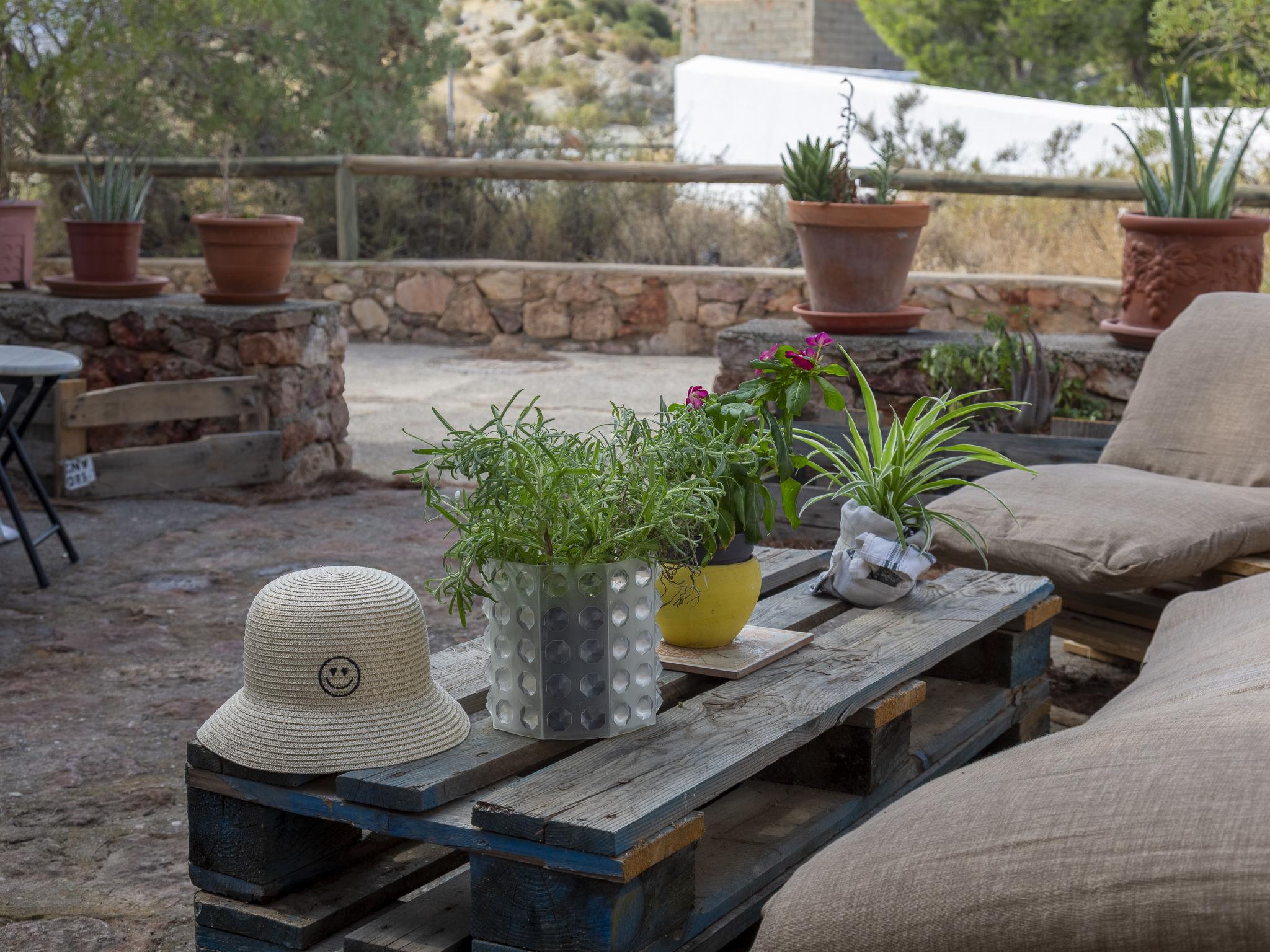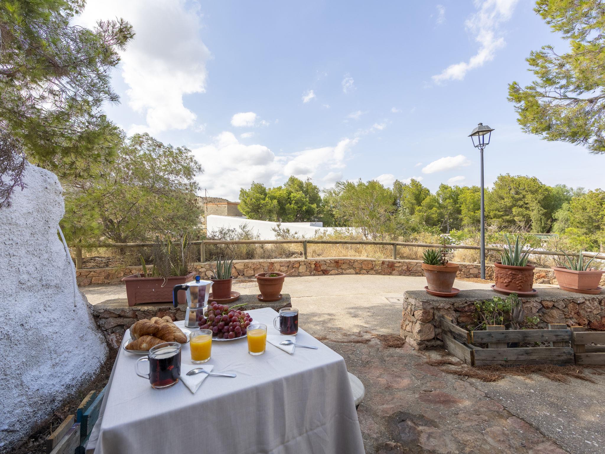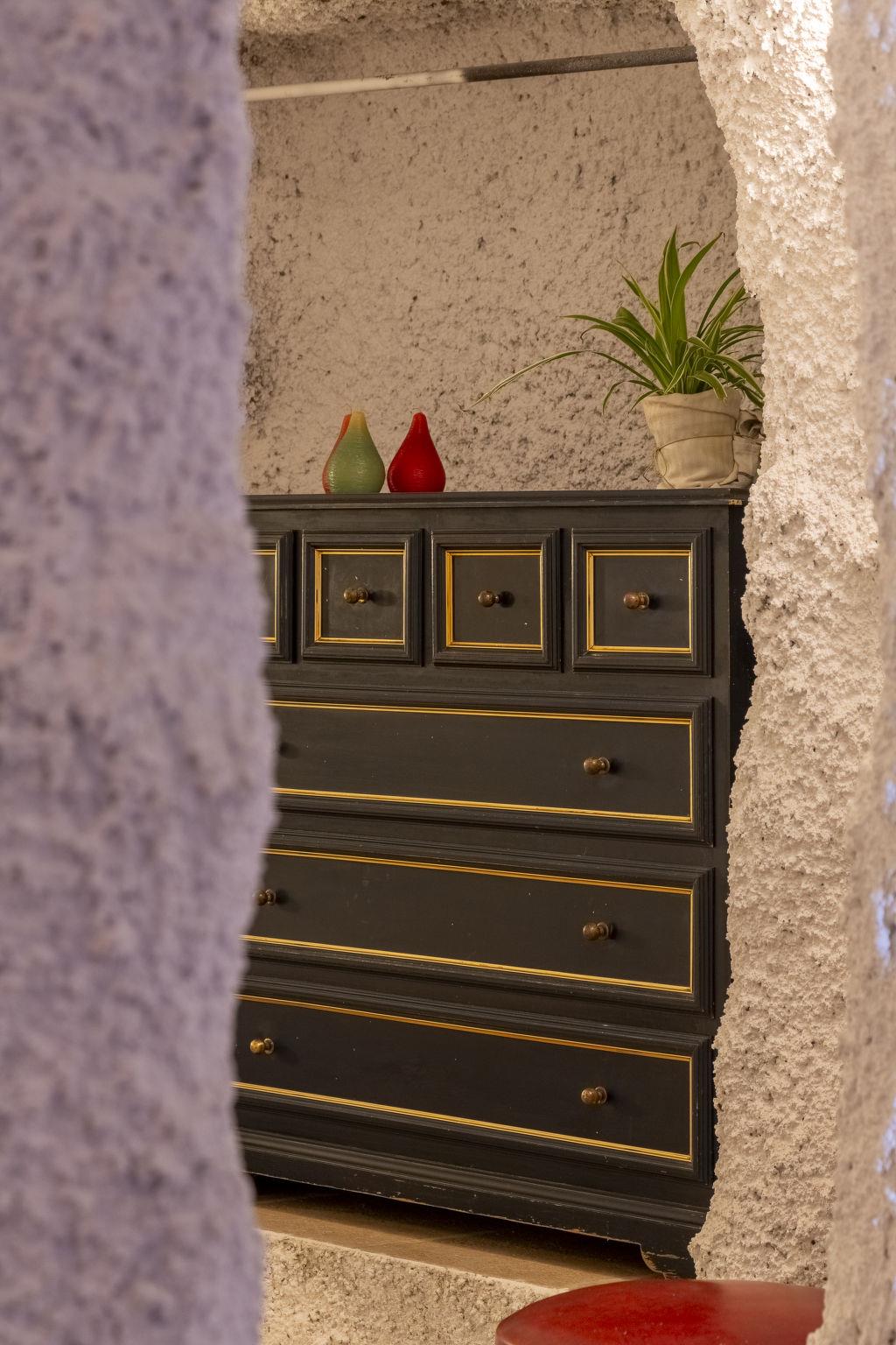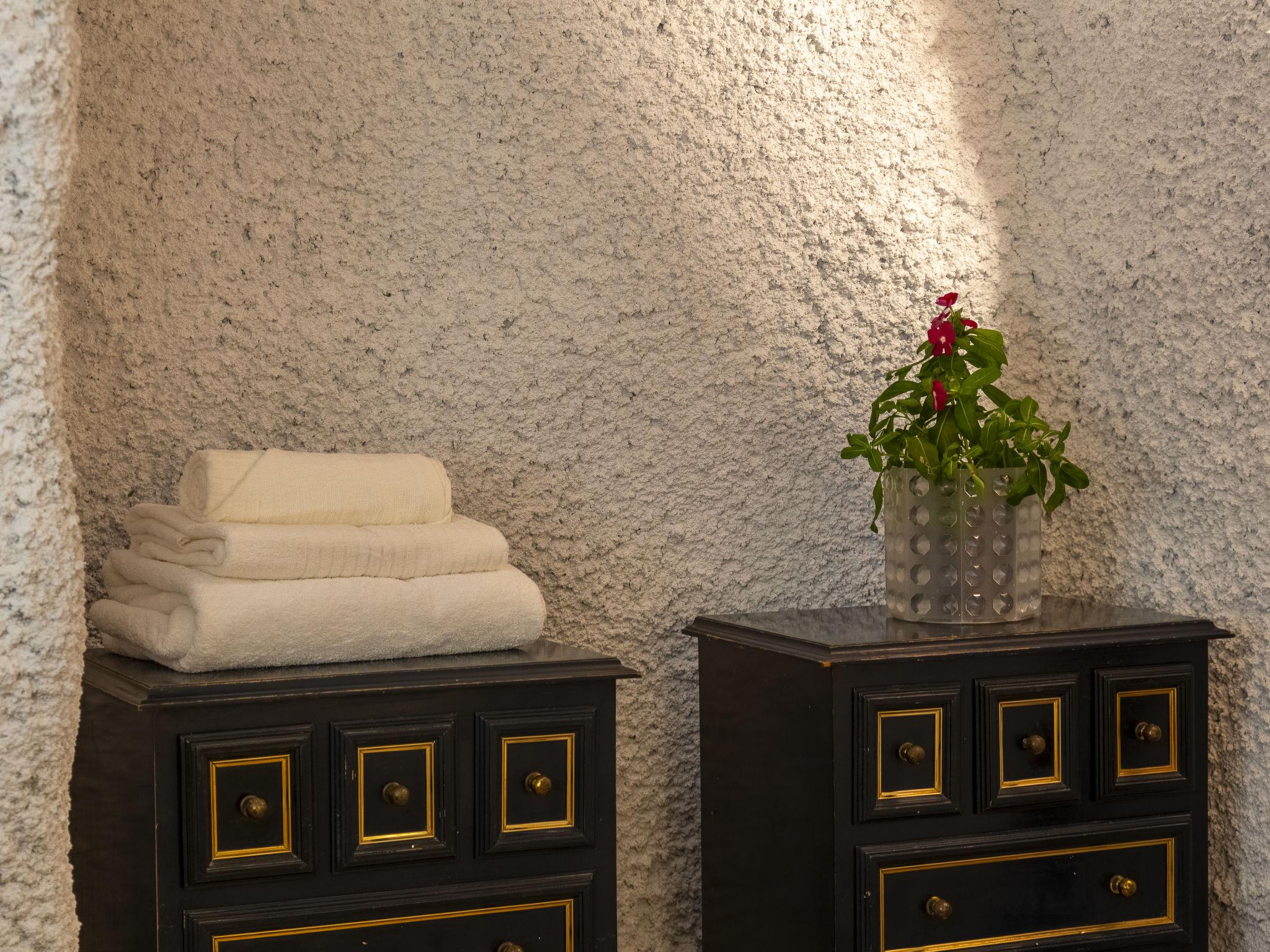 "Cueva Mariana Pineda", 3-room house 70 m2. Living/dining room with dining table, digital TV, flat screen and heating stove. 1 room with 2 beds (90 cm, length 190 cm). 1 room with 1 french bed (150 cm, length 190 cm). Kitchen (4 ceramic glass hob hotplates, toaster, microwave, freezer, electric coffee machine). Shower/bidet/WC. Wood heating. Terrace. Terrace furniture. Facilities: washing machine, iron, children's high chair, baby cot for up to 2 year olds, hair dryer. Internet (WiFi, free). Please note: non-smokers only. VTAR/AL/01159 // Reg. Nr.: ESFCTU000004003000388815000000000000000VTAR/AL/011592