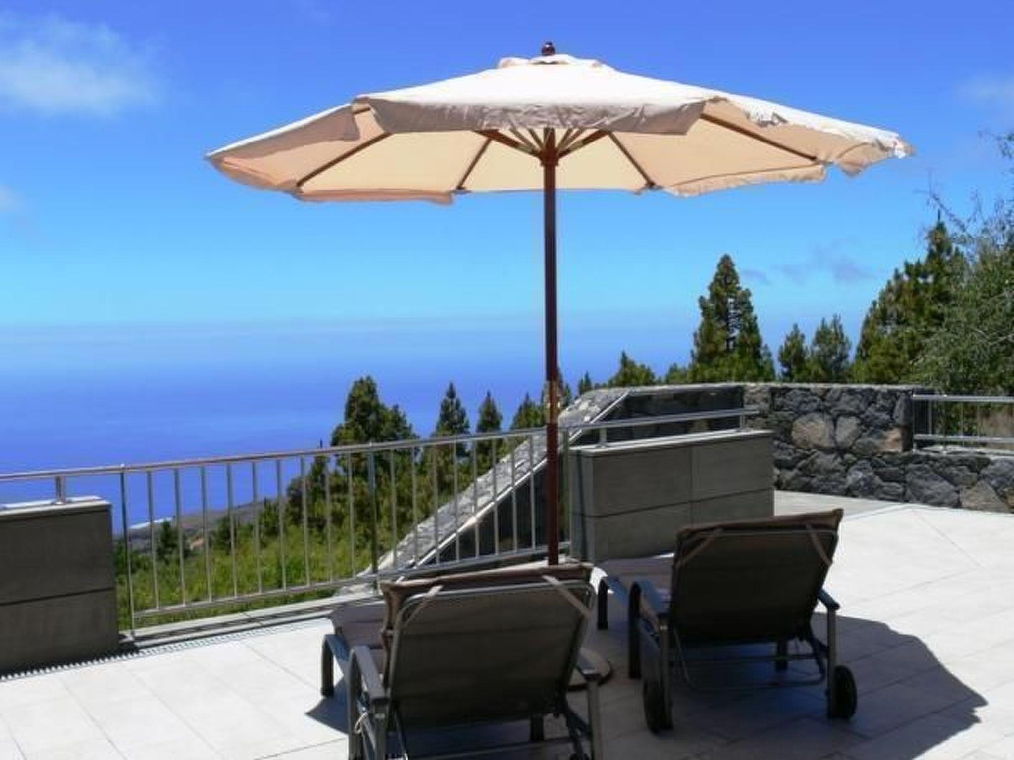 Beautifully situated, new architect's villa in the sunny western part of the Canary Island of La Palma: + architect's villa with comfortable furnishings + typical architectural style of the island with visible interior wooden roof construction, + floor-to-ceiling French doors, + elegant, high-quality tiles for bathrooms, floors and terraces, + quiet, secluded location on a 10,000 square metre plot, + fantastic panoramic view of the sea and the mountains. fantastic panoramic views of the Atlantic Ocean and wooded mountain slopes of the "Caldera de Taburiente" nature reserve, + no view of plastic-covered banana plantations, + a sauna for up to six people is located on the garden level of the house, + heated and coverable pool, 8.4 x 4.2 m, 53 square metres of water surface, + large parts of the property are deliberately left as ecologically valuable wasteland, but around the villa there is a large, always well-kept, subtropical garden area with walking paths, no through traffic, private road to the house, + parking spaces in front of the villa, steep driveway, but accessible by all types of cars We would like to point out that all additional costs for hot and cold water, electricity, heating, bath and bed linen, towels, beach towels, tea towels, Internet-ADSL access with WLAN, use of washing machine and dryer, firewood, community fees are included in the price. The costs for the final cleaning also include the pool cleaning. further equipment: 2 - 8 persons, * spacious living and integrated dining area with rotating designer fireplace, with satellite TV and large flat screen, with DVD player, with book, music and DVD library, with telephone and Internet ADSL access and WLAN / WIFI * well-equipped kitchen with energy-saving induction cooker, with two separate refrigerators and freezers, can be switched off individually to save energy, additional refrigerator in the basement can be used. * 4 bedrooms with 200x200 cm double beds, best German quality with slatted frames and 1A mattresses, * 3 bathrooms each with rain shower, double washbasin, WC and bidet * guest WC, balcony, * hot water production and heating energy from ecological thermosolar and air heat pump devices