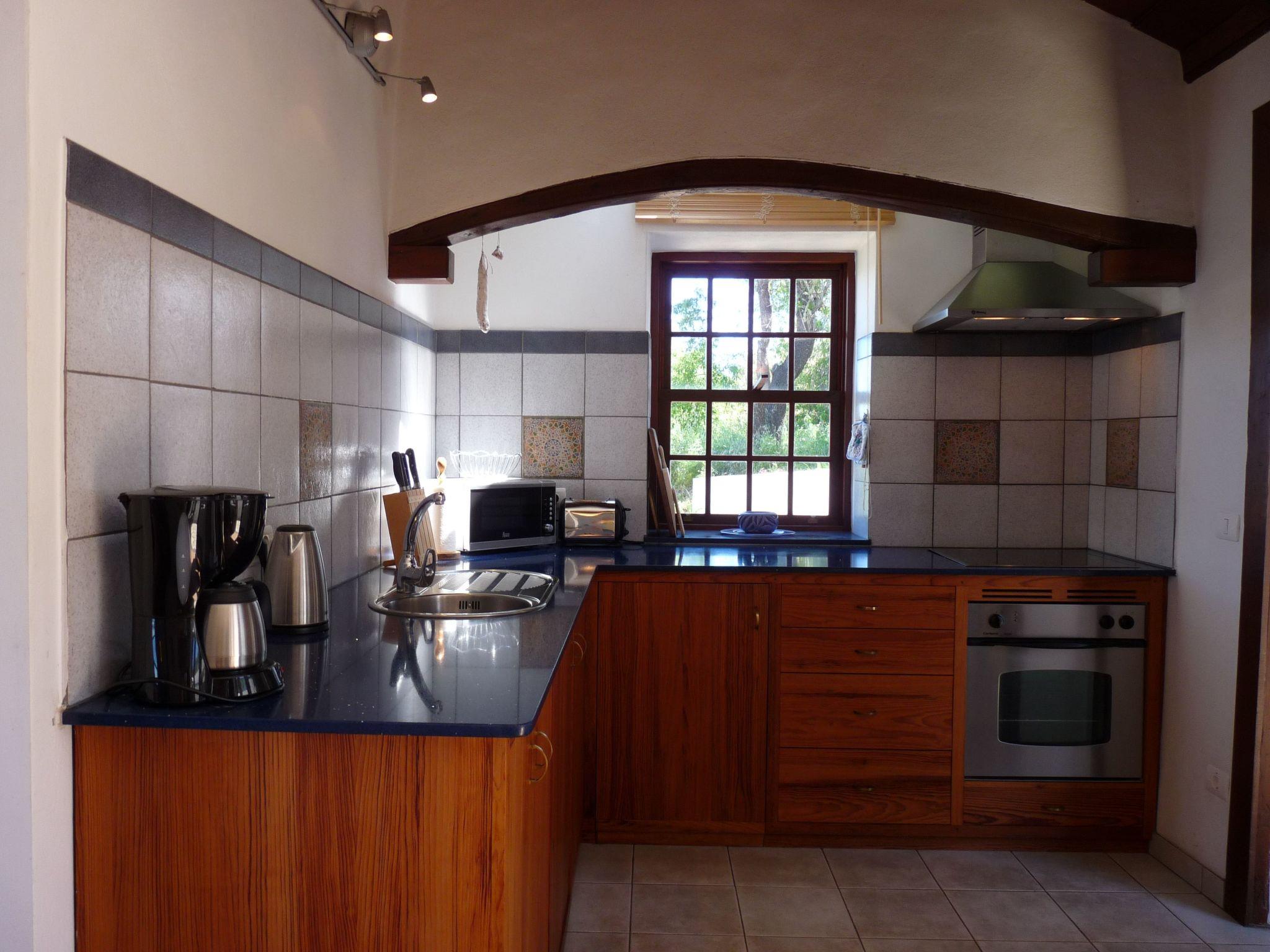 Lovingly furnished, you can expect a sophisticated living ambience on more than 90 square metres of living space. A spacious living area with a beautiful dining area and the typical open Canarian roof construction give the house a special charm. The finca is equipped with Internet, German SAT TV, Internet with Wlan and radio. A home cinema stereo system with five DVD/CD/MP3 players is available for listening to music. The kitchen with its traditional curved wooden beams and beautiful worktop will tempt you to cook. Equipped with a three-burner ceramic hob and electric convection oven, you can cook or bake anything your heart desires. A fridge, microwave, toaster, coffee machine, kettle and blender are provided, as well as pots, cutlery and crockery for up to 8 people. Two bedrooms, one with a double bed and one with two single beds, allow up to 4 people to enjoy a comfortable holiday. In addition, one of the bedrooms is equipped with a small sitting area so that you can relax and read. There is also a small CD player. The beds measure 2.00 m x 1.50 m (double bed) and 2.00 m x 0.90 m (single beds). The spacious bathroom, furnished with exquisite tiles, is a real wellness oasis. Furnished with a bathtub and separate shower, it offers you real pleasure. A washing machine and tumble dryer are also available here. The house is equipped with gas central heating. The domestic hot water is heated by a solar system. There is also a wood-burning stove in the living area, which provides cosy warmth. Two beautiful terraces and an inner courtyard sheltered from the wind invite you to enjoy the sun. Sunshade and garden furniture for 4 persons are also included in the equipment of the house. Arrival from 2 p.m. Departure by 10 a.m. The nearest hikes start directly from the house, for example to the "Roque de los Muchachos", the highest point on the island with its observatories. The surrounding beaches can be reached by car within 20 to 45 minutes. Puntagorda, with its shops, various restaurants, an outdoor pool and a bank, is just 5 minutes away. 300 metres above the house is the sparse pine forest, which can be reached on foot in 10 minutes. Other hiking trails start from there, for example to the archaeological sites of La Zarza.