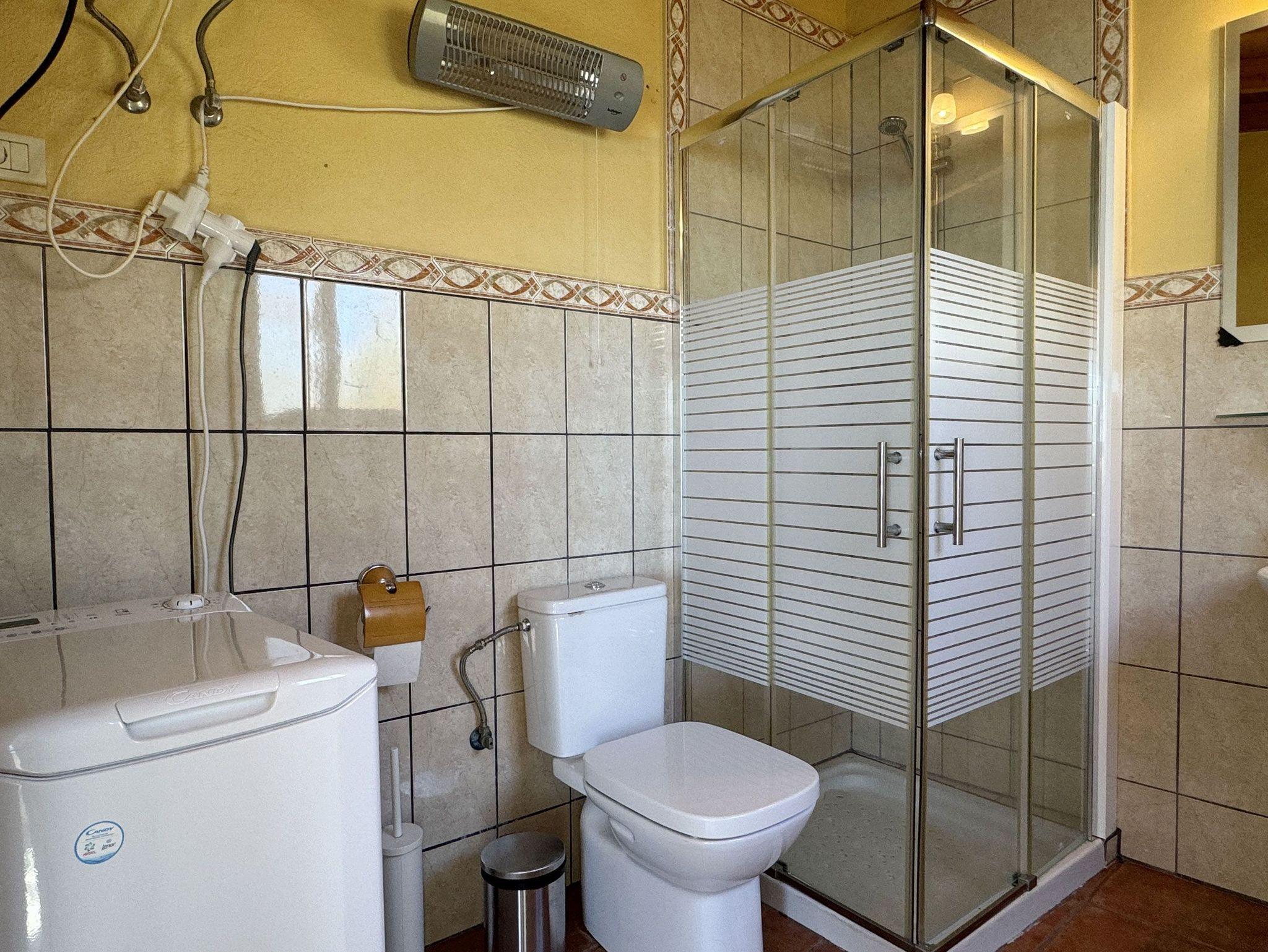 Im Bad finden Sie Dusche, Waschbecken, WC, einen kleinen Abstellschrank und Waschmaschine sowie einen Heizstrahler vor.