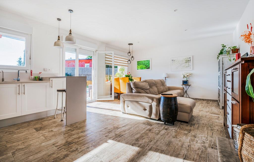 Dette vakre feriehuset i Tordera imponerer med en fantastisk utsikt over det grønne landskapet til havet. Den lyse og komfortable innredningen skaper en familievennlig atmosfære som får deg til å føle deg som hjemme. Start dagen med en kaffe på terrassen eller en dukkert i bassenget. De romslige uteområdene innbyr til soling, lek og felles måltider - ideelt for avslappende timer sammen med dine nærmeste.
