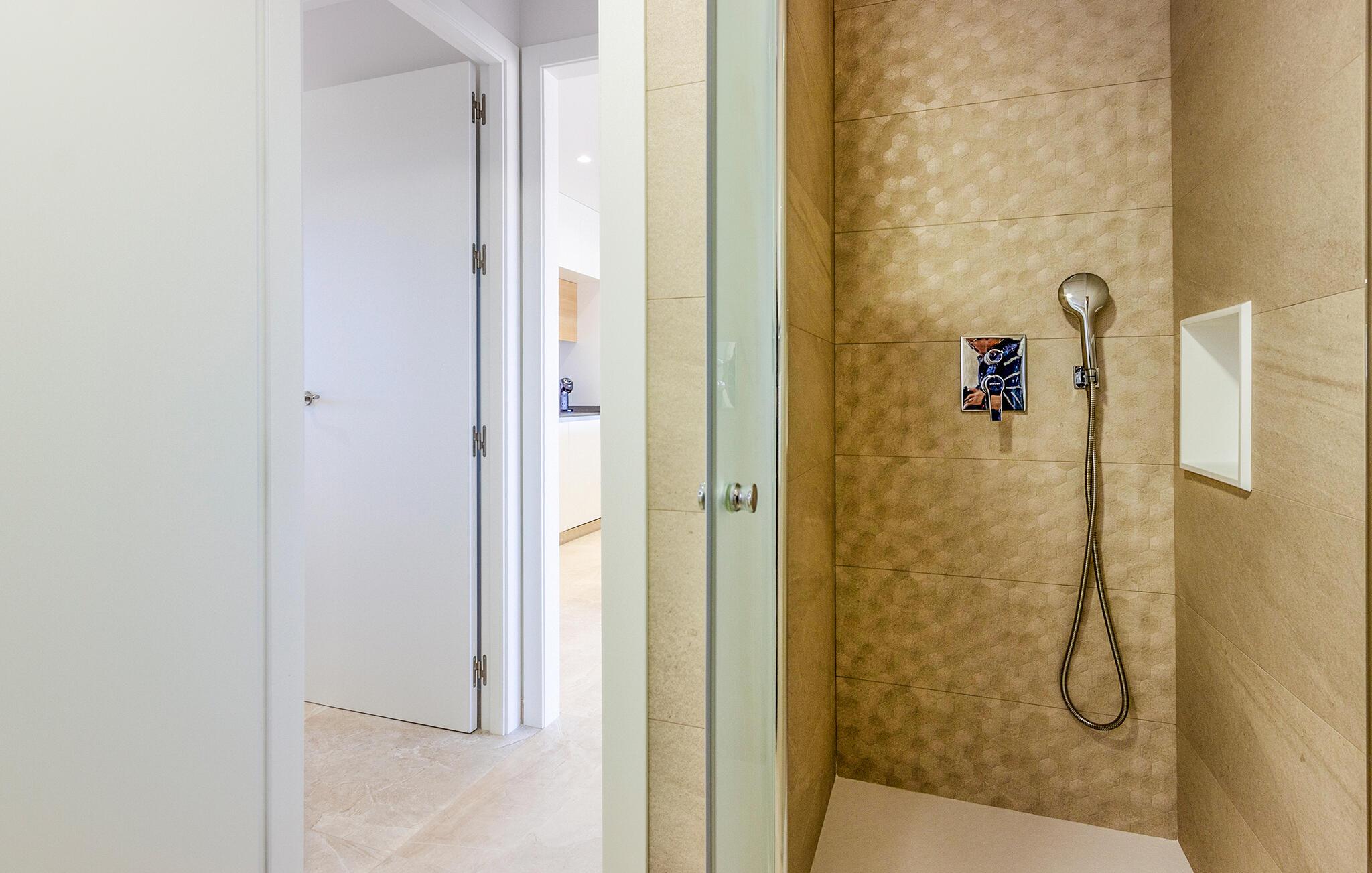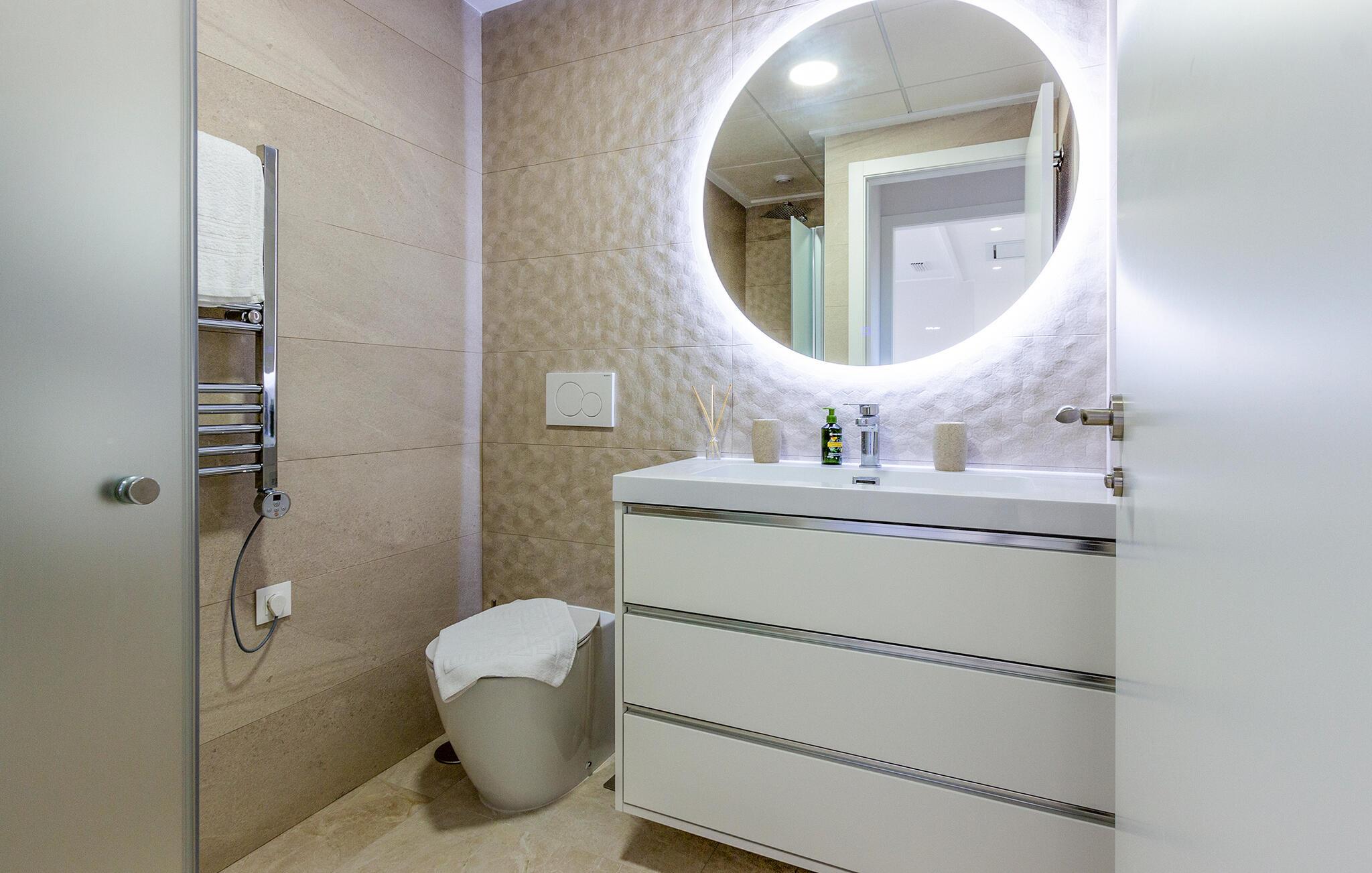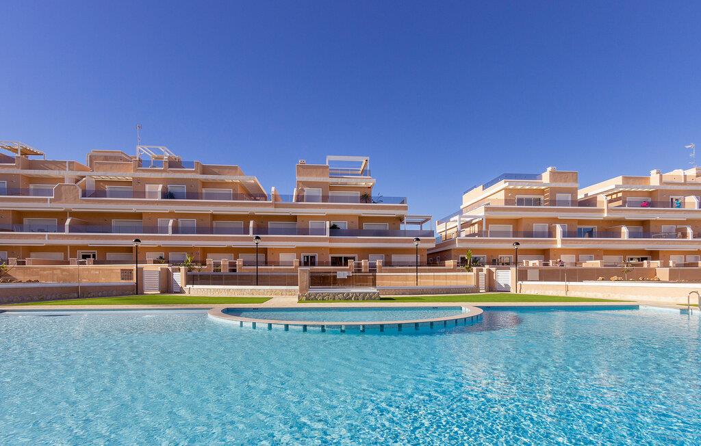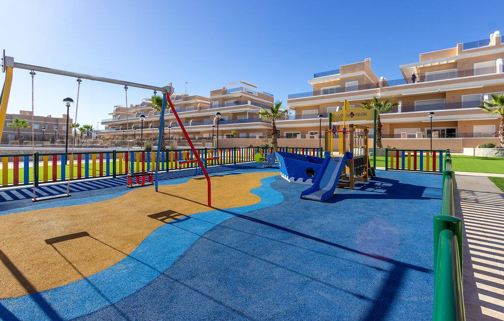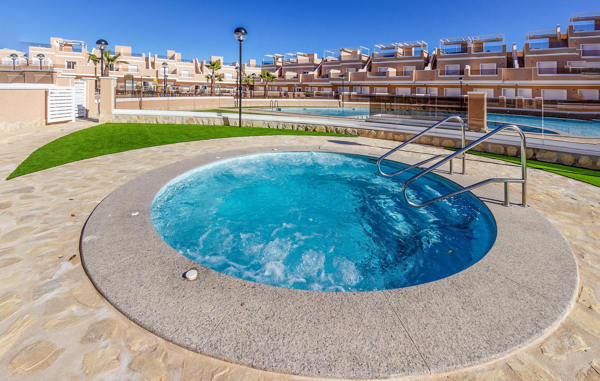 Den lyse og moderne ferieleiligheten med topp innredning innbyr til avslapping. Innvendig danner varme fargedetaljer en harmonisk kontrast til det hvite og skaper en hyggelig atmosfære der du vil føle deg hjemme. Tilbered deilige måltider sammen og nyt dem på balkongen. Hvis du foretrekker korte avstander, kan du tidlig om morgenen forfriske deg i det felles bassenget og ta de første dukkertene. Litt senere kan du raskt komme deg til sandstranden til fots.