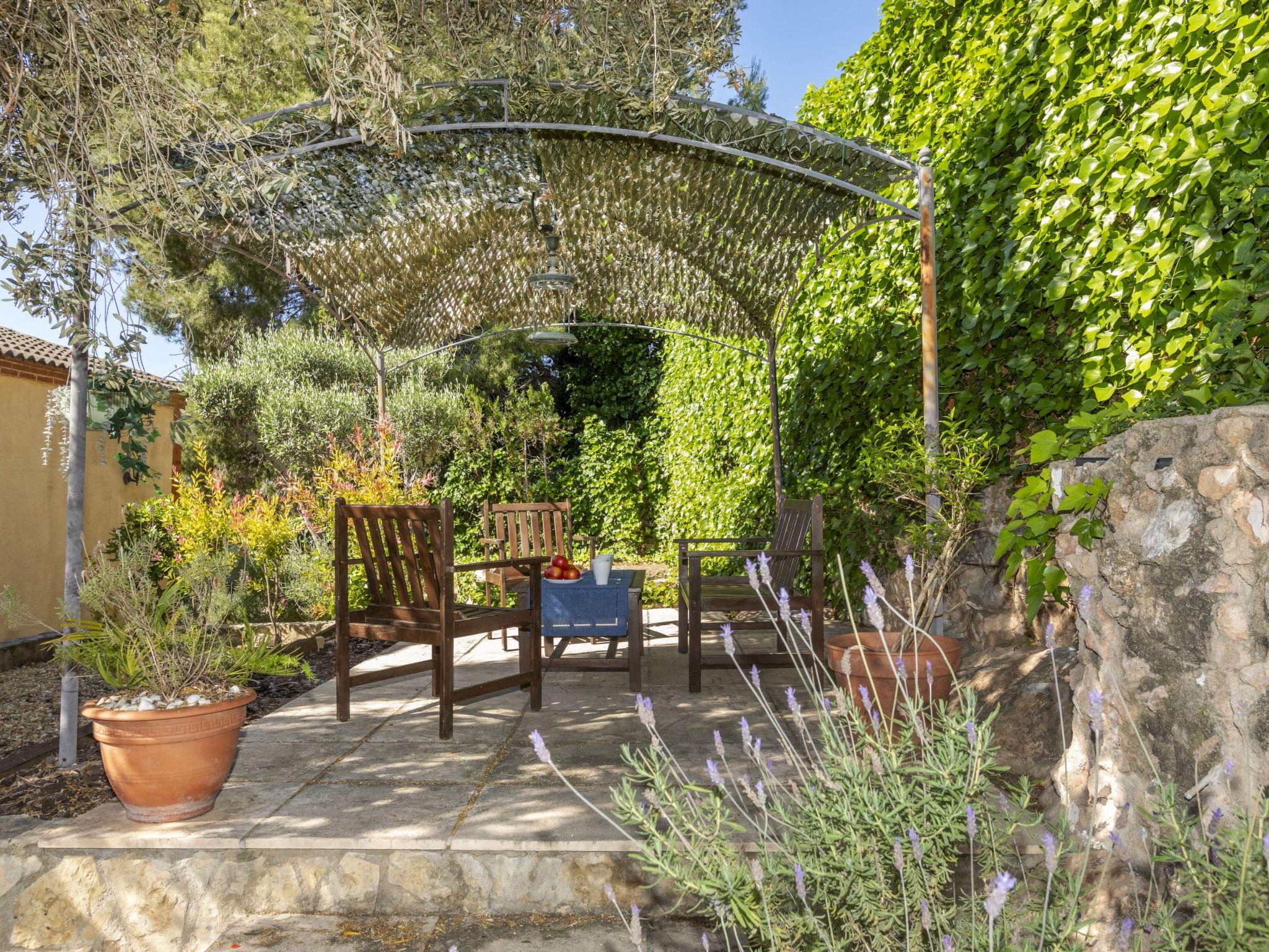 Castell de Montornés 7 km from Torredembarra: Cosy, comfortable single-family house "Rossi", 2 storeys, detached. Outside the resort Castell de Montornés, in a quiet position residential area (villas), 7 km from the sea, 7 km from the beach. Private: terraced garden, swimming pool round (4.5 m diameter, depth 120 cm, seasonal availability: 15.Jun. - 15.Oct.). Pool maintenance by the owner/gardener. Public parking on the road. Bus stop "Perera final - bus urbano" 180 m, railway station "Torredembarra" 8 km. Nearby attractions: Tarragona 23 km, Port Aventura / Ferrari Land 35 km, Aquopolis 35 km, Jungle Trek 12 km. Please note: car recommended. Object suitable for 4 adults + 4 children. The owner does not accept any groups. The owner does not accept any youth groups. Neighbourhood highly sensitive to noise. Quietness and good behaviour expected.