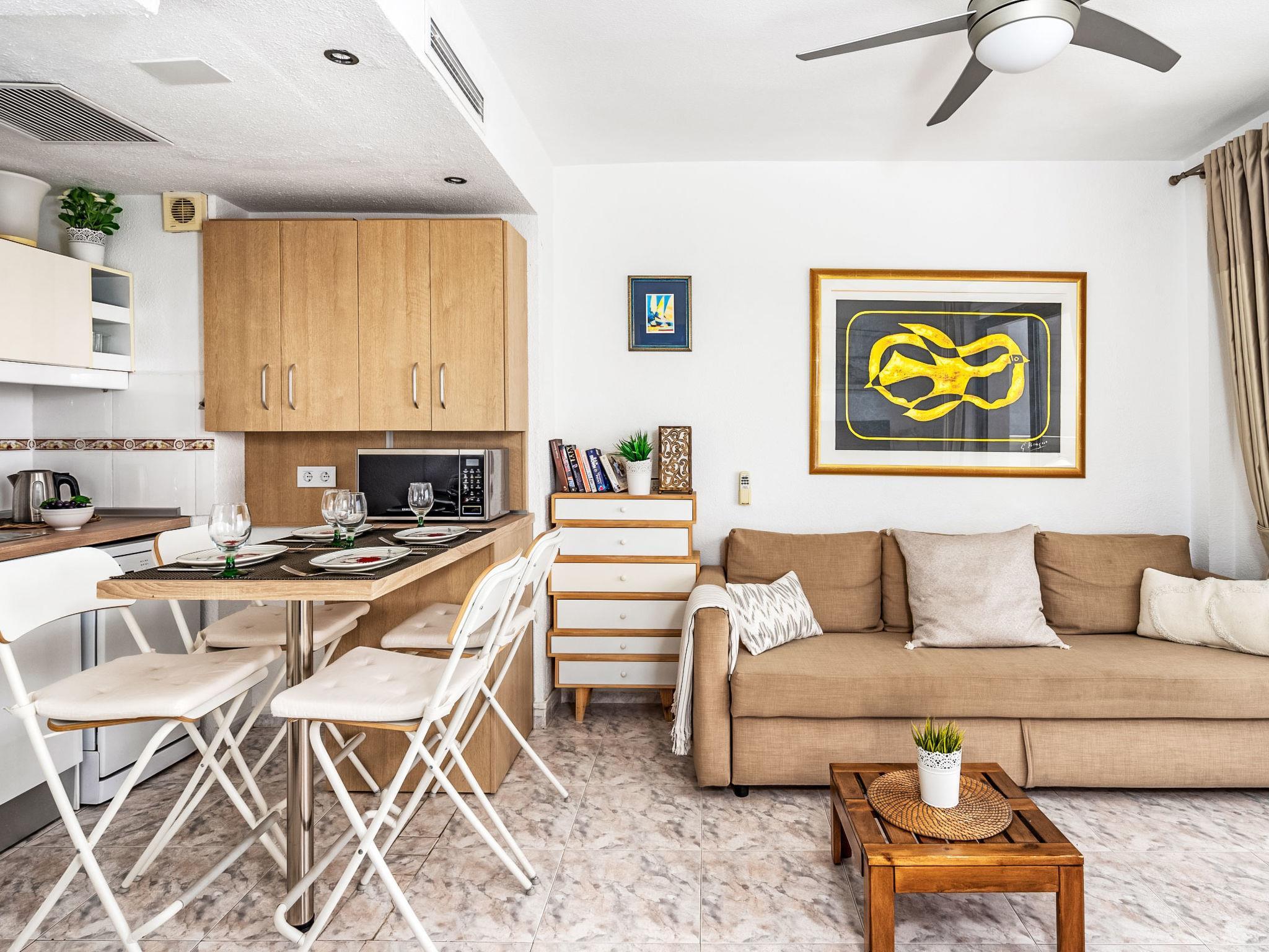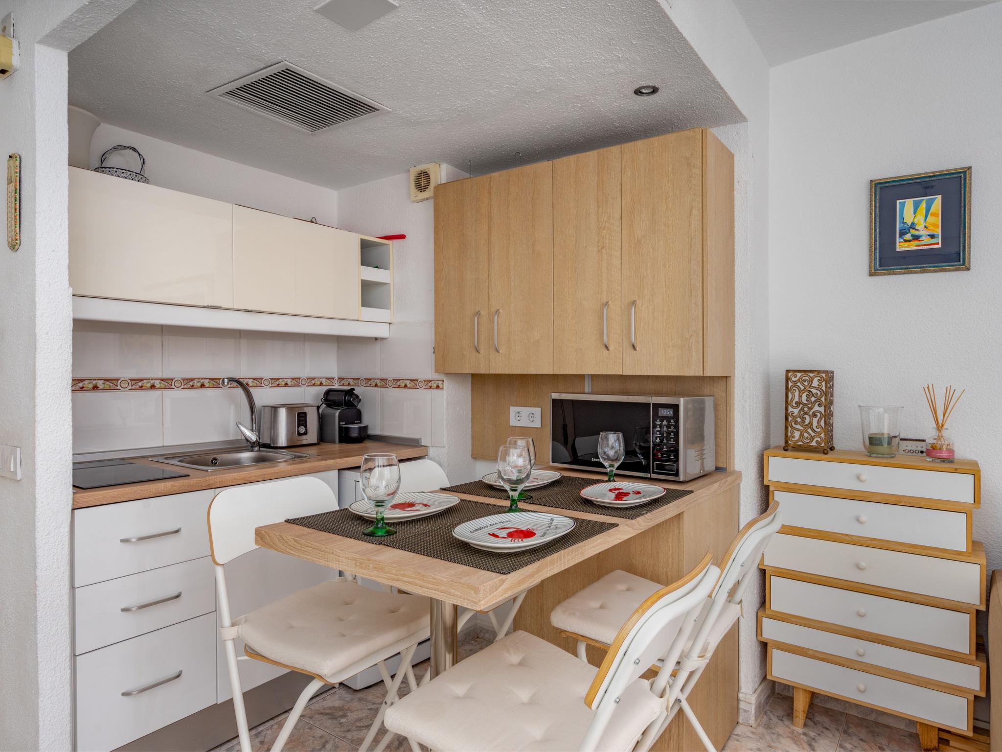 Modern, beautiful holiday development "O.House". In a central, busy, sunny position, 50 m from the sea, 50 m from the beach, direct access to the beach. For shared use: 3 swimming pools angular (seasonal availability: 01.Jan. - 31.Dec.). Children's pool. In the house: restaurant, bar, internet access, WiFi (extra). Shopping facilities, lift. Room cleaning on request (extra). Airport transfer (extra). Shop, supermarket 100 m, bus stop 250 m, ferry 300 m. Sports harbour, marina 300 m. Nearby attractions: Puerto Marina 300 m. Please note: suitable for families, suitable for seniors. Object suitable for 2 adults + 1 child. The owner does not accept any youth groups. Neighbourhood highly sensitive to noise. Quietness and good behaviour expected. Facilities closed from 1/11 until 01/02 (restaurant, bar, swimming pool...).