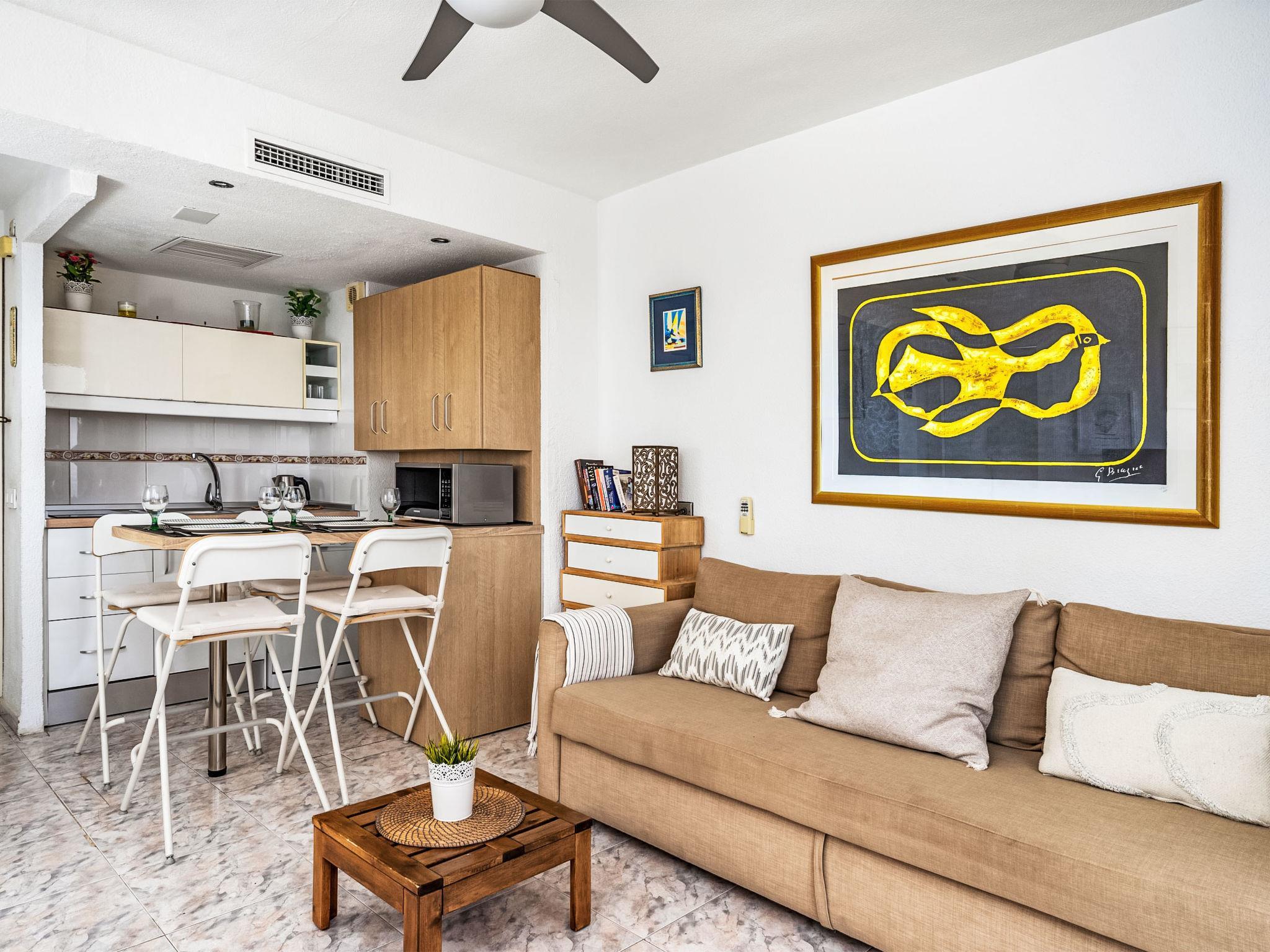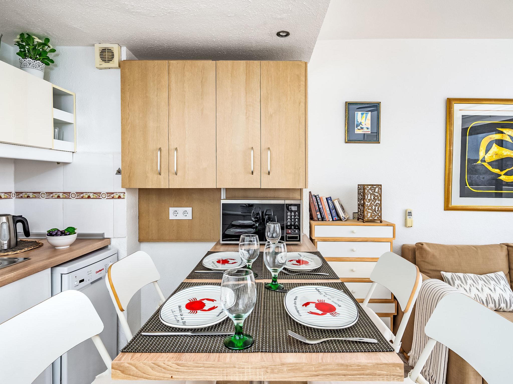 "O.House", 2-room apartment 42 m2 on 6th floor. Object suitable for 2 adults + 1 child. Comfortable and beautiful furnishings: living/dining room with 1 sofabed, TV and digital TV (flat screen), air conditioning. Exit to the balcony. 1 double bedroom with shower/WC, air conditioning and forced-air heating. Kitchen (dishwasher, 2 ceramic glass hob hotplates, microwave, freezer, electric coffee machine). Balcony. Balcony furniture. View of the sea and the swimming pool. Facilities: washing machine. Suitable for families. Sofa bed only for children. VUT/MA/10292 // Reg. Nr.: ESFCTU0000290210000642240000000000000000VUT/MA/102929