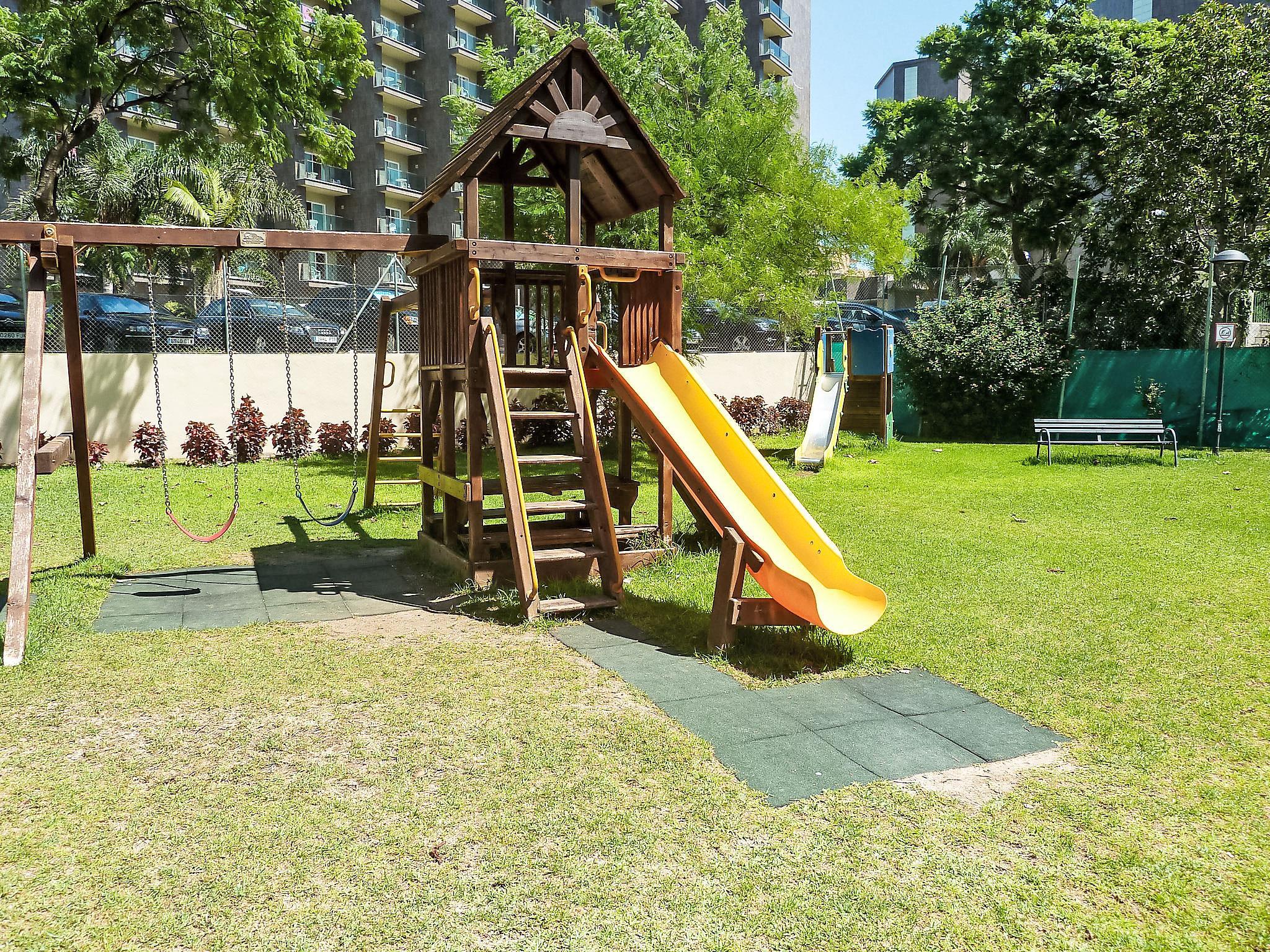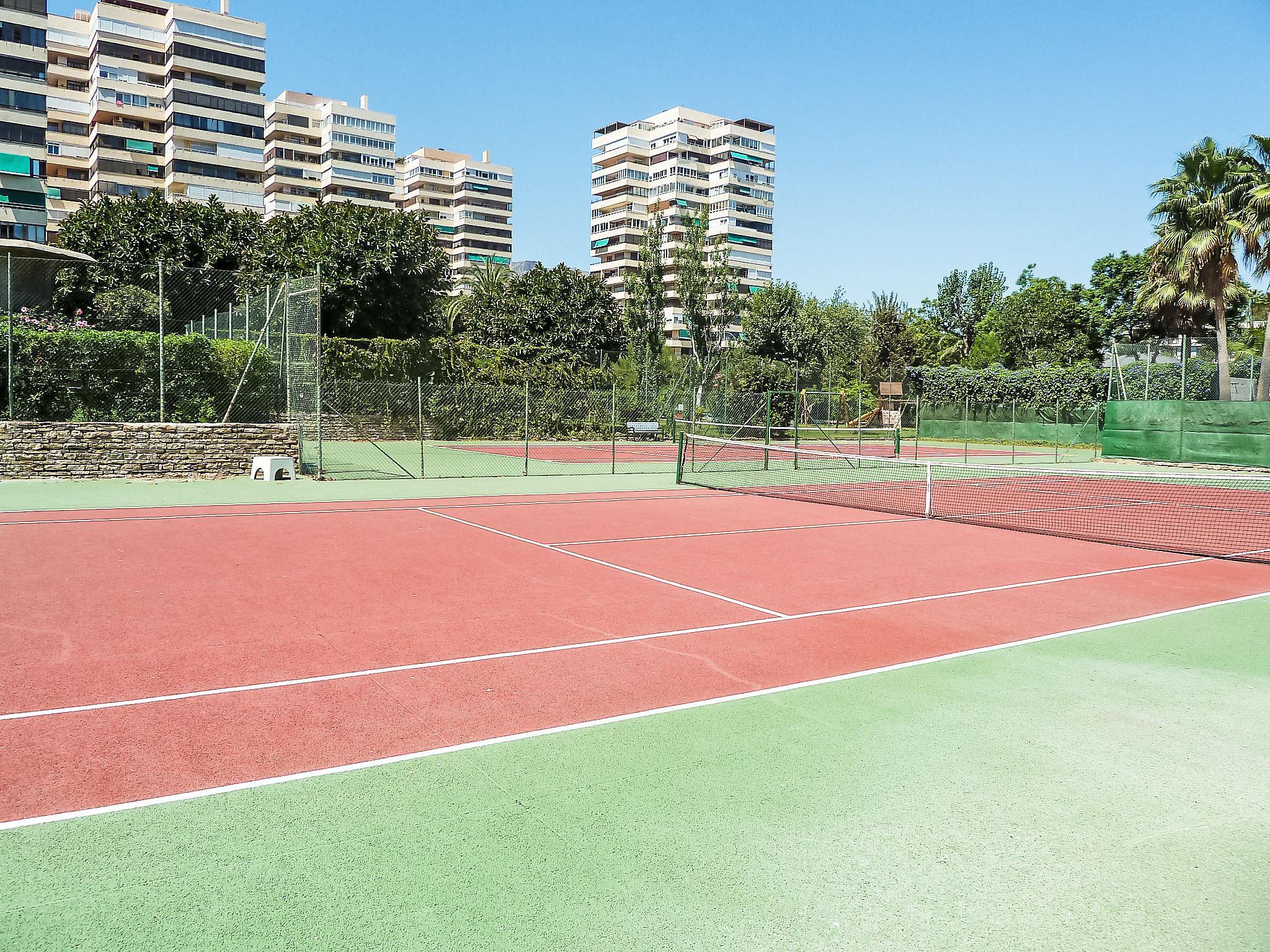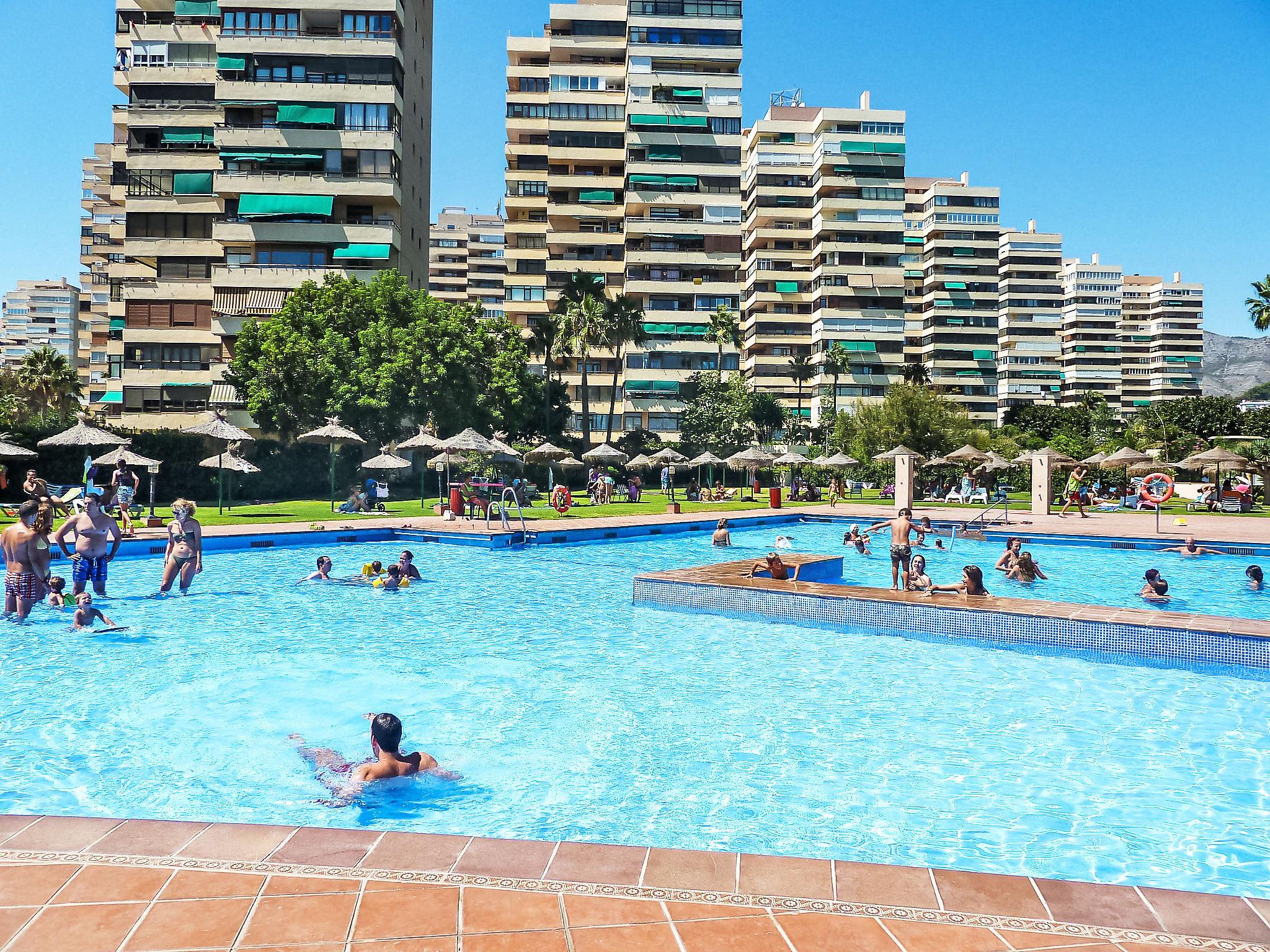 Playamar: Modern, beautiful apartment block "Playamar", 15 storeys in 2025. In a central, busy, sunny position, 300 m from the sea, 300 m from the beach, road to cross. For shared use: garden with lawn, swimming pool angular (seasonal availability: 01.Jun. - 30.Sep.). Shower/WC in the pool area, children's pool, tennis (extra), children's playground (slide, swing). In the house: restaurant, lift. Parking (limited number of spaces). Shop 300 m, supermarket 50 m, restaurant, café 100 m, bus stop 300 m, sandy beach 70 m. Nearby attractions: Malaga 10 km, Centro Comercial Plaza Mayor 4 km, Benalmadena 6 m, Puerto Marina 6 km. The owner does not accept any youth groups. Neighbourhood highly sensitive to noise. Quietness and good behaviour expected. Youth groups not permitted.