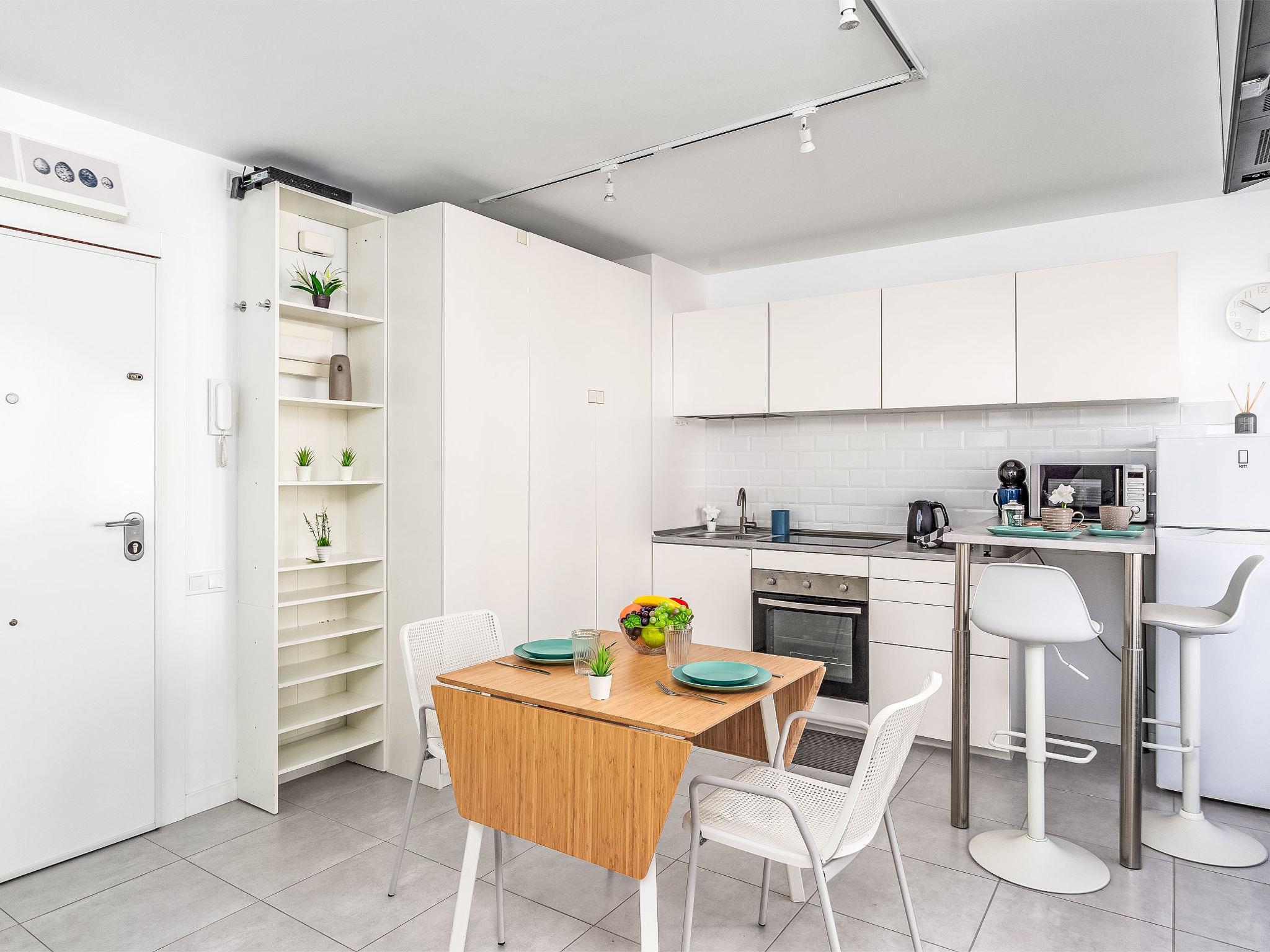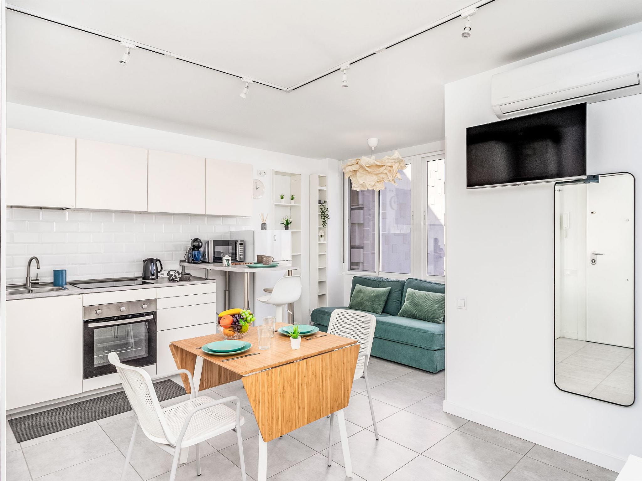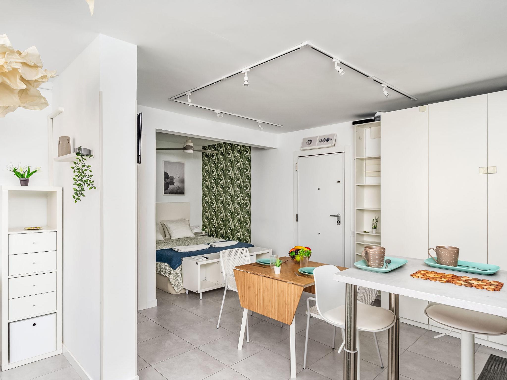 "Congreso", 1-room studio 33 m2 on 5th floor. Object suitable for 2 adults. Bright, renovated, comfortable and modern furnishings: living/dining room with dining table, bar and satellite TV (flat screen), air conditioning and forced-air heating. Open kitchen (oven, 4 induction hot plates, toaster, kettle, microwave, freezer, electric coffee machine). Shower/WC. Panoramic view of the resort. Facilities: washing machine, iron, mosquito net, hair dryer. Internet (WiFi, free). VUT/MA/78289 // Reg. Nr.: ESFCTU0000290450005437490000000000000000VUT/MA/782893