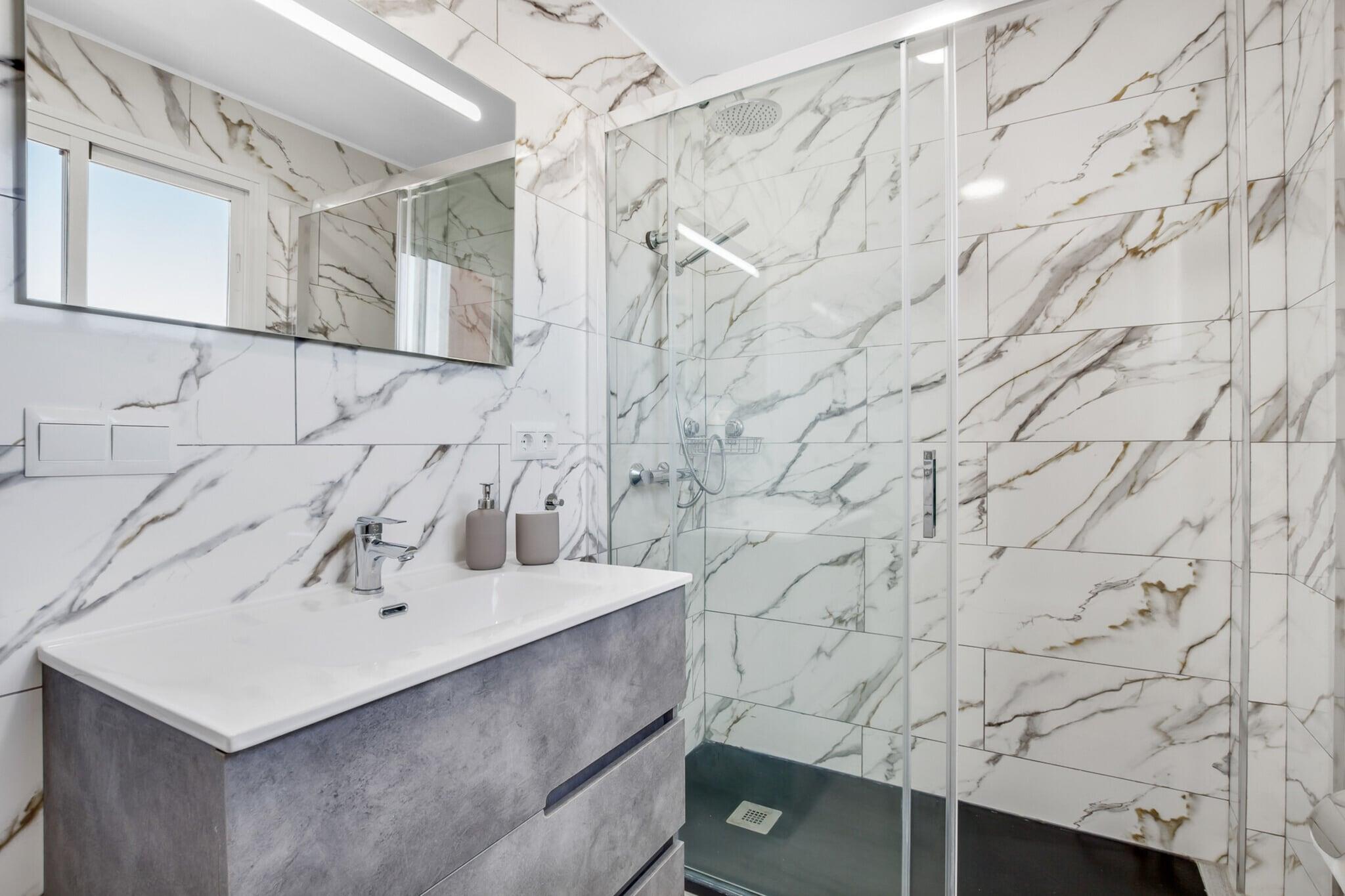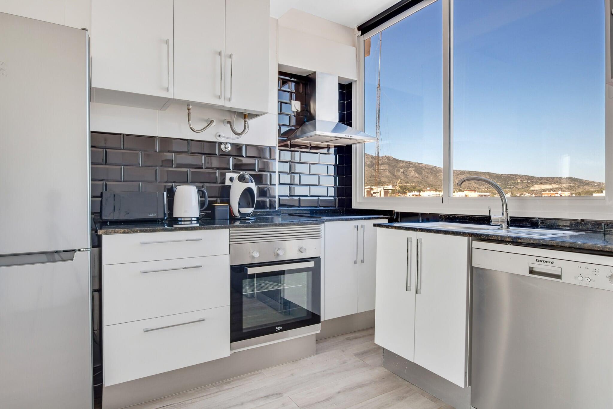 I 7. etasje: (Stue(dobbel sovesofa, TV(Smart-TV), spisebord, sittehjørne), åpent kjøkken(komfyr med kokeplater(keramisk), vannkoker, brødrister, kaffetrakter, stekovn, mikrobølgeovn, oppvaskmaskin, kjøleskap med fryser, , Wine glasses), soveværelse(dobbeltseng), bad(dusj, Hårtørker), Internett-tilgang) , , Internett-tilgang, tørketrommel, vaskemaskin, klimaanlegg, terrasse, hagemøbler, parkering, svømmebasseng(deles med andre gjester), strykejern, luft-luft varmepumpe
