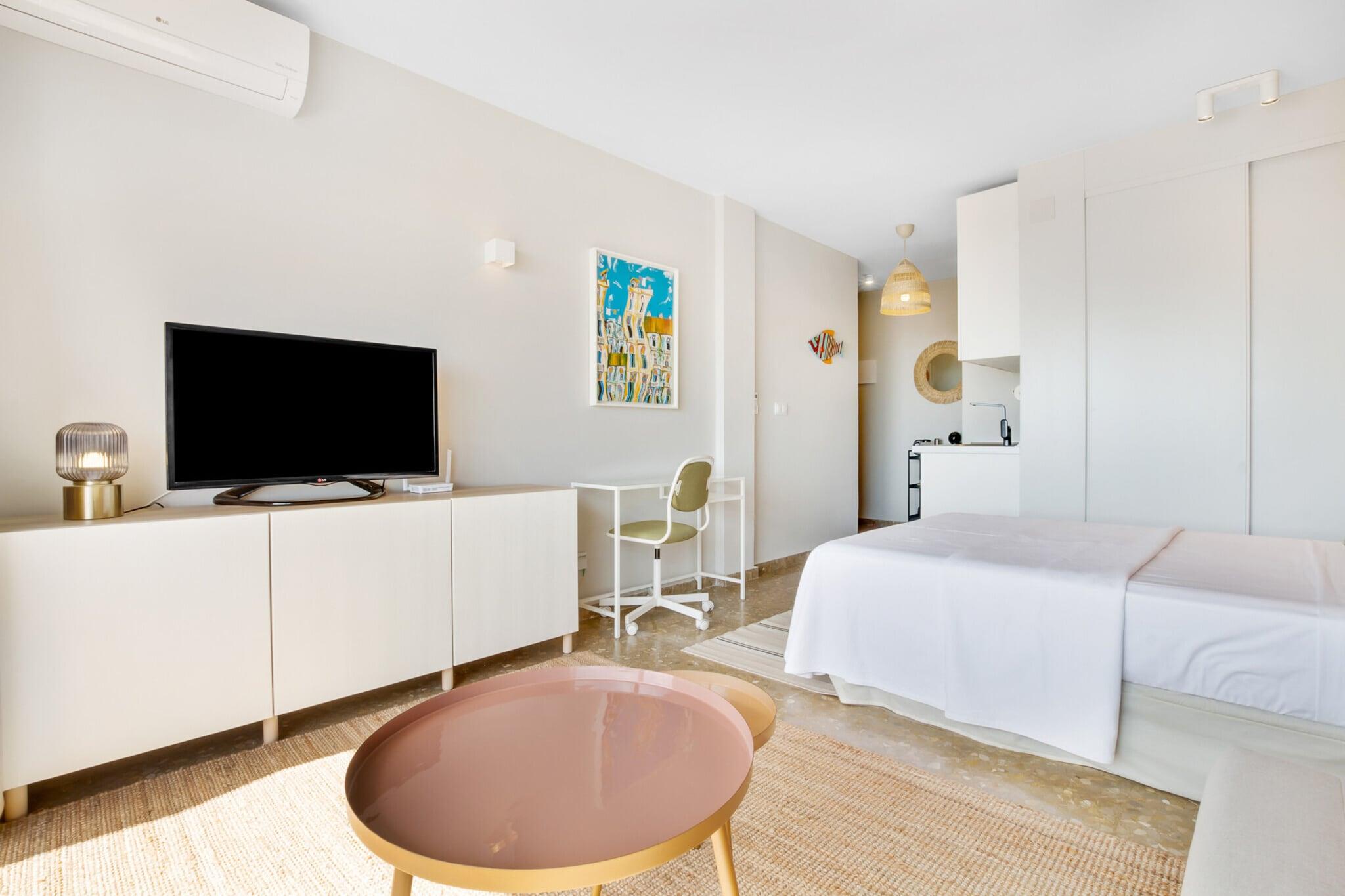 Dette sjarmerende feriehuset er ideelt for par. Dette velutstyrte strandhuset tilbyr et koselig soverom med dobbeltseng og plass til opptil to gjester. Dyreelskere vil bli glade for å vite at eiendommen er kjæledyrvennlig, noe som gjør den til et passende valg for de som reiser med sine pelskledde venner. Stuen har en komfortabel sofa, perfekt for avslappende kvelder. Gjestene kan også nyte frisk luft og sjøbris fra en privat balkong. Mens de bor her, er besøkende velkomne til å dra nytte av gratis tilgang til det felles svømmebassenget, noe som gir et ekstra element av avslapning. Feriehuset ligger bare 59 meter fra Playa de la Carihuela og en kort spasertur fra Playa de Bajondillo, og er omgitt av noen av Torremolinos' beste kyststeder. Det ligger nær det travle bylivet, med Calle San Miguel bare 1 km unna, som tilbyr et utvalg av kafeer, restauranter og butikker. Daglige behov dekkes enkelt med nærliggende supermarkeder som Carrefour Express og Mercadona. Praktiske transportmuligheter inkluderer Renfe Cercanías togstasjon 950 meter unna, Torremolinos busstasjon 2 km unna, og Málaga-Costa del Sol internasjonale lufthavn bare 8 km fra eiendommen, noe som sikrer enkel tilgang for reisende. Innvendig har eiendommen et funksjonelt åpent kjøkken utstyrt med glasskeramisk koketopp, kjøleskap, mikrobølgeovn, stekeovn, fryser og alt nødvendig kjøkkenutstyr, samt kaffemaskin, brødrister og vannkoker. En vaskemaskin, strykejern og hårføner er også tilgjengelig for gjestenes bekvemmelighet.