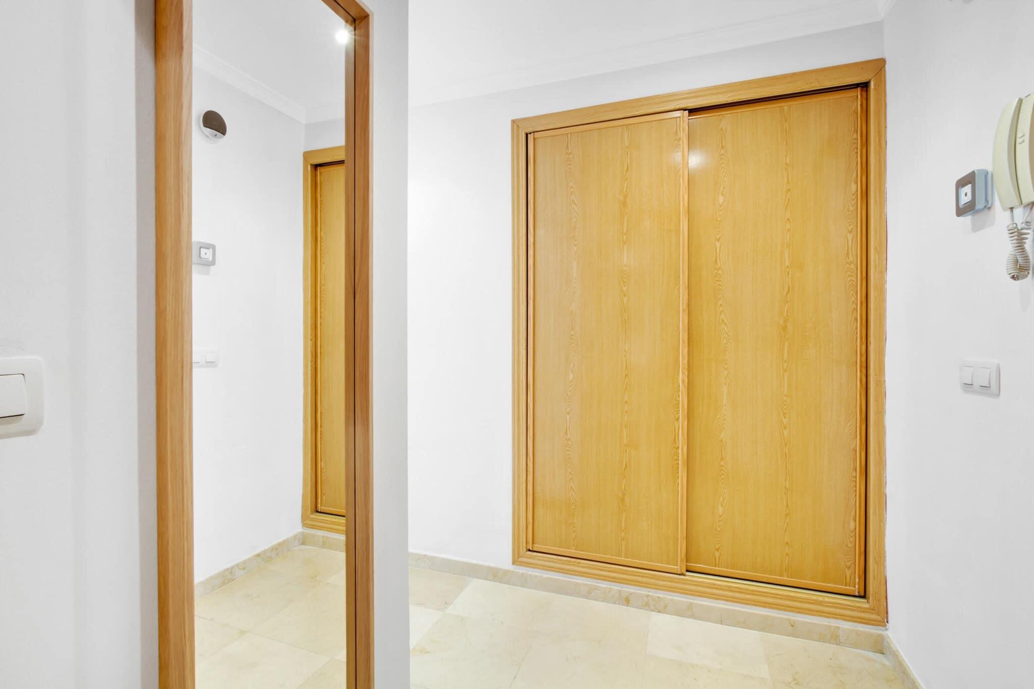 Våkn opp til lyden av bølger og Middelhavets gylne glød i denne nyrenoverte leiligheten ved stranden i Torremolinos. Med direkte tilgang til den uberørte Bajondillo-stranden og bare en kort spasertur fra den livlige La Carihuela-stranden, tilbyr dette moderne kysttilfluktsstedet den perfekte blandingen av avslapning og komfort. Plassen har en frisk, åpen design med en stilig stue og en fullt utstyrt kjøkkenkrok – ideelt for å nyte favorittmåltidene dine med en havbris i bakgrunnen. Leiligheten tilbyr et avslappende soverom med en komfortabel dobbeltseng og en romslig innebygd garderobe, mens en sovesofa i stuen gir ekstra soveplass for gjester. Et elegant bad med dusjkabinett, sammen med klimaanlegg overalt, sikrer et komfortabelt opphold uansett årstid. Høydepunktet er imidlertid den private terrassen – din første rad til endeløs havutsikt, morgenkafferitualer og billedskjønne solnedganger over Middelhavet. Rett utenfor inviterer promenaden deg til å utforske det beste Torremolinos har til fots – fra sjarmerende strandbarer og ferske sjømatrestauranter til boutiquebutikker og livlig natteliv. Enten du er i humør for en dag på stranden, en spasertur langs kysten eller en smakebit av andalusisk kultur, er alt bare noen skritt unna. Denne leiligheten er et ideelt sted for par eller små familier som søker sol, sjø og stil rett ved kysten av Sør-Spania.