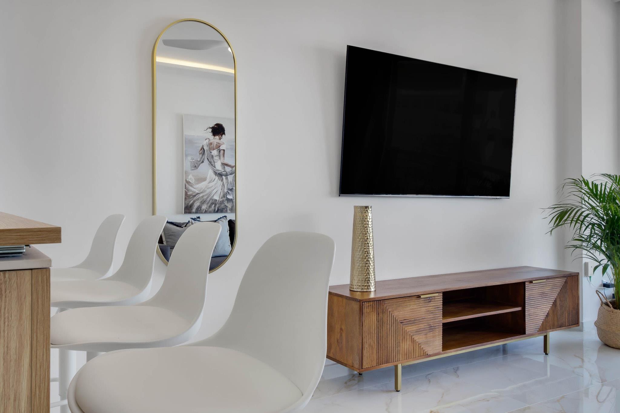 I 4. etasje: (Stue(dobbel sovesofa, TV(Smart-TV), spisebord, sittehjørne), åpent kjøkken(komfyr med kokeplater(keramisk), vannkoker, brødrister, kaffetrakter, stekovn, mikrobølgeovn, oppvaskmaskin, kjøleskap med fryser, , Wine glasses), soveværelse(dobbeltseng), bad(dusj, Hårtørker), Internett-tilgang) , Internett-tilgang, tørketrommel, vaskemaskin, oppvarming(sentral), klimaanlegg, terrasse, parkering, svømmebasseng(deles med andre gjester), strykejern