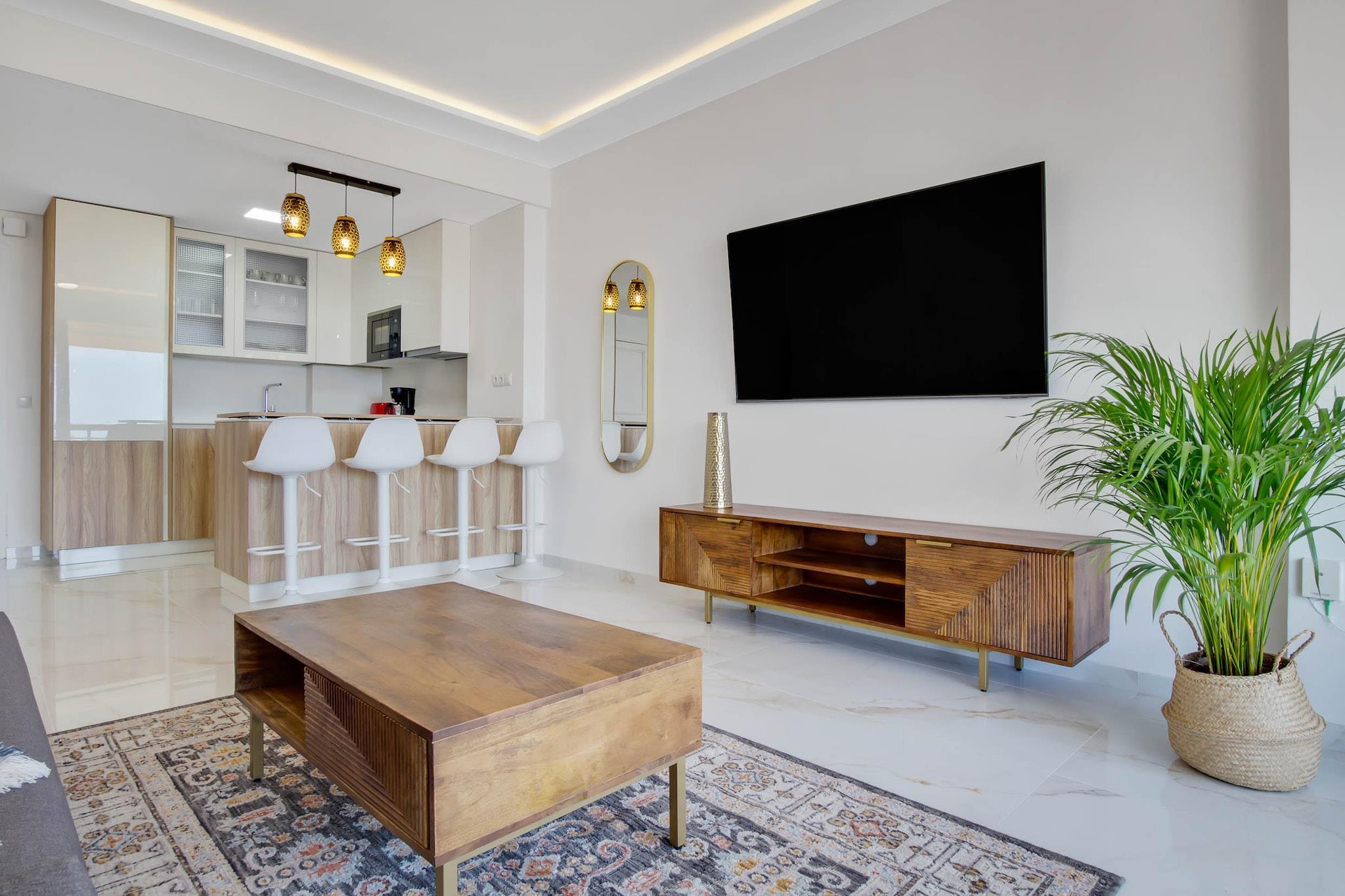 Våkn opp til vidstrakt utsikt over Middelhavet i denne moderne og innbydende leiligheten, designet for par, små familier eller fjernarbeidere som søker en fredelig flukt ved kysten. Med et varmt, stilig interiør og en lys, åpen planløsning, tilbyr den den perfekte blandingen av komfort og bekvemmelighet bare noen skritt fra havet. Leiligheten har et romslig soverom med dobbeltseng og en koselig stue med sovesofa, med komfortabel plass til opptil fire gjester. Det fullt utstyrte kjøkkenet har oppvaskmaskin, stekeovn og mikrobølgeovn, noe som gir mulighet for uanstrengt hjemmelagde måltider. Gå ut på din private terrasse og nyt frokost med en havbris eller slapp av med utsikt over solnedgangen over vannet. Beliggenheten ligger bare en kort spasertur fra to av Torremolinos' mest populære strender, og gir enkel tilgang til livlige promenader, lokale restauranter og kystsjarm. Du er også i nærheten av toppattraksjoner som en pittoresk marina, lokale parker og livlige handlegater. Fasiliteter på stedet inkluderer høyhastighets Wi-Fi, flatskjerm-TV, klimaanlegg, oppvarming og tilgang til et utendørsbasseng og solterrasse som er ideell for avslapning etter en dag ute. Tilleggskostnader inkluderer et refunderbart nøkkeldepositum for strandtilgang og valgfrie sesongbaserte tjenester. Enten du er her for en romantisk ferie, en solrik arbeidsferie eller en avslappet familieferie, tilbyr denne leiligheten et uforglemmelig opphold på Costa del Sol.