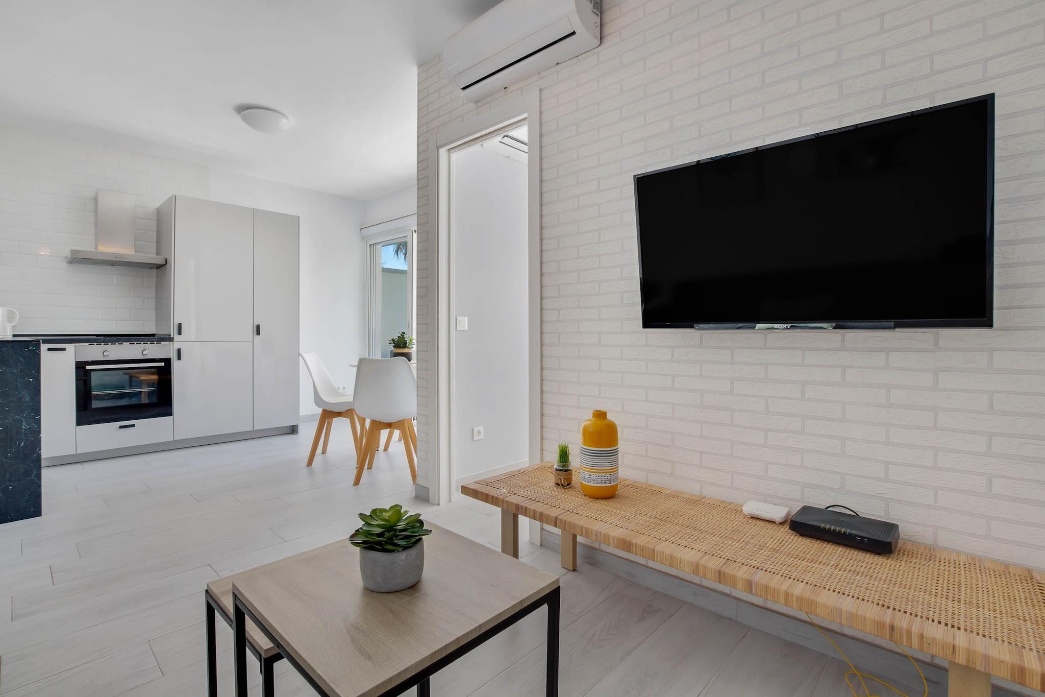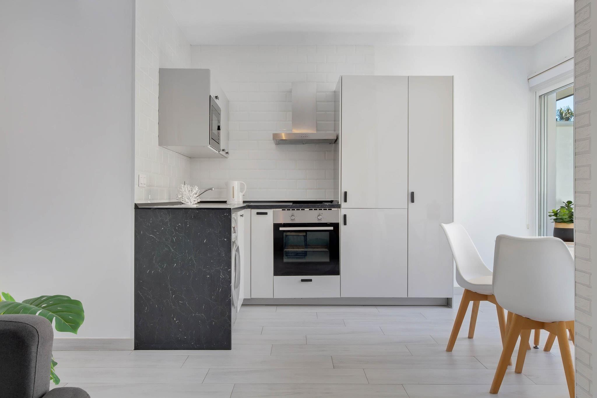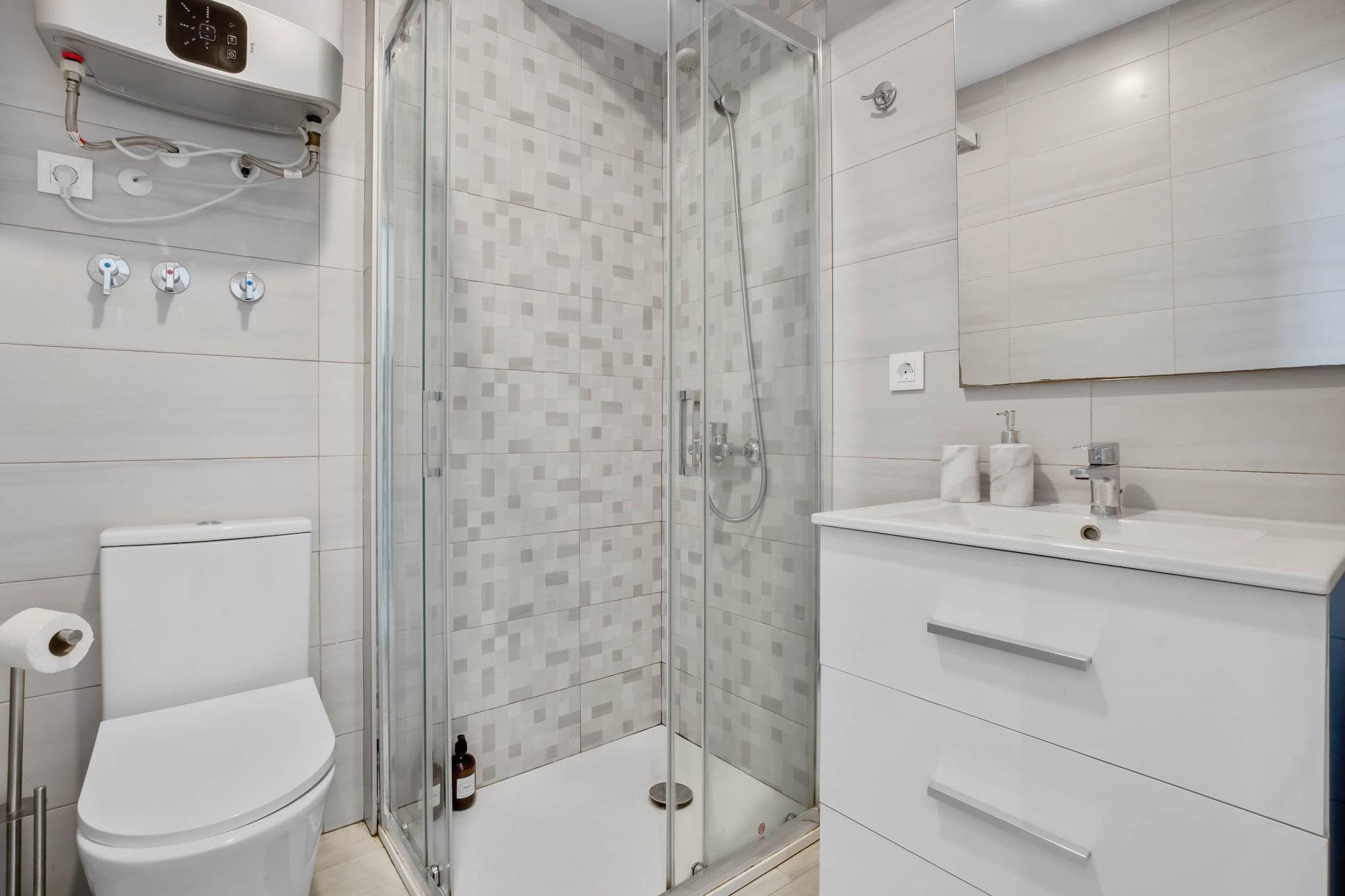 Tenk deg å starte dagen med den milde summingen av bølger og de gylne fargetonene av soloppgang som maler Middelhavets horisont. Denne leiligheten ved stranden tilbyr et rolig tilfluktssted, perfekt for opptil fire gjester som søker både avslapning og eventyr. Inne finner du to komfortable soverom, begge med dobbeltseng og klimaanlegg for å sikre avslappende netter. Det åpne kjøkkenet er fullt utstyrt med moderne hvitevarer, inkludert et stort kjøleskap, stekeovn, mikrobølgeovn, oppvaskmaskin og viktige kokekar, noe som gjør matlaging til en fryd. Stuen åpner ut mot en solfylt terrasse, et ideelt sted for morgenkaffe eller kveldsavslapning, med fantastisk utsikt over havet og bassenget. Leiligheten ligger i et velholdt område som kan skryte av et forfriskende svømmebasseng, perfekt for en avslappende dukkert etter en dag på stranden. Ligger bare noen skritt fra sandstrendene i Torremolinos, er du også innen gangavstand fra pulserende lokale spisesteder, butikker og kulturelle attraksjoner. Enten du slapper av ved bassenget, utforsker de sjarmerende gatene eller nyter strandstemningen, er denne leiligheten den perfekte basen for en uforglemmelig kystferie.