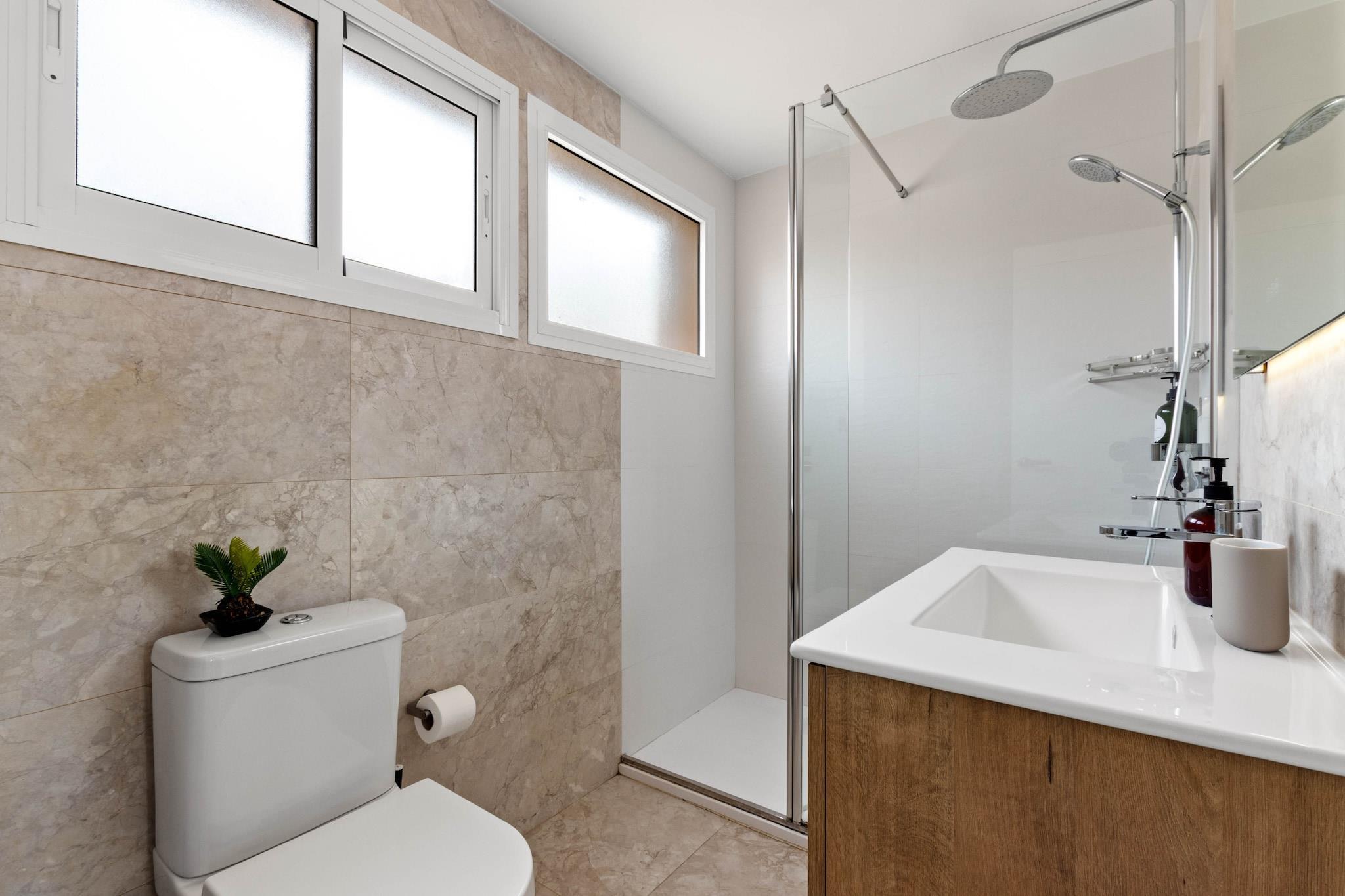 Første etasje: (Stue(1 persons sovesofa, TV(Smart-TV), spisebord, sittehjørne), Åpent kjøkke(komfyr med kokeplater(keramisk), vannkoker, brødrister, kaffetrakter, stekovn, mikrobølgeovn, kjøleskap med fryser, , ), soveværelse(dobbeltseng(150 x 200 cm)), bad(dusj, håndvask, toalett)) , , Internett-tilgang, vaskemaskin, gårdhave, oppvarming, klimaanlegg, terrasse(5 m2), parkering, svømmebasseng(deles med andre gjester), strykejern, Hårtørker, , Wine glasses