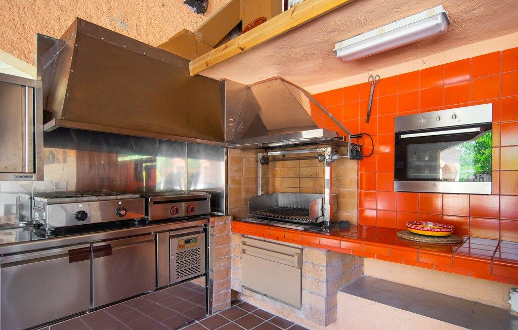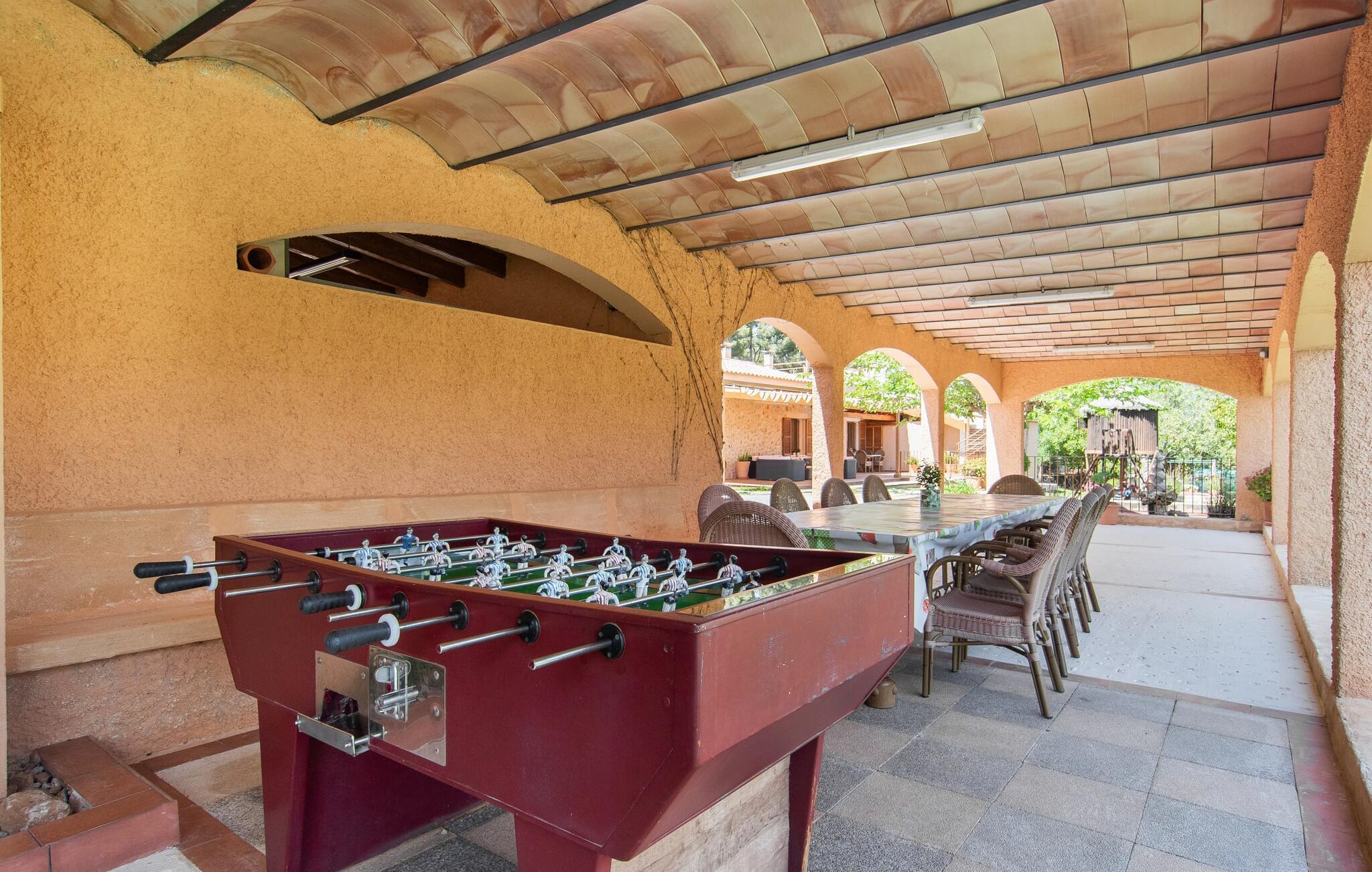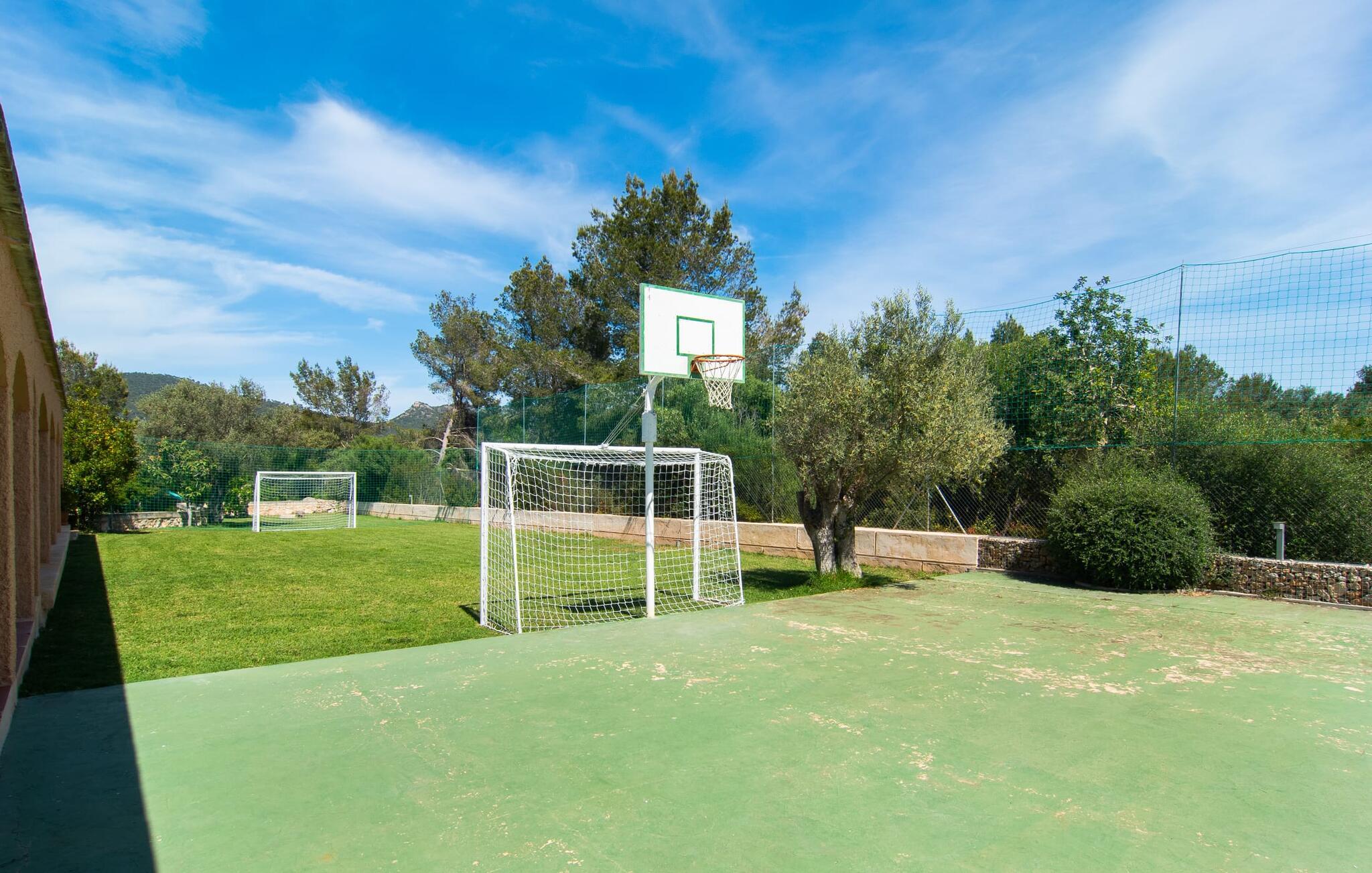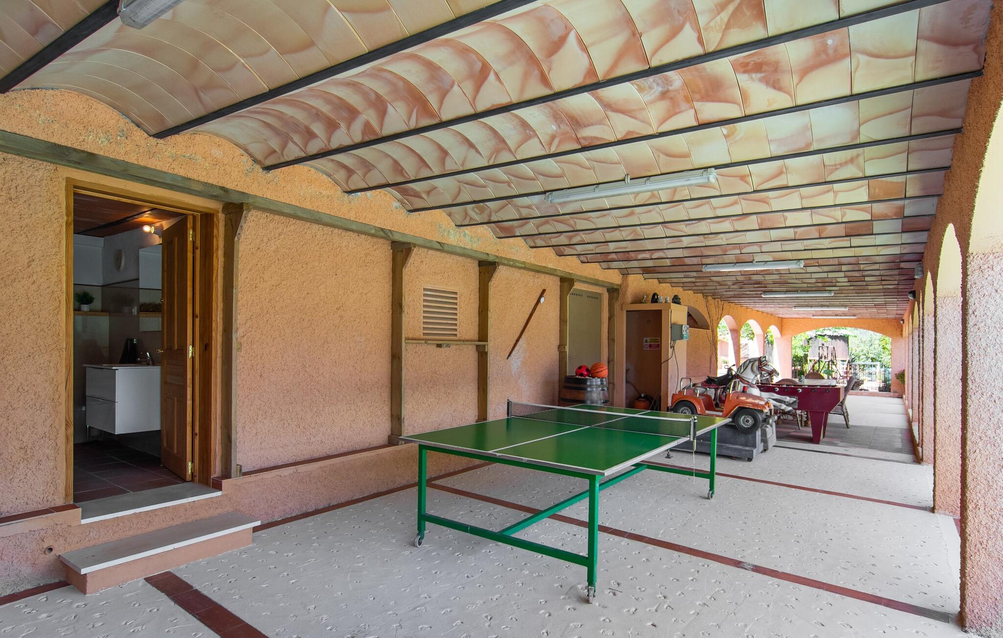 Her er det fotballbane på gress, basketballbane, bordtennisbord, bordfotballbord, en tømmerhytte med lekeplass og mange andre barnedrømmer. Bassenget er inngjerdet og barnesikkert. Mens de yngste kan slippe bevegelsestrangen løs på den 4500 m² store inngjerdede tomten, kan de voksne slappe av på de komfortable sitteplassene under den koselige, store terrassen. Andre høydepunkter er det velutstyrte utekjøkkenet med grill og det vakre bassengområdet, der en markise sørger for rikelig med skygge om ønskelig.