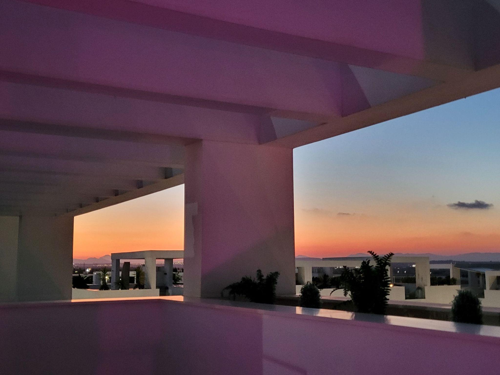 - 80sqm roof terrace with chilled lounge and 2 sun loungers, an open shower and a unique view over the salt lagoon of Torrevieja