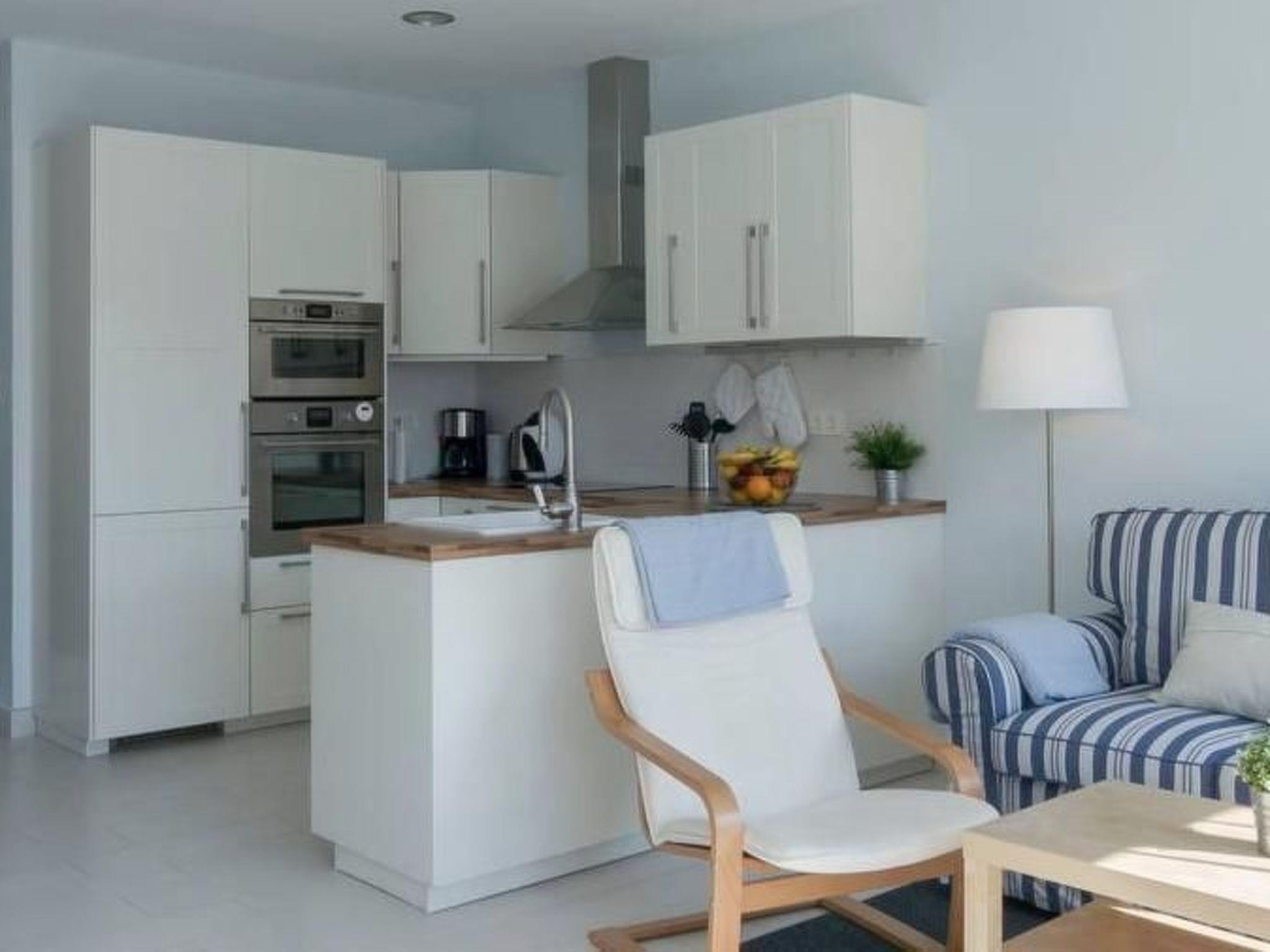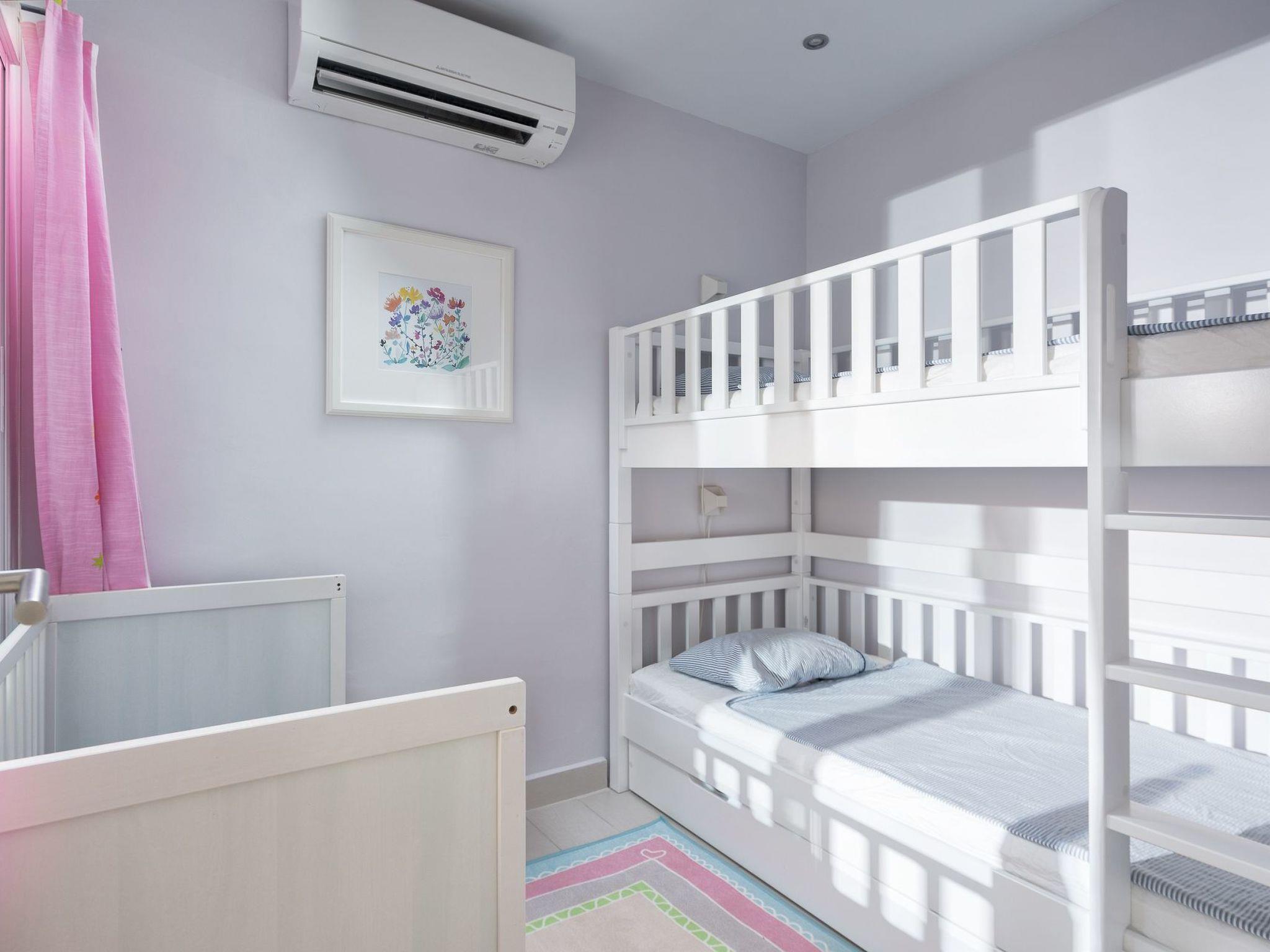 The house has an approx. 33 m² living and dining room with an integrated American kitchen. The kitchen is equipped with an induction hob (electric connection), a fridge-freezer, a microwave, an oven and a dishwasher. A flat-screen TV with satellite connection and a Blu-Ray player is available so that you don't have to miss out on your favourite German TV programme even on holiday. There are also two bedrooms in the house. In one bedroom there is a double bed (1.60 x 2.00 m). In the other bedroom, the children's room, there is a wooden baby cot measuring 60 x 120 cm and a bunk bed with pull-out bed drawer for a total of three children measuring 90 x 200 cm. The bathroom has a shower, washbasin and WC. You can also wash your clothes in the in-house washing machine. A tumble dryer is also available. There are three air conditioning units in the house, which heat and cool the house. The house has child-friendly furnishings and is ideal for families with small children. A children's dining chair, children's crockery and cutlery, children's step for the sink and various sand toys are available.