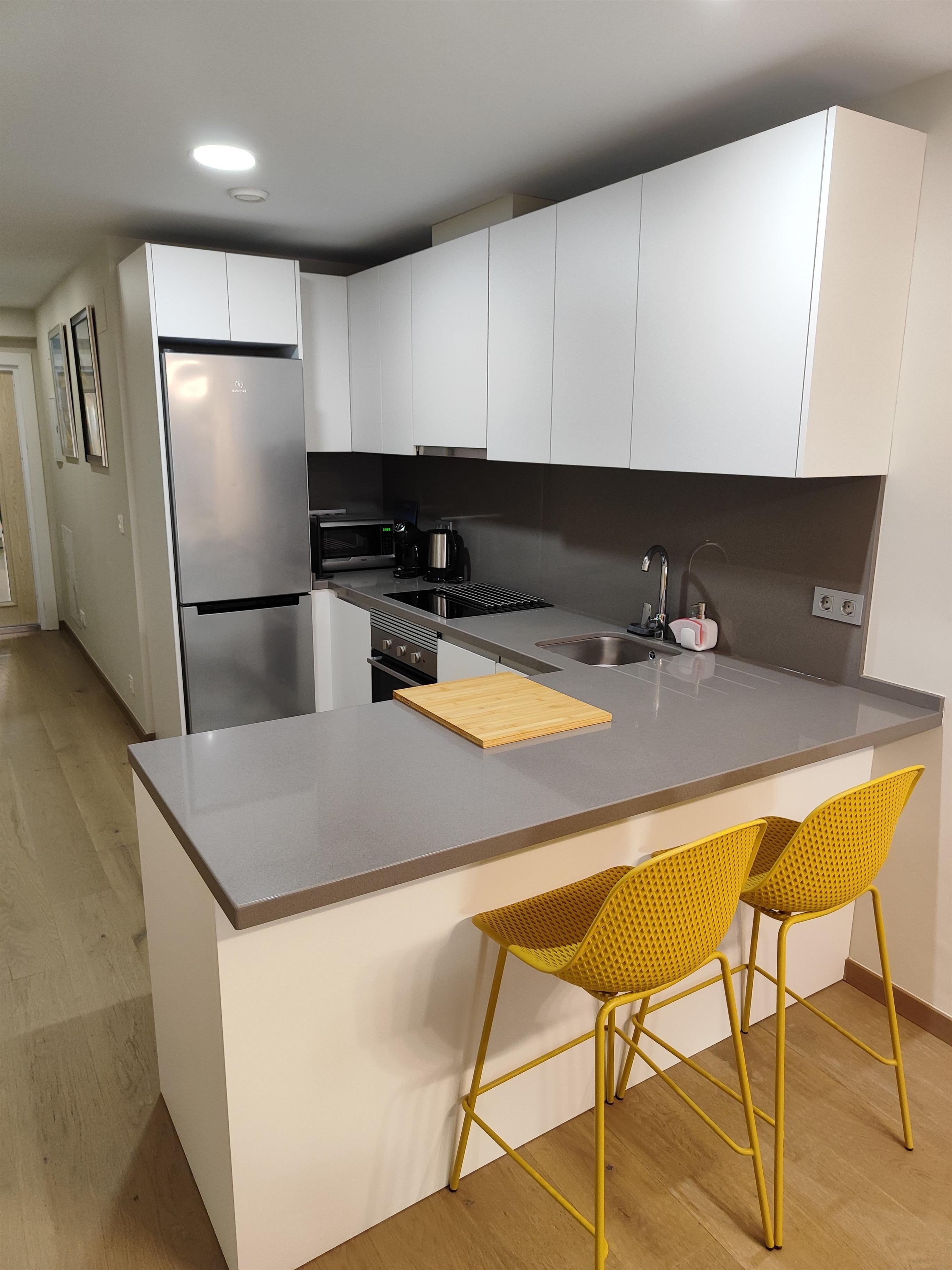 Der Balkon bietet frische Luft und Entspannung direkt an Ihrer Unterkunft. In der gut ausgestatteten Küche finden Sie neben einem Kühlschrank auch eine Mikrowelle und einen Backofen.