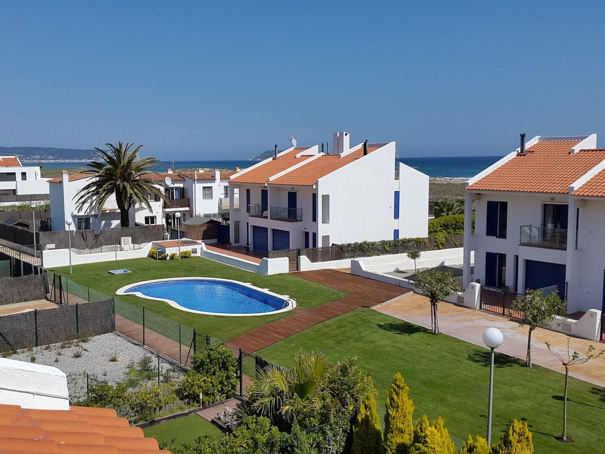 Barefoot from the garden straight to the beach? This modern but cosy holiday home with pool is in a perfect location, directly behind the dunes of the beautiful sandy beach of Mas Pinell. The two-storey terraced corner house has a total living area of 120 m², with 3 bedrooms and 2 bathrooms on the 1st floor, and a large living/dining area, kitchen and small WC on the ground floor. On the 2nd floor there is a roof terrace with impressive views of the sea, the Islas Medas and the surrounding mountains. The house offers space for 6 people.