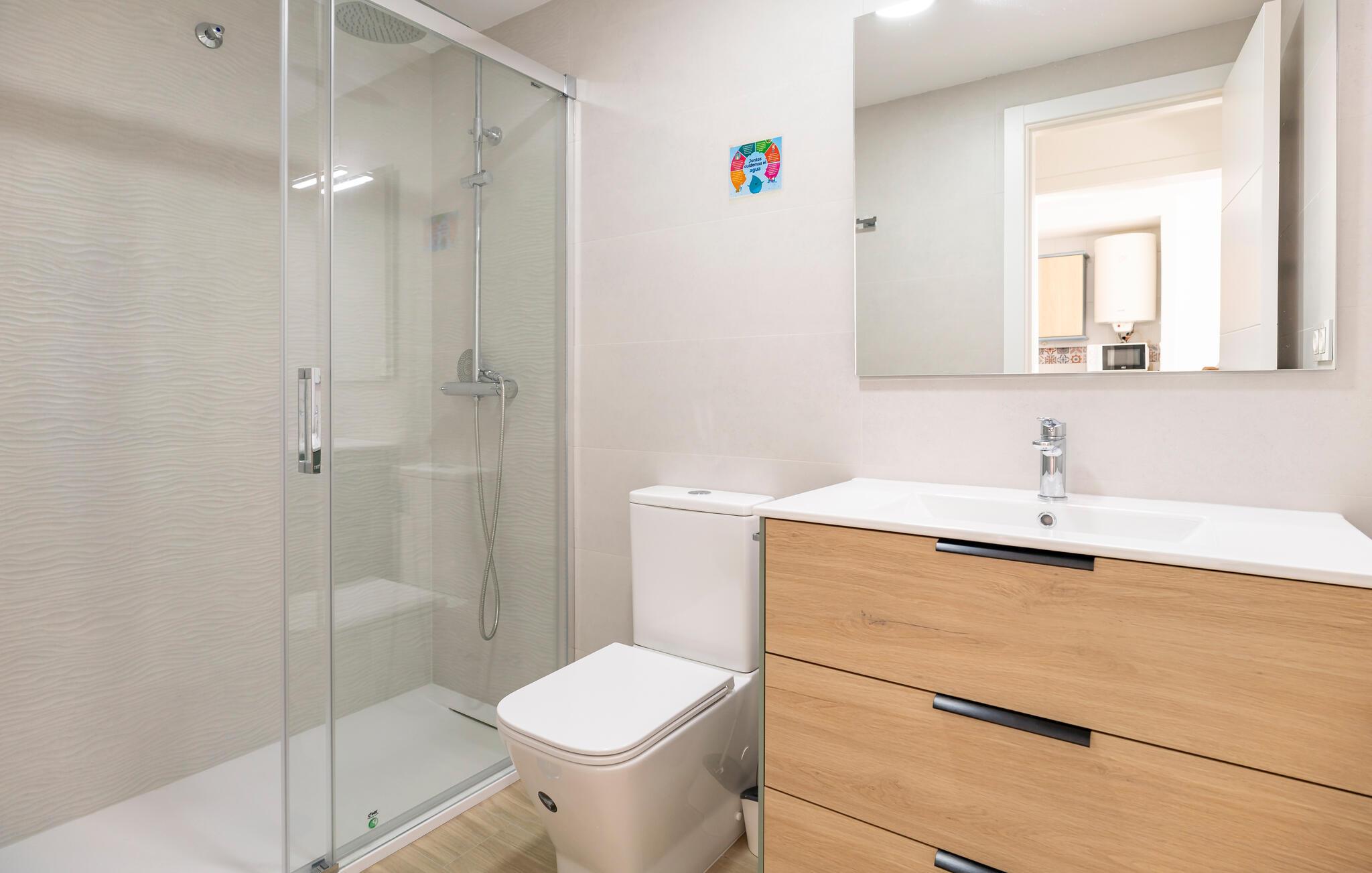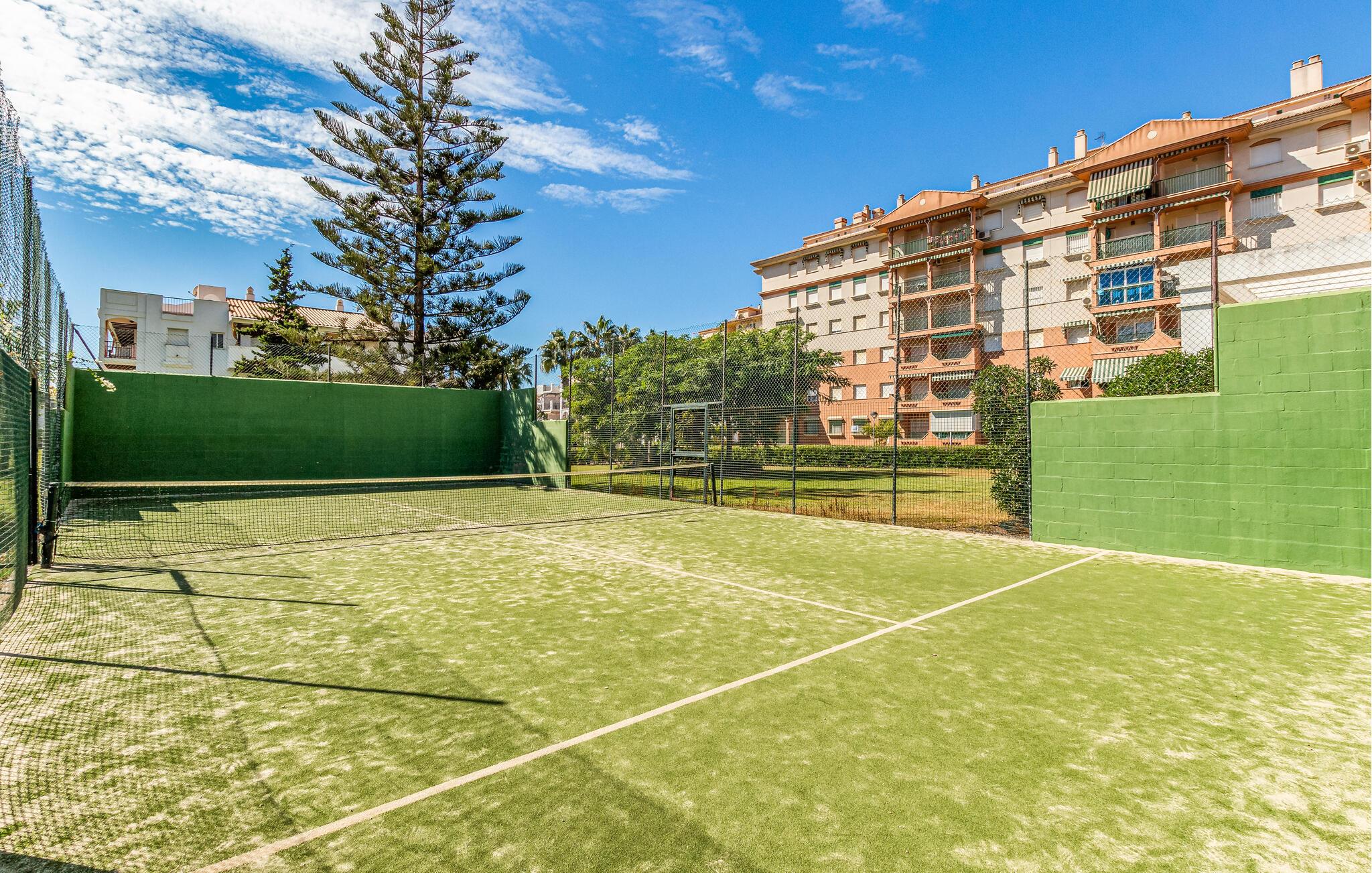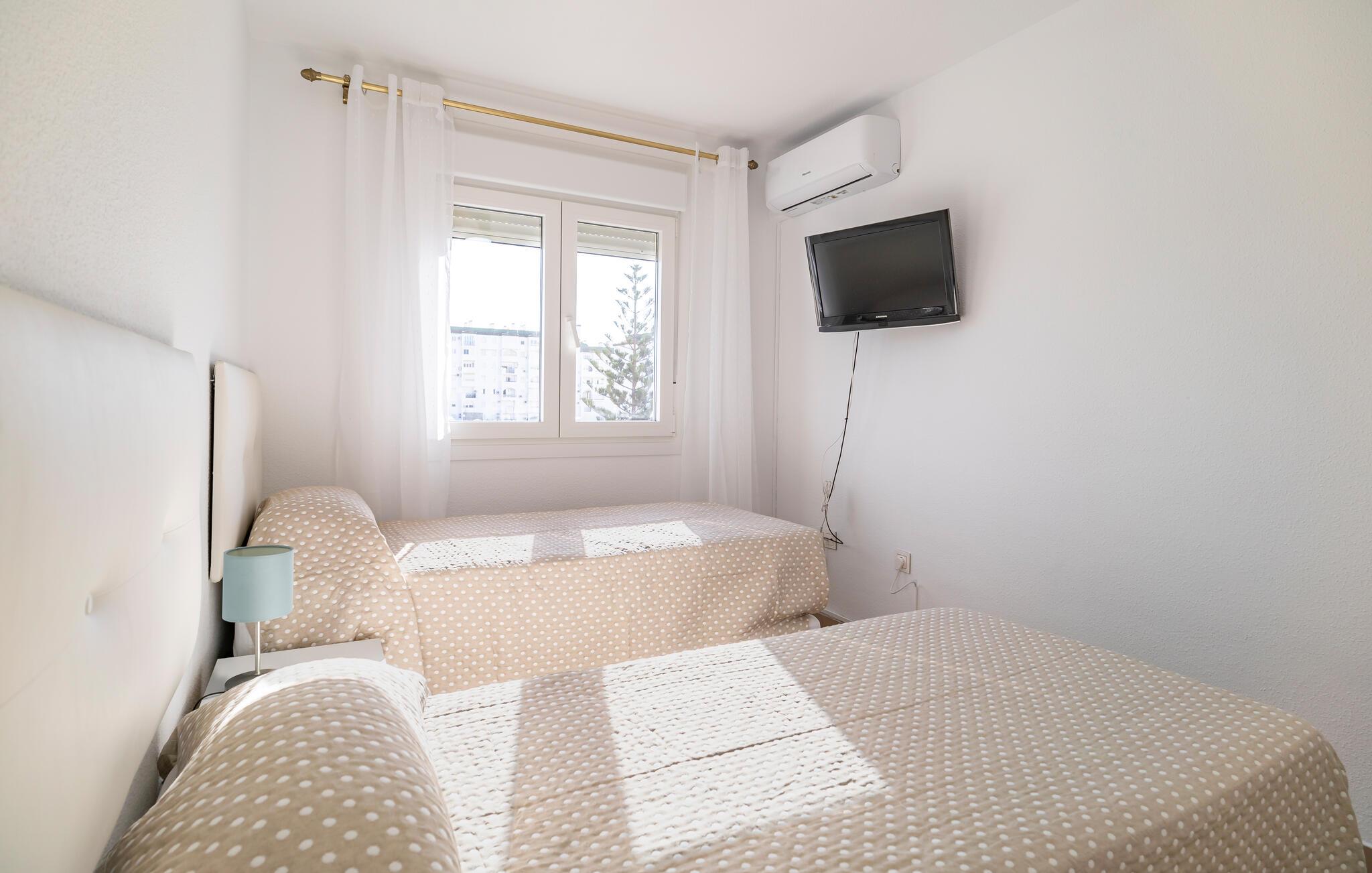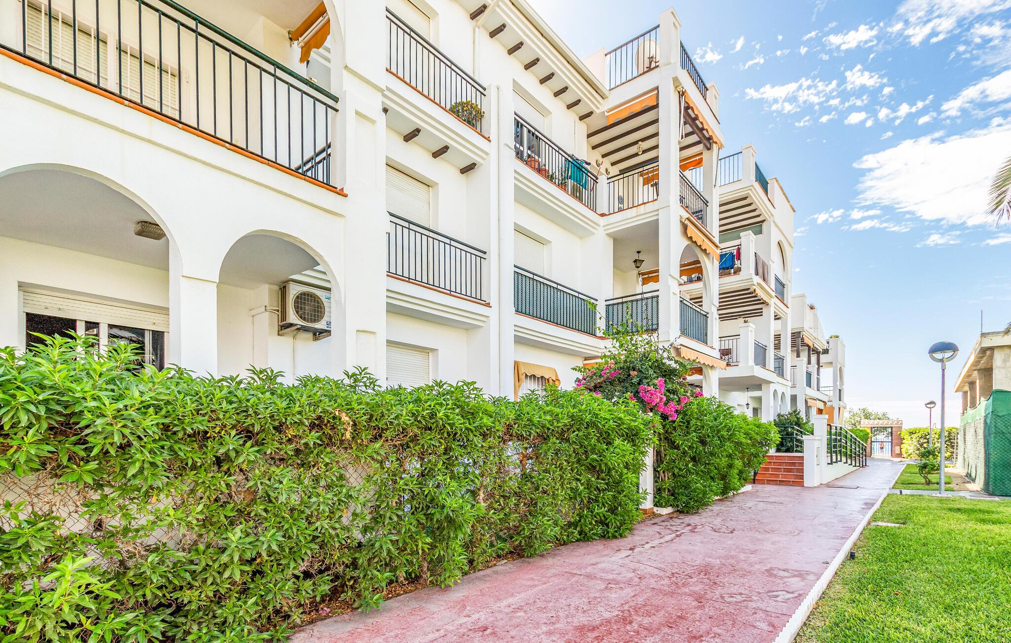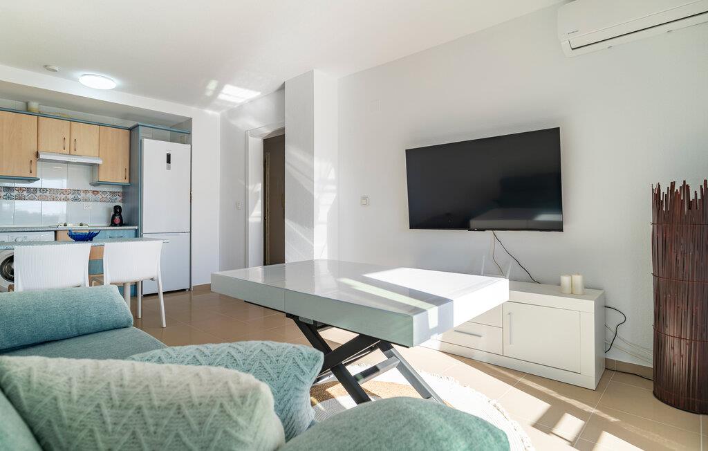 Denne stilfulle og moderne ferieleiligheten tilbyr deg en komfortabel base for en avslappende ferie ved sjøen. Den lyse og åpne innredningen skaper en hyggelig atmosfære som gjør at du umiddelbart vil føle deg hjemme. Nyt utsikten over området rundt fra balkongen og innånd den friske sjøluften. Etter en dag på den nærliggende sandstranden kan du forfriske deg i et av de felles bassengene og gjøre strandferien til en god opplevelse.