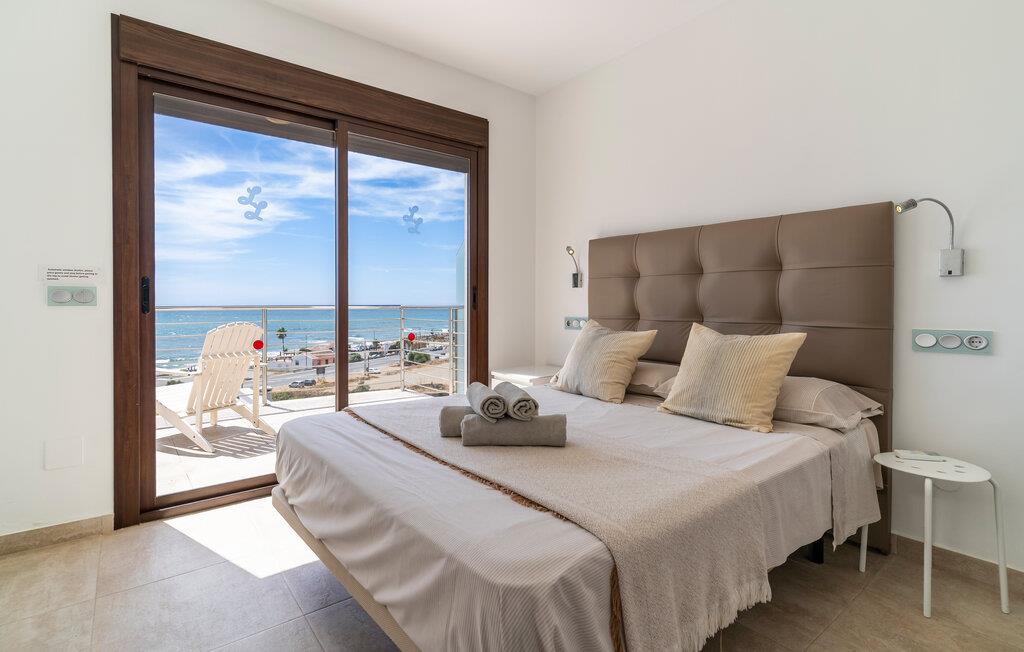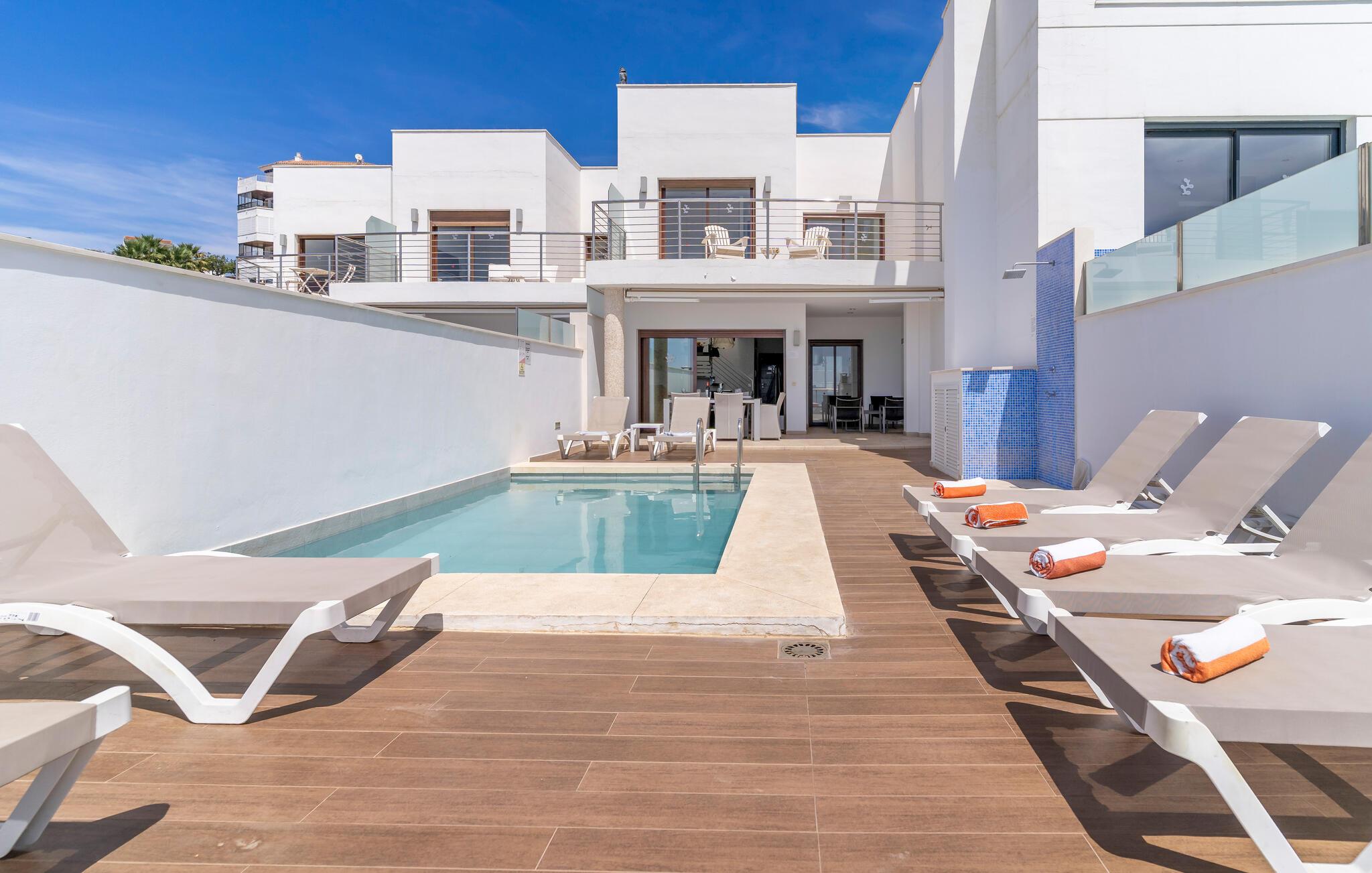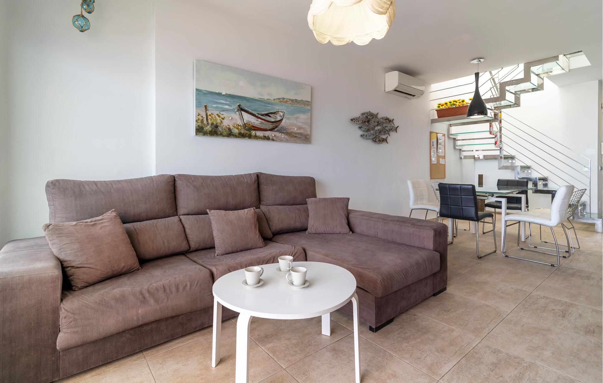 Bare noen få skritt fra sandstranden ligger dette moderne og romslige rekkehuset, hvor du kan slappe av fra hverdagen i den beroligende havbrisen. Tilbered velsmakende tapas og middelhavsretter i hyggelig selskap, gled deg til hyggelige måltider og kom sammen til en koselig filmkveld i den komfortable sofaen etter en lang dag i solen.