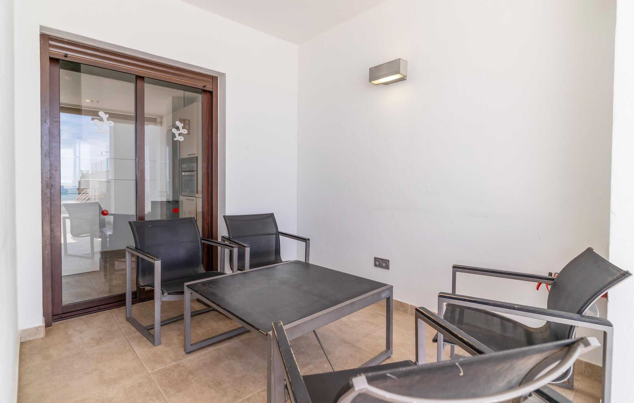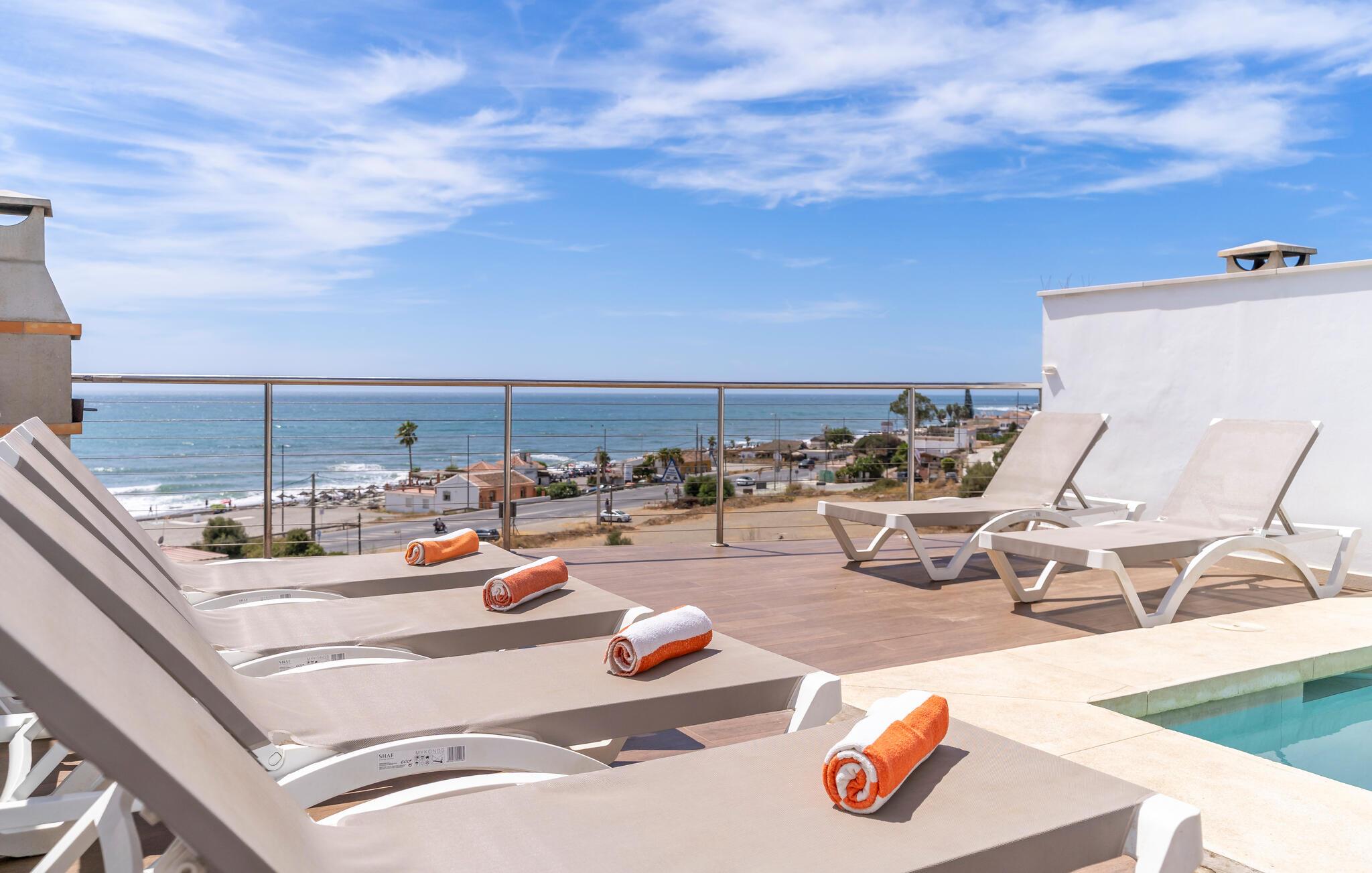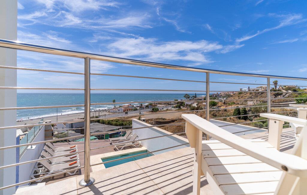 Takket være den brede skyvedøren i glass kommer du enkelt ut på den romslige terrassen, hvor du kan nyte en fortryllende utsikt over havet. Her kan du starte dagen med ferskpresset appelsinjuice, forfriske deg i det lille private bassenget og slappe av i de komfortable solsengene. En grill er tilgjengelig for koselige kvelder med vin og levende lys.