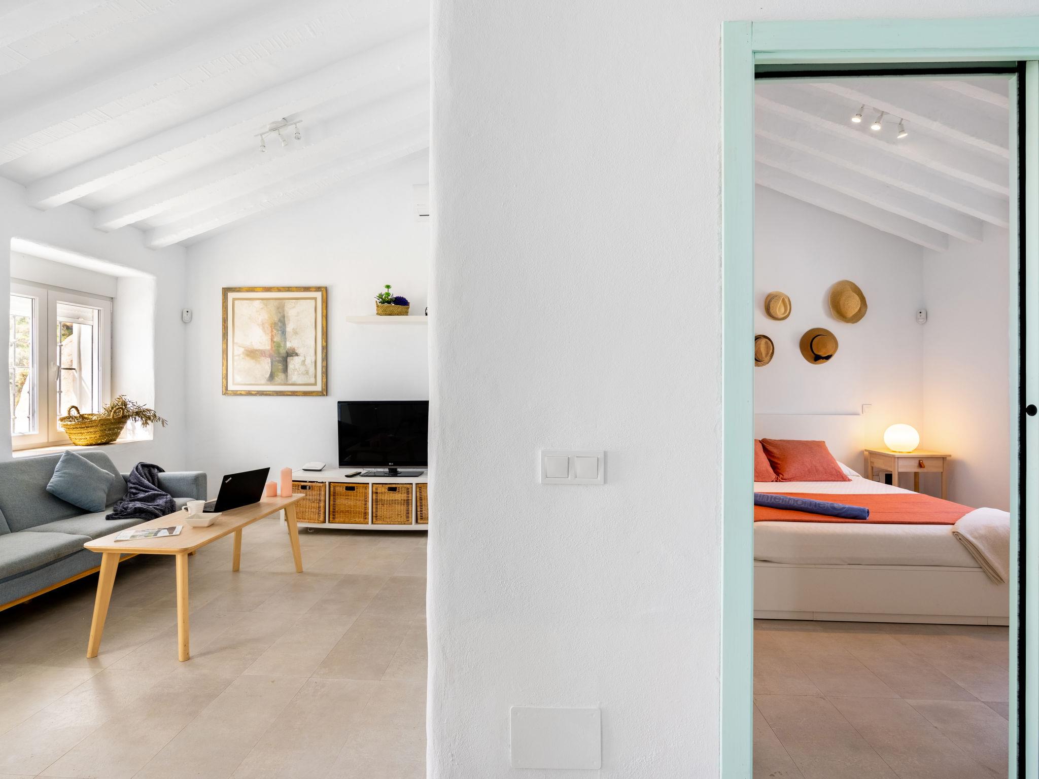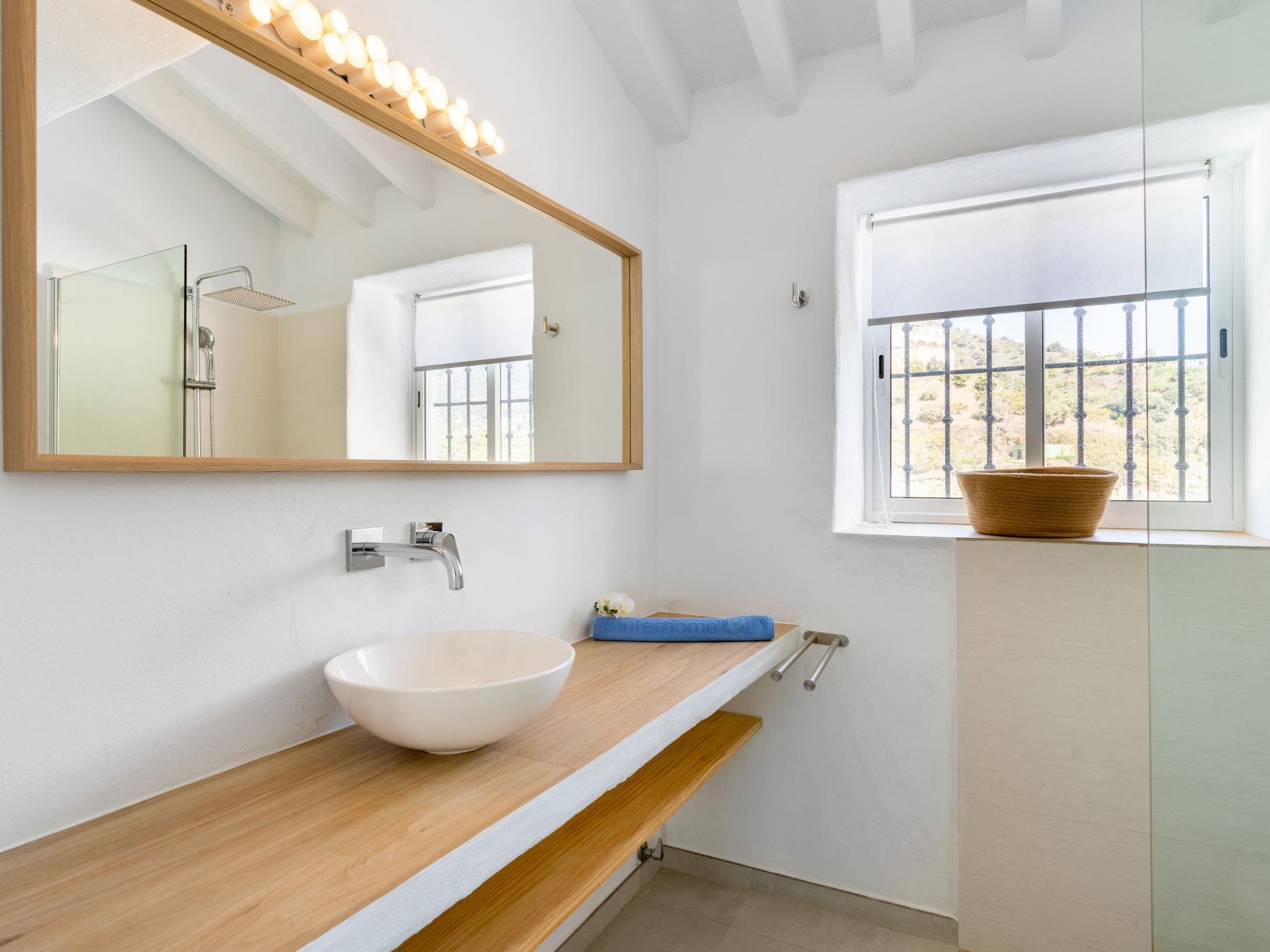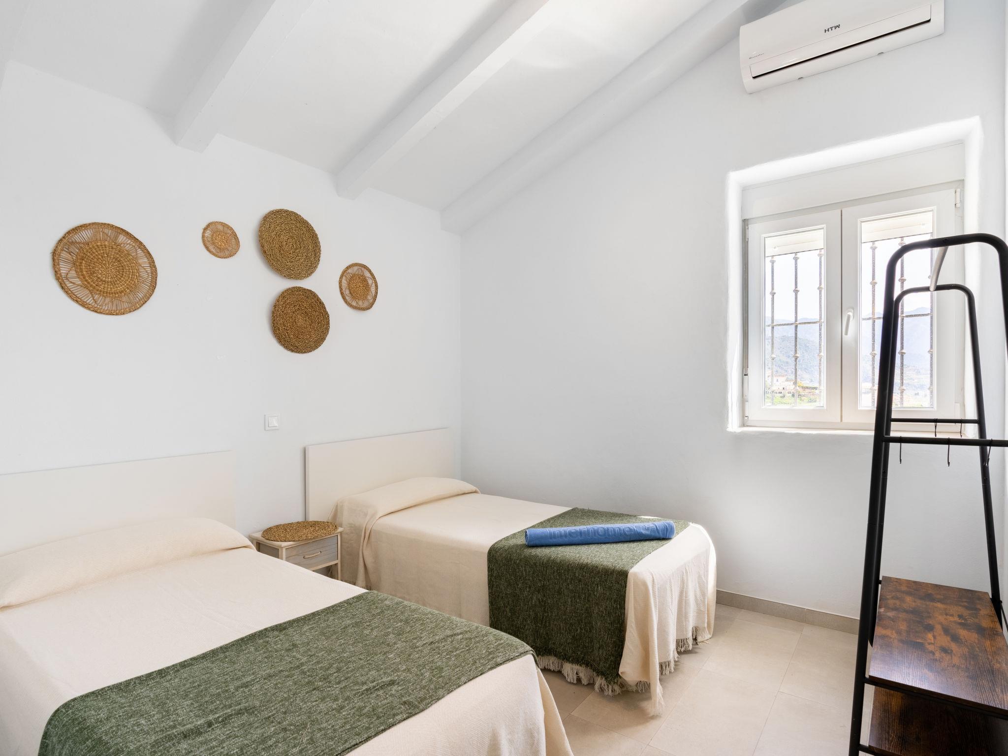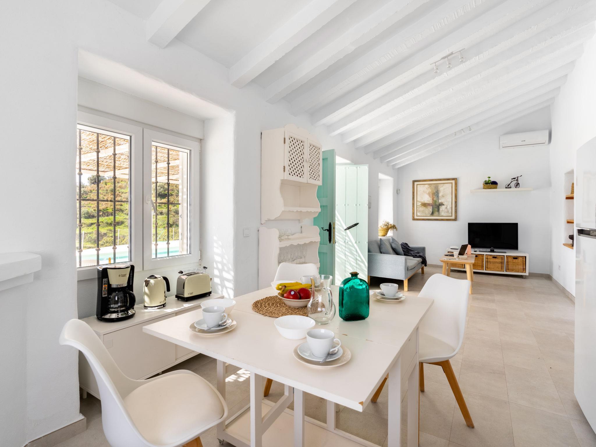 "Las Vistas", 3-room farmhouse 60 m2, south facing position. Simple and rustic furnishings: living/dining room with open-hearth fireplace (only for decoration), digital TV, air conditioning and forced-air heating. Exit to the terrace, to the swimming pool. 1 room with 2 beds (90 cm, length 190 cm), air conditioning and forced-air heating. 1 room with 1 french bed (160 cm, length 190 cm), air conditioning and forced-air heating. Open kitchen (4 ceramic glass hob hotplates, toaster, kettle, microwave, freezer, electric coffee machine). Exit to the terrace, to the swimming pool. Shower/WC. No heating option. Large terrace. Terrace furniture, barbecue, deck chairs. Panoramic view of the sea, the mountains and the resort. Facilities: washing machine, iron, children's high chair, baby cot for up to 2 year olds, hair dryer. Internet (WiFi). Please note: smoke alarm, fire extinguisher. CR/MA/02383