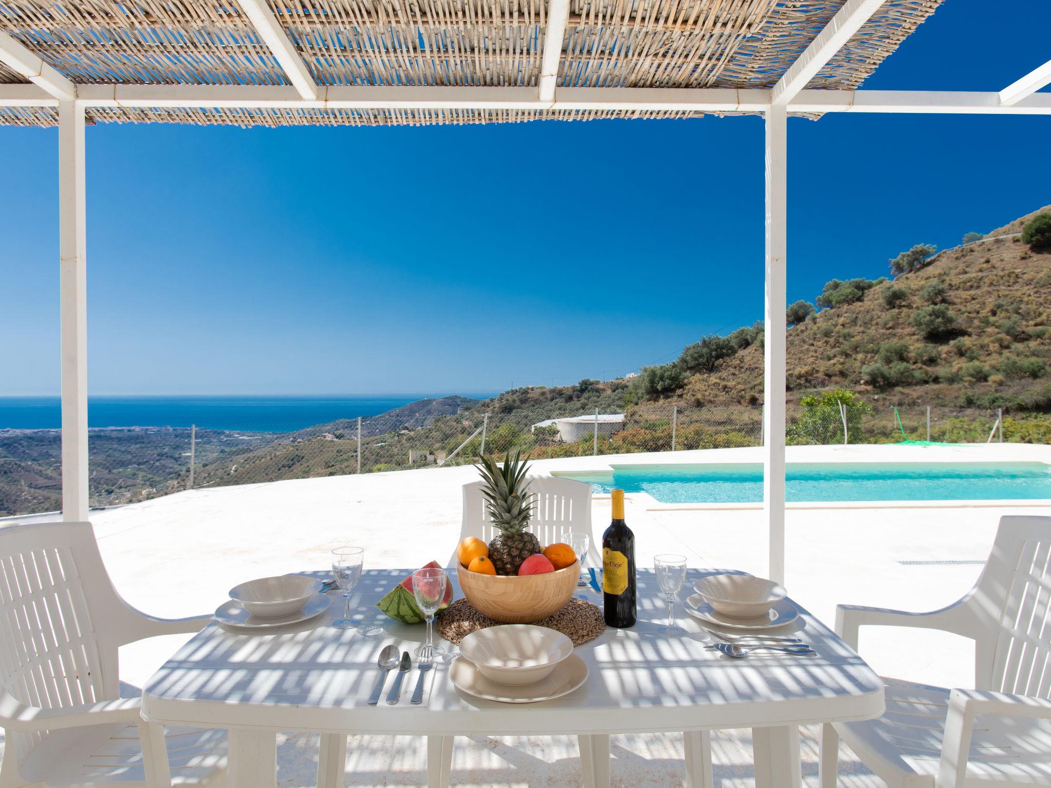 Frigiliana 7 km from Frigiliana: Beautiful, rustic farmhouse "Las Vistas". Outside the resort, 7 km from the centre of Frigiliana, 12 km from the sea. Private: property, swimming pool angular (8 x 3 m, seasonal availability: 31.Dec. - 01.Jan.). Outdoor shower, terrace (600 m2), garden furniture, barbecue. 100 m long steep motor access to the house. Parking (for 3 cars). Shop 7 km, grocery 7 km, shopping centre 23 km, restaurant 1.2 km, bakery 7 km, café 7 km, pedestrian zone 7 km, pub garden 2 km, bus stop "frigiliana" 7 km, railway station "Malaga" 55 km, sandy beach "Burriana" 12 km, diving center 12 km. Sports harbour 27 km, marina 27 km, golf course (18 hole) 16 km, surf school 27 km, sailing school 27 km, walking paths from the house 7 km. Nearby attractions: Frigiliana, Torrox, Nerja, Competa, Malaga, Granada. Well-known ski regions can easily be reached: Sierra Nevada. Hiking paths: Sierra Tejeda, Sierra Almijara. Please note: car recommended. The owner does not accept any youth groups. Loading and unloading of baggage is possible at the holiday house.