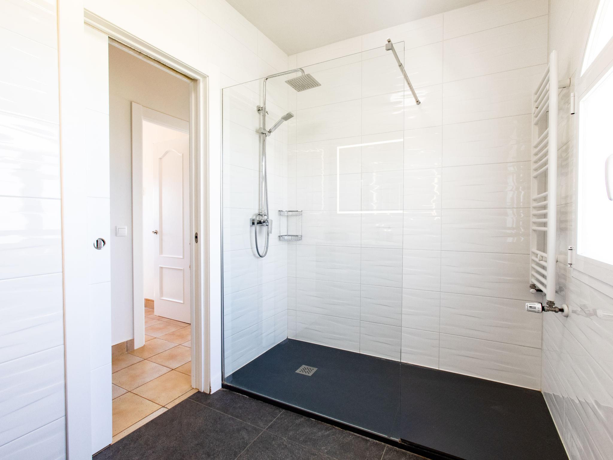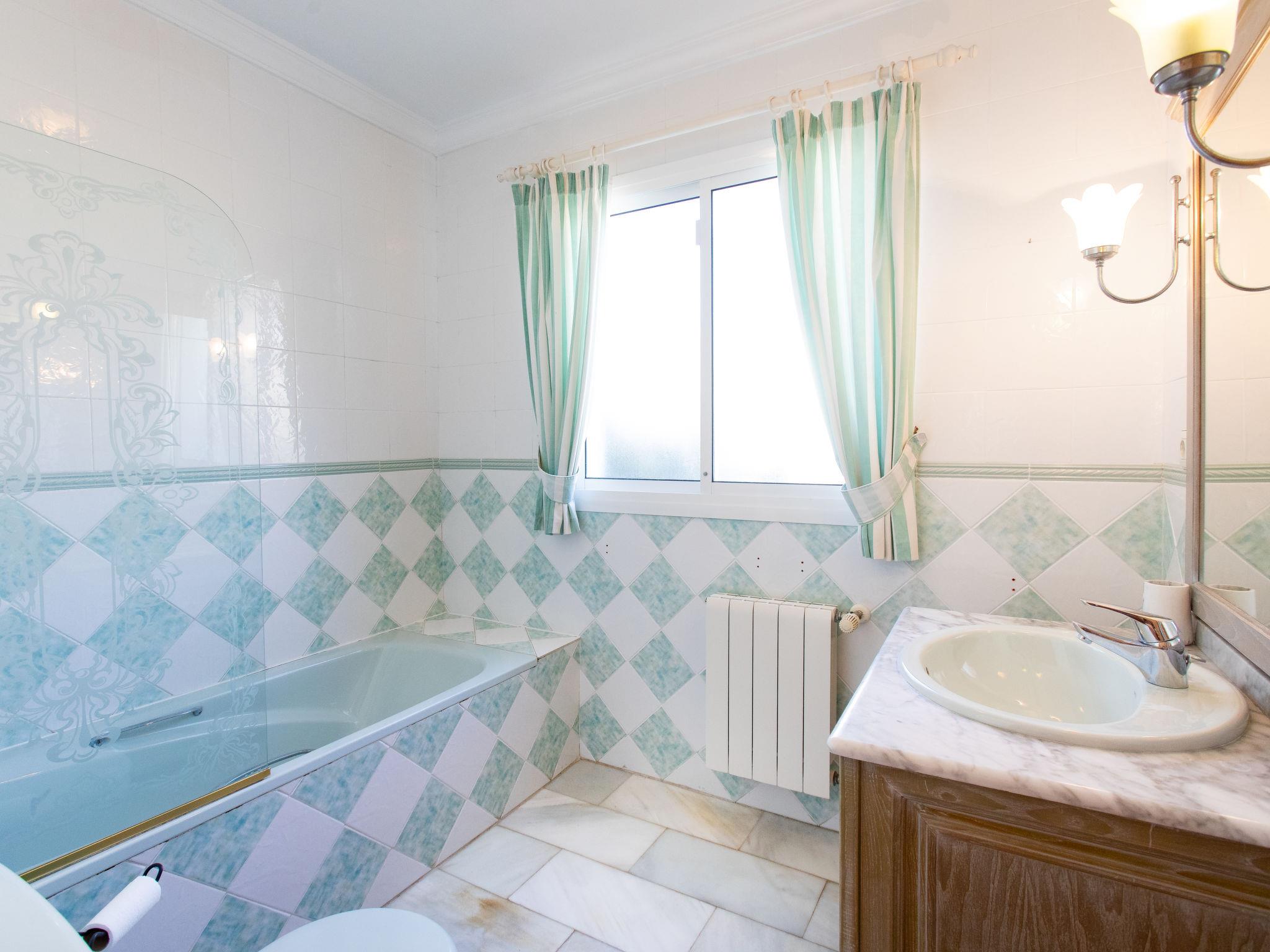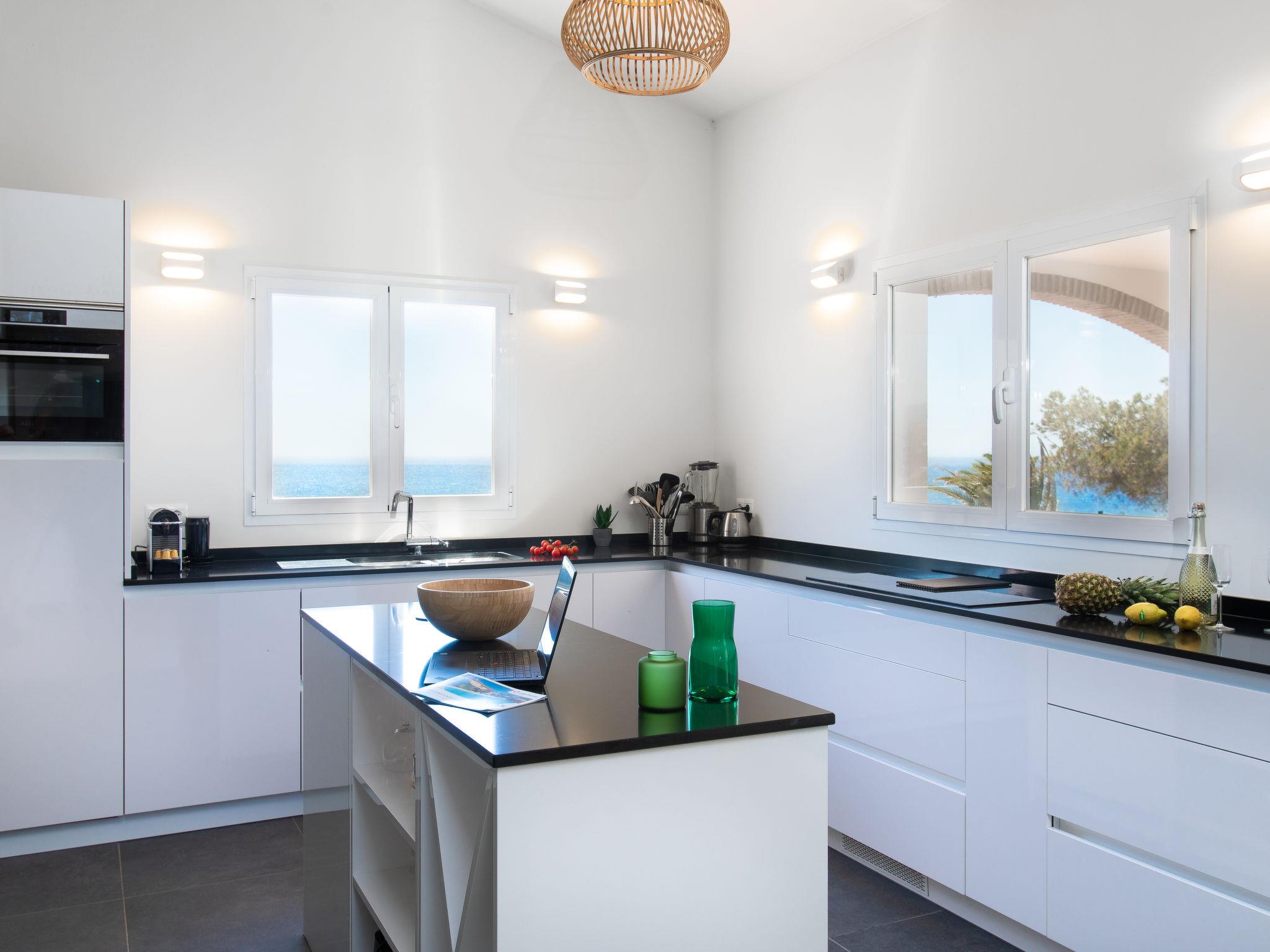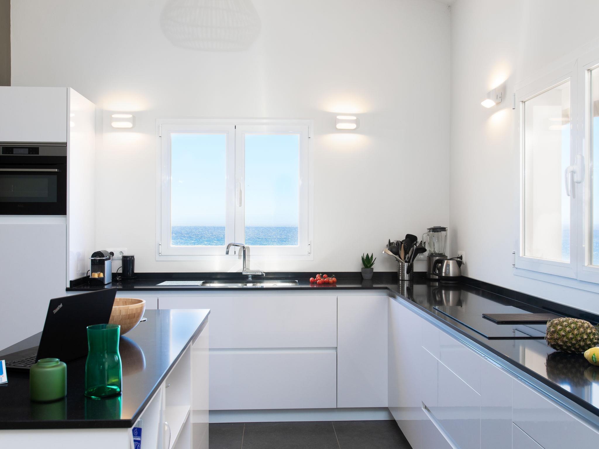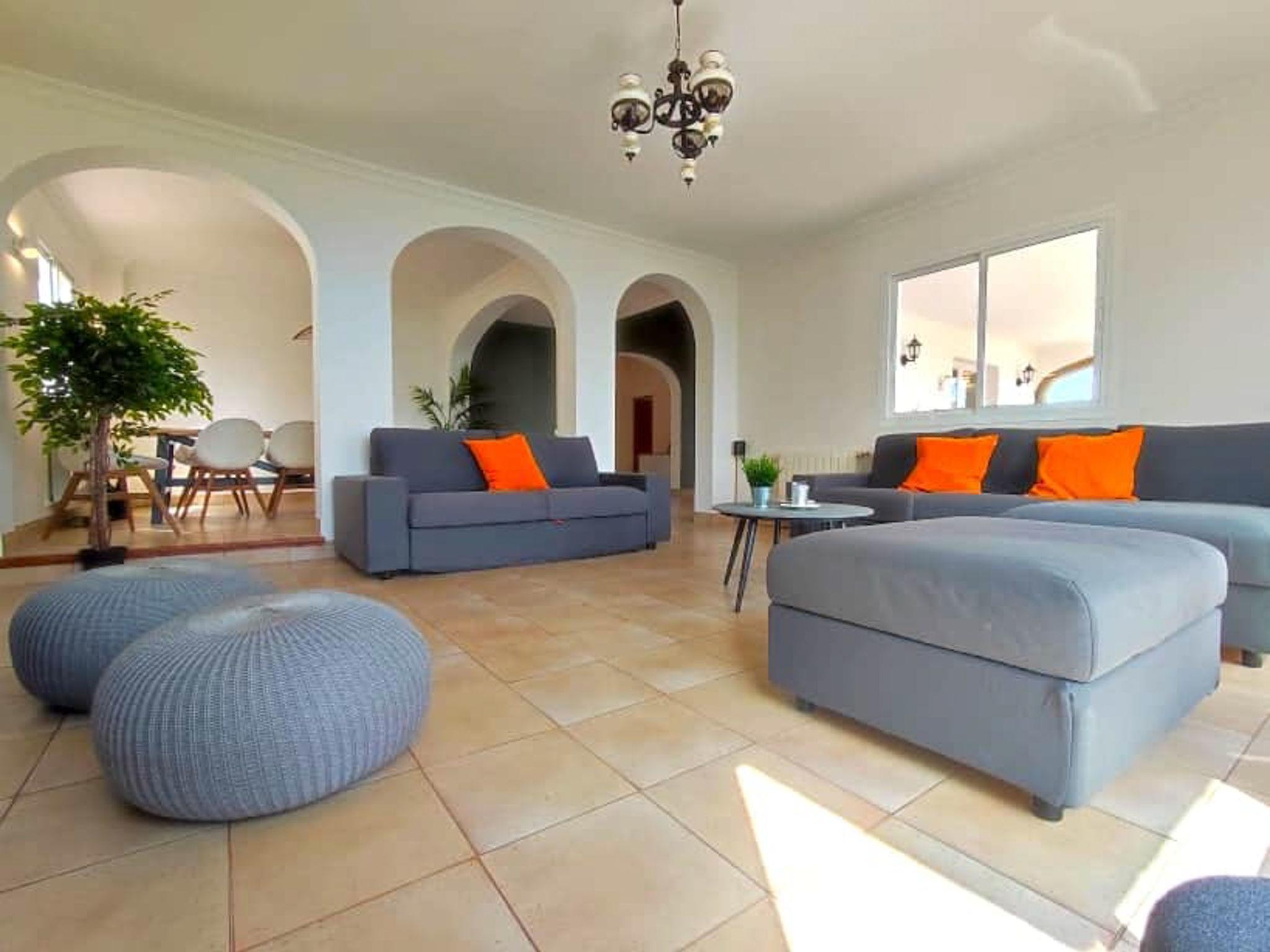 "Atardecer", 5-room villa 230 m2. Comfortable and beautiful furnishings: living/dining room with cable TV (flat screen), radio and hi-fi system. Exit to the patio. 1 room with 2 beds (90 cm, length 190 cm), air conditioning and forced-air heating. 1 room with 1 french bed (160 cm, length 200 cm), bath/WC and air conditioning. Large kitchen (oven, dishwasher, 4 induction hot plates, toaster, kettle, microwave, freezer, electric coffee machine). Bath/WC. Upper floor: 1 room with 1 french bed (140 cm, length 190 cm), air conditioning. 1 large room with 1 french bed (180 cm, length 200 cm), air conditioning, fan and forced-air heating. Exit to the terrace. Shower/WC. Large patio. Terrace furniture, barbecue, deck chairs, covered balcony. Marvellous panoramic view of the sea, the mountains and the resort. Facilities: washing machine, iron, children's high chair, baby cot for up to 3 year olds, hair dryer. Internet (WiFi, free). VUT/MA/51504 // Reg. Nr.: ESFCTU0000290130003448260000000000000000VUT/MA/515040