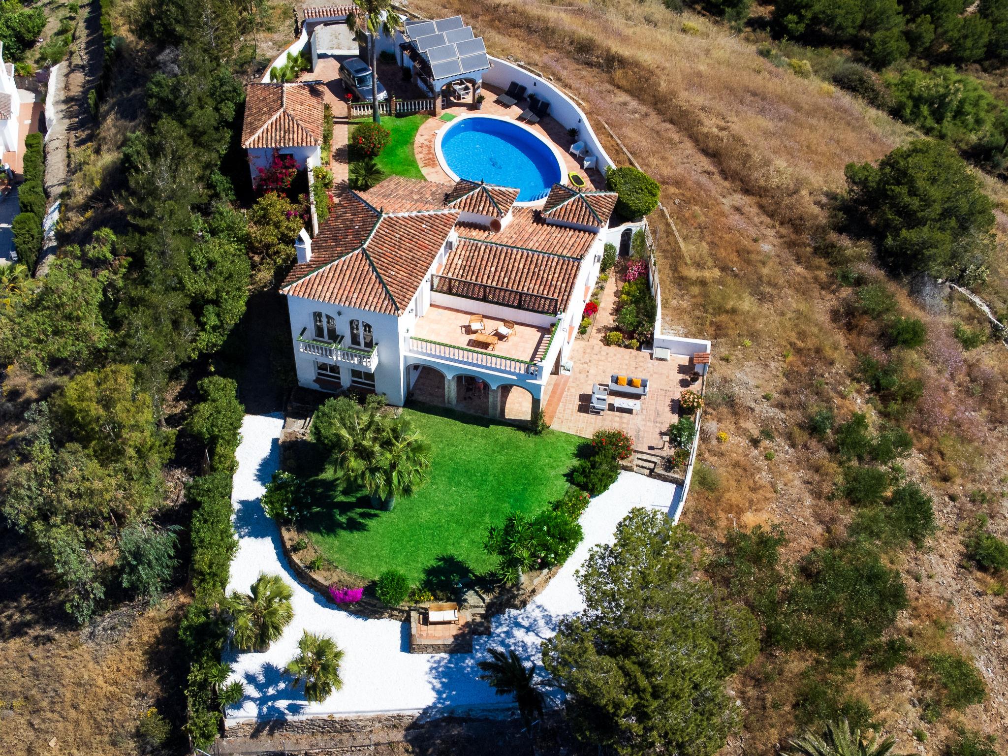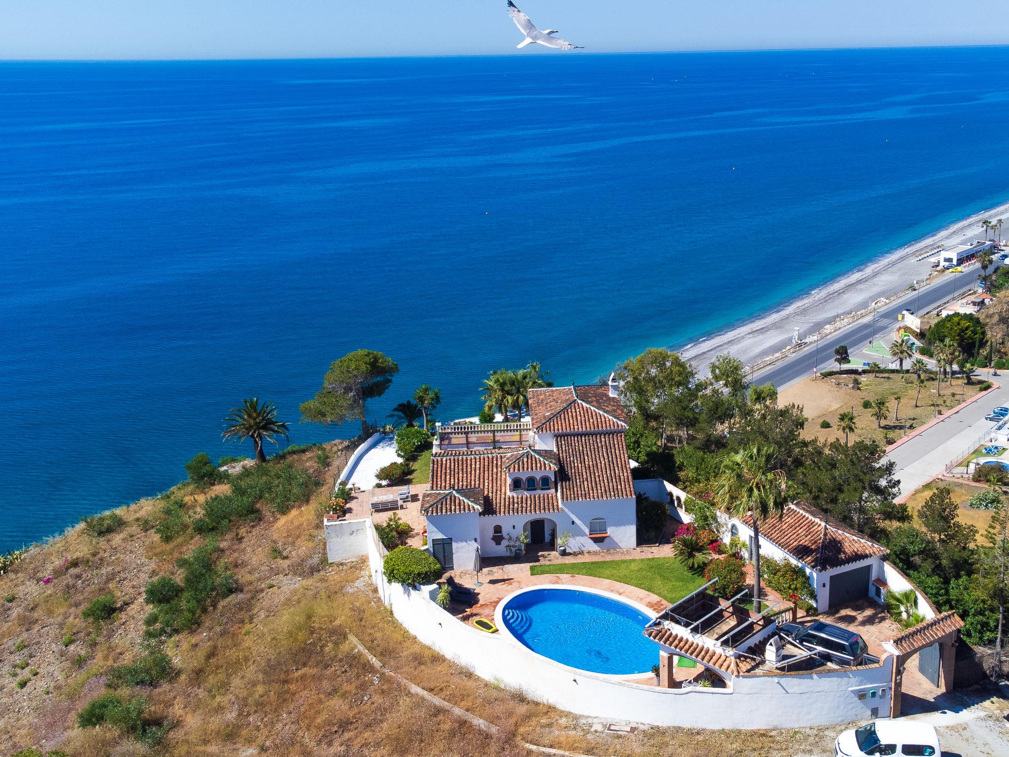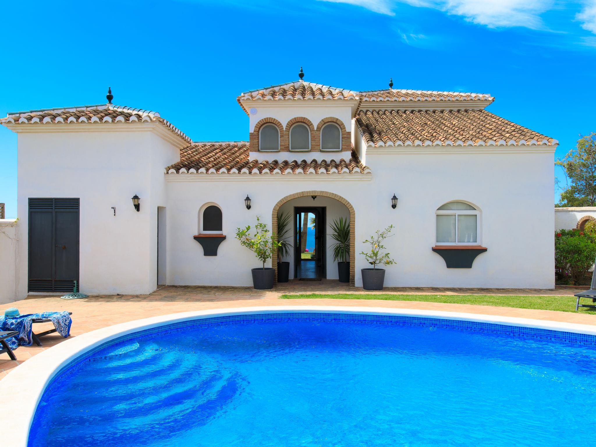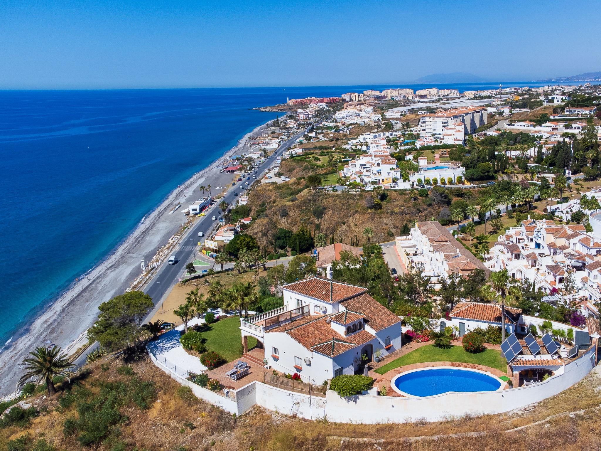 Beautiful, cosy, comfortable villa "Atardecer". In a sunny position residential area (villas), 200 m from the sea, 200 m from the beach, south facing position. Private: property 2'200 m2, beautiful garden to relax, swimming pool round (12 x 7 m, depth 160 - 180 cm, seasonal availability: 01.Jan. - 31.Dec.). Parking (for 2 cars) on the premises. Shop 2 km, grocery 2 km, shopping centre 20 km, restaurant 150 m, bakery 2 km, café, bicycle rental 18 km, bus stop 150 m, railway station "Málaga" 50 km, ferry "Málaga" 50 km, sandy beach "Calaceite", diving center 18 km. Sports harbour 27 km, marina 18 km, golf course (24 hole) 23 km, surf school 40 km, sailing school 27 km, sports centre 18 km. Nearby attractions: Frigiliana, Competa, Malaga, Nerja, Torre del Mar, Cuevas de Maro. Well-known ski regions can easily be reached: Sierra Nevada. Hiking paths: Sierra Almijara, Sierra Tejeda. Please note: car recommended. The owner does not accept any youth groups. Loading and unloading of baggage is possible at the holiday house.