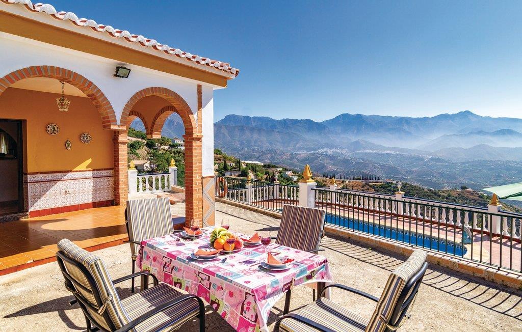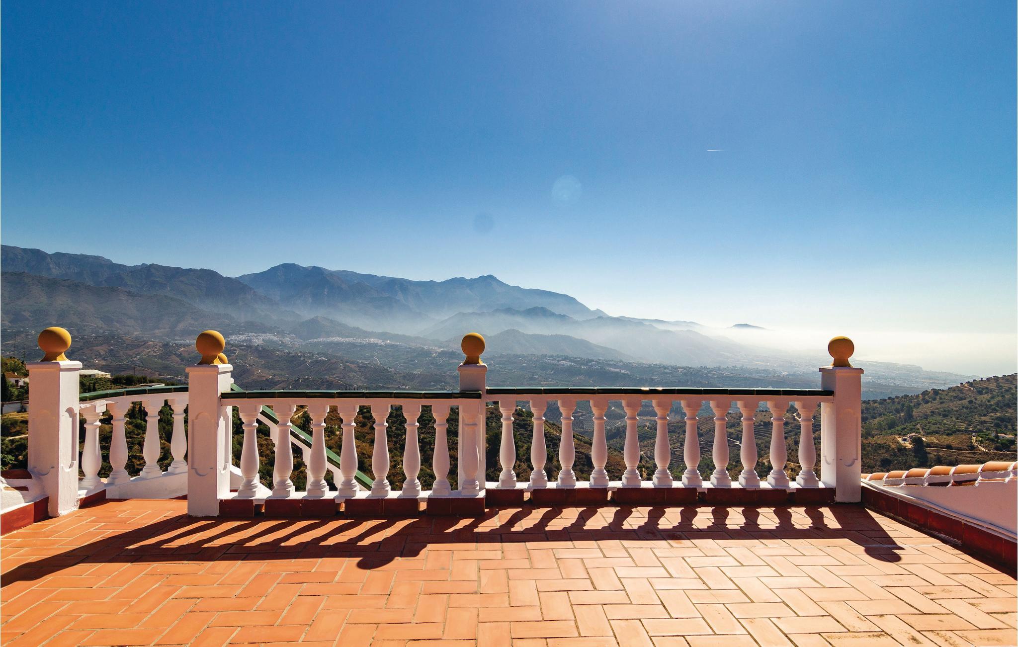 På terrassen til dette feriehuset med basseng kan du tilberede deilige grillretter mens du beundrer de eksepsjonelle omgivelsene i Frigiliana, Tejeda naturpark og Alhama. Den romslige terrassen er perfekt for soling og avslapning. Stuen med peis er det ideelle stedet å lese en god bok på litt kaldere dager. Feriehuset ligger veldig tilbaketrukket, ideelt hvis du er ute etter absolutt fred og avslapning. Bare 7 km fra Torrox med sine typiske tapasbarer og utmerkede restauranter og ca. 8 km fra Nerja.