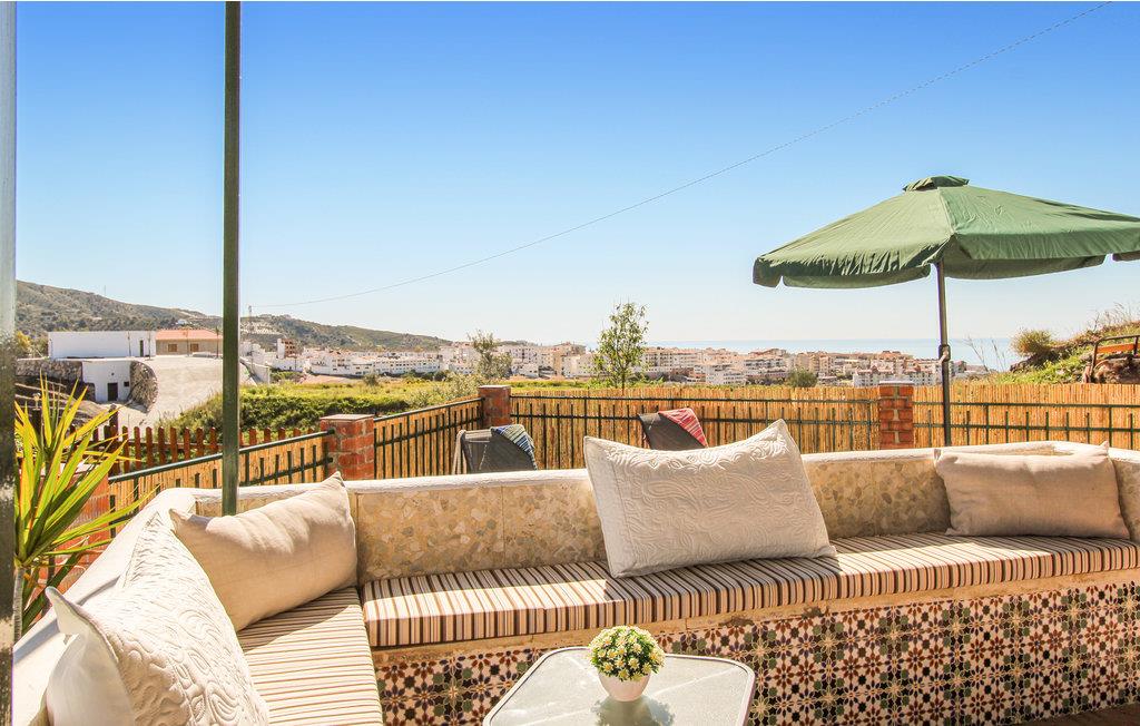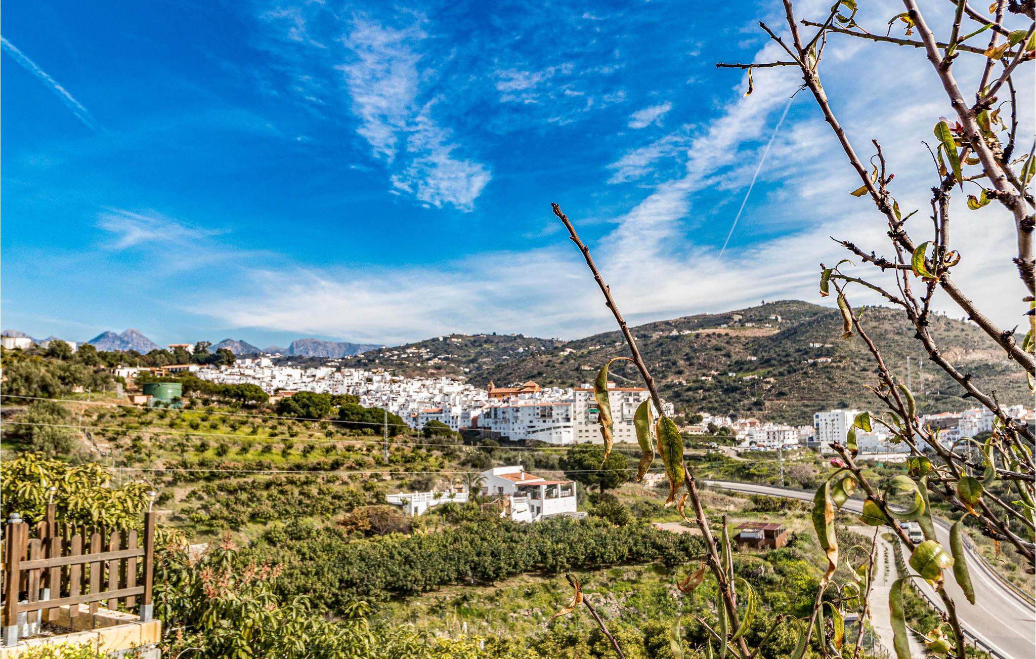 Det er utsikt over byen Torrox og Middelhavet i bakgrunnen.