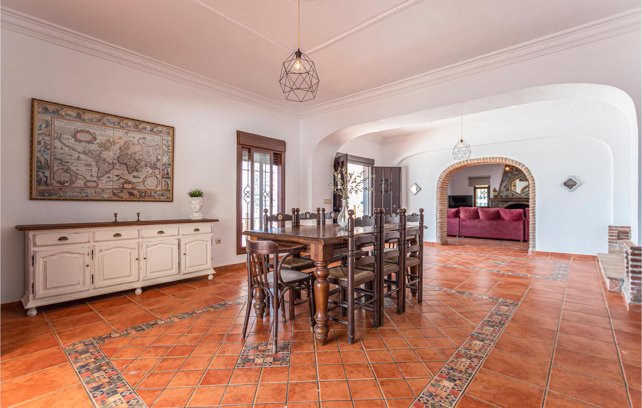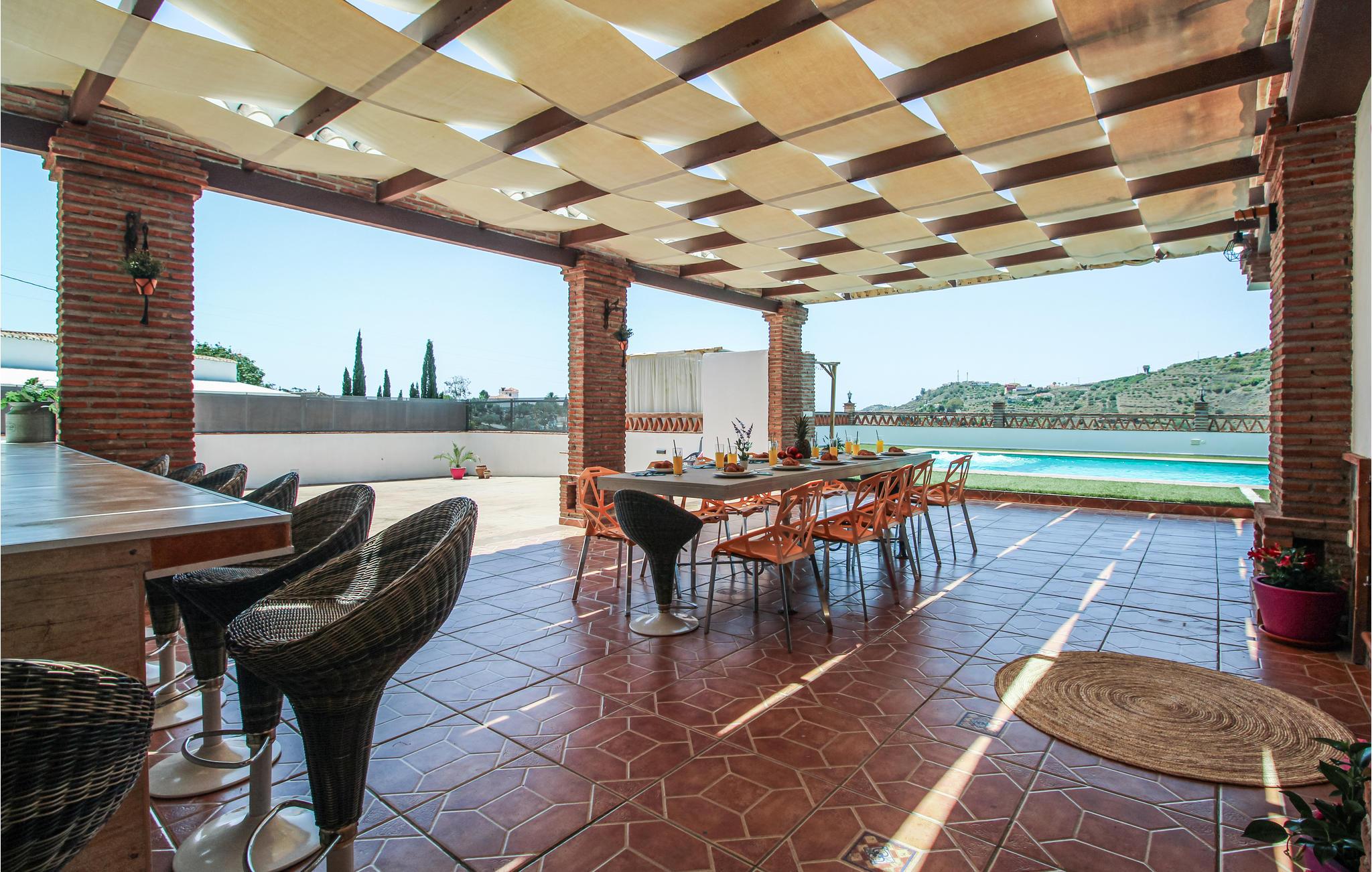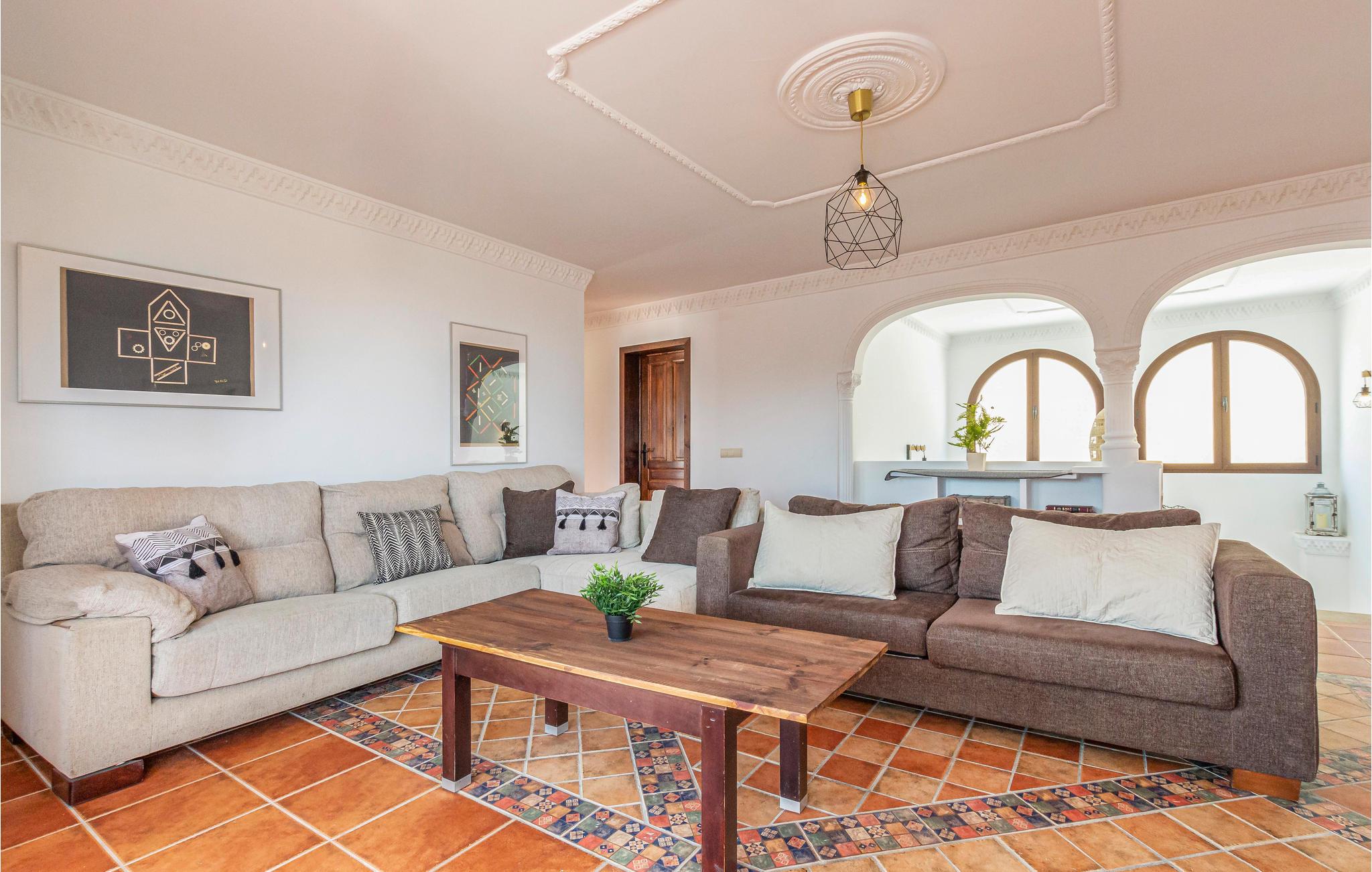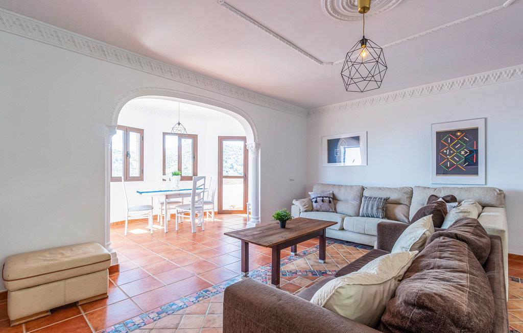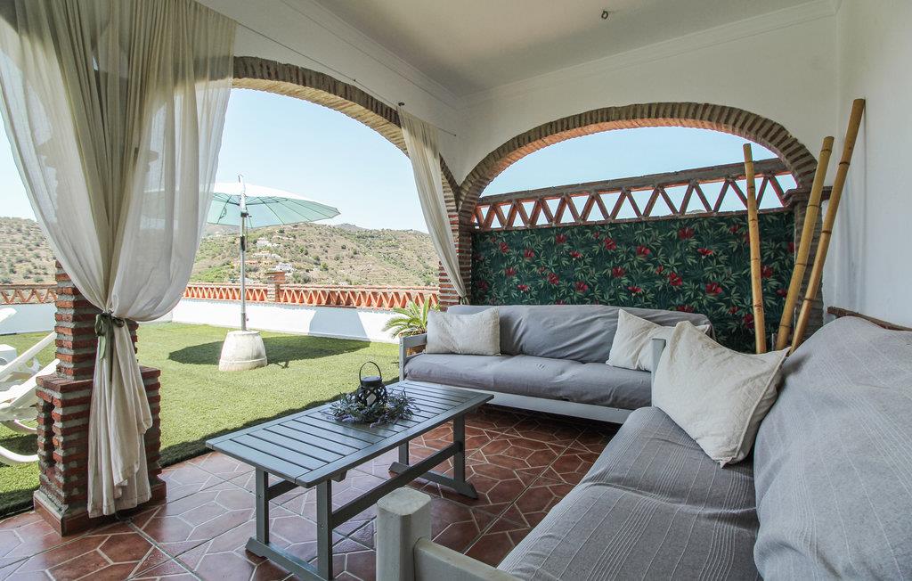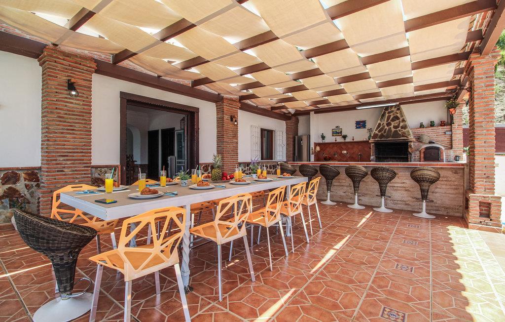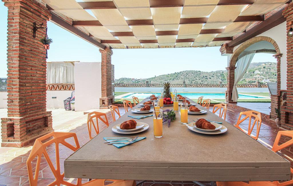 Denne flotte villaen byr på mye plass å slappe av på. Interiøret er lyst og trivelig, men høydepunktet er uteområdet. Her finner du et stort privat basseng med boblebad og komfortable hagemøbler hvor du kan nyte det fantastiske været i Sør-Spania hele dagen. På terrassene, som delvis er overbygd, finner du mange koselige kroker. Her kan du spise frokost om morgenen eller avslutte dagen med et glass vin. Det finnes også et utekjøkken for hyggelige grillkvelder.