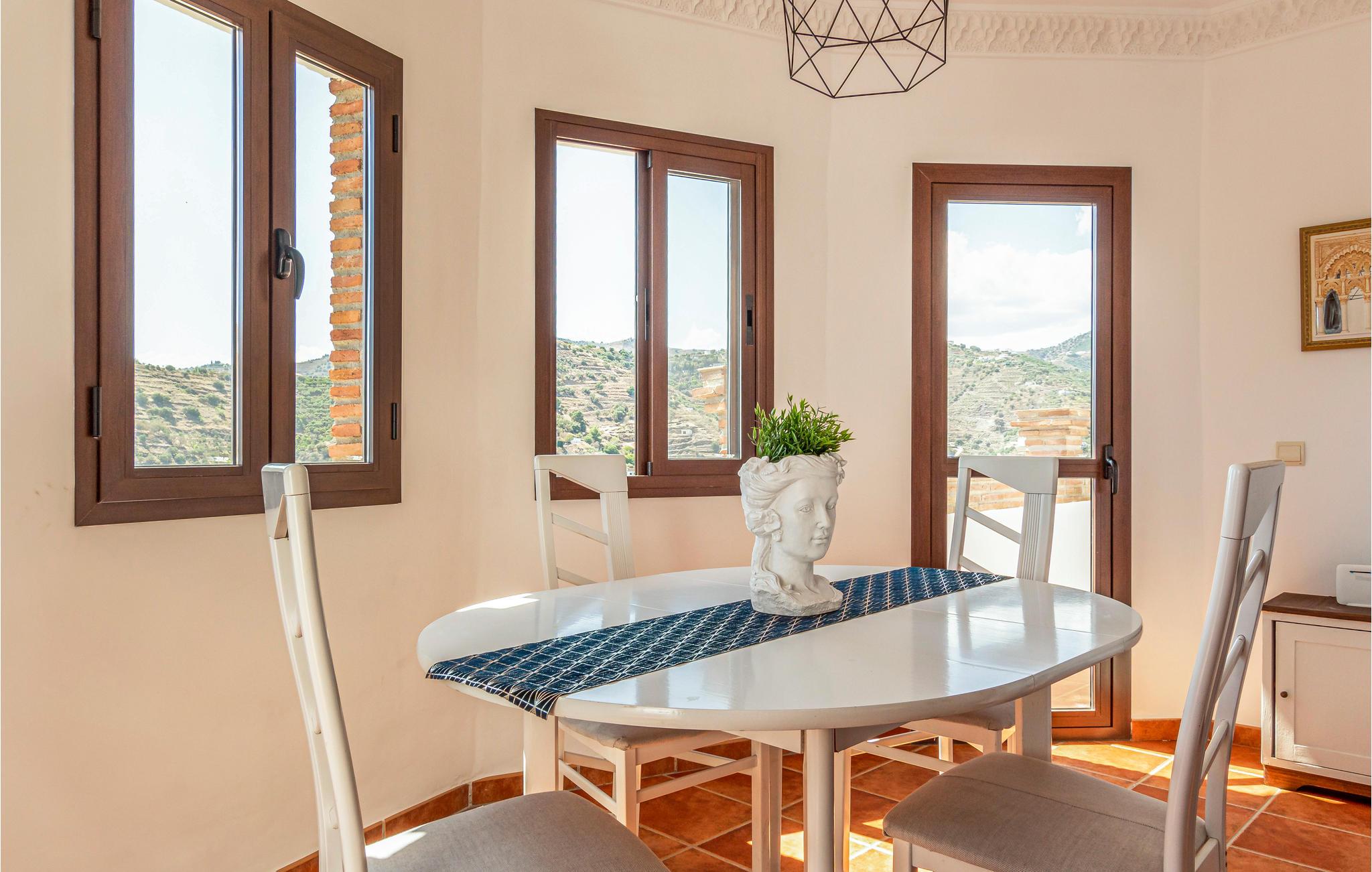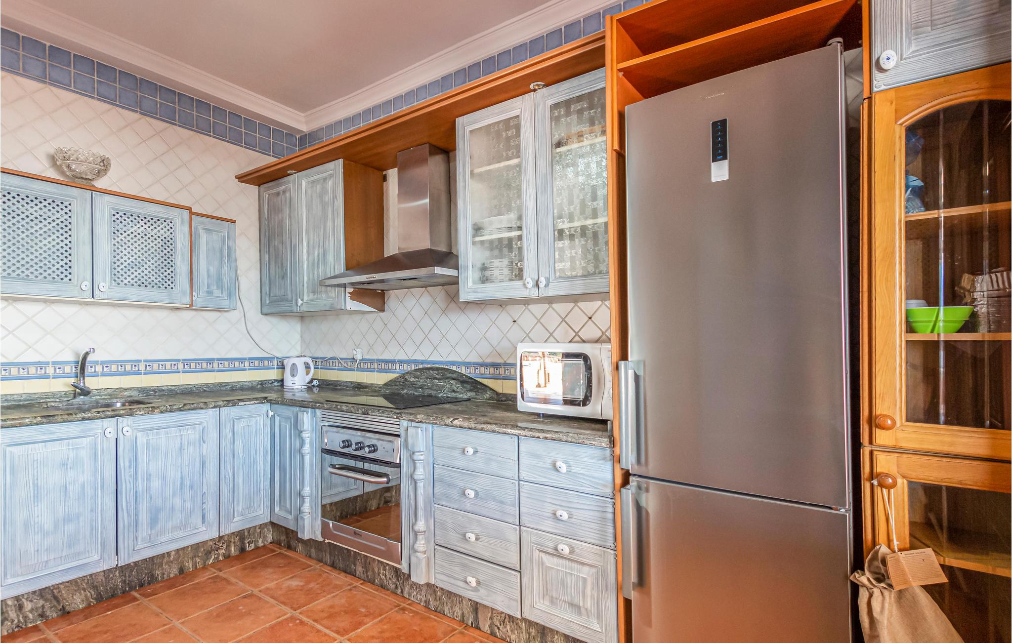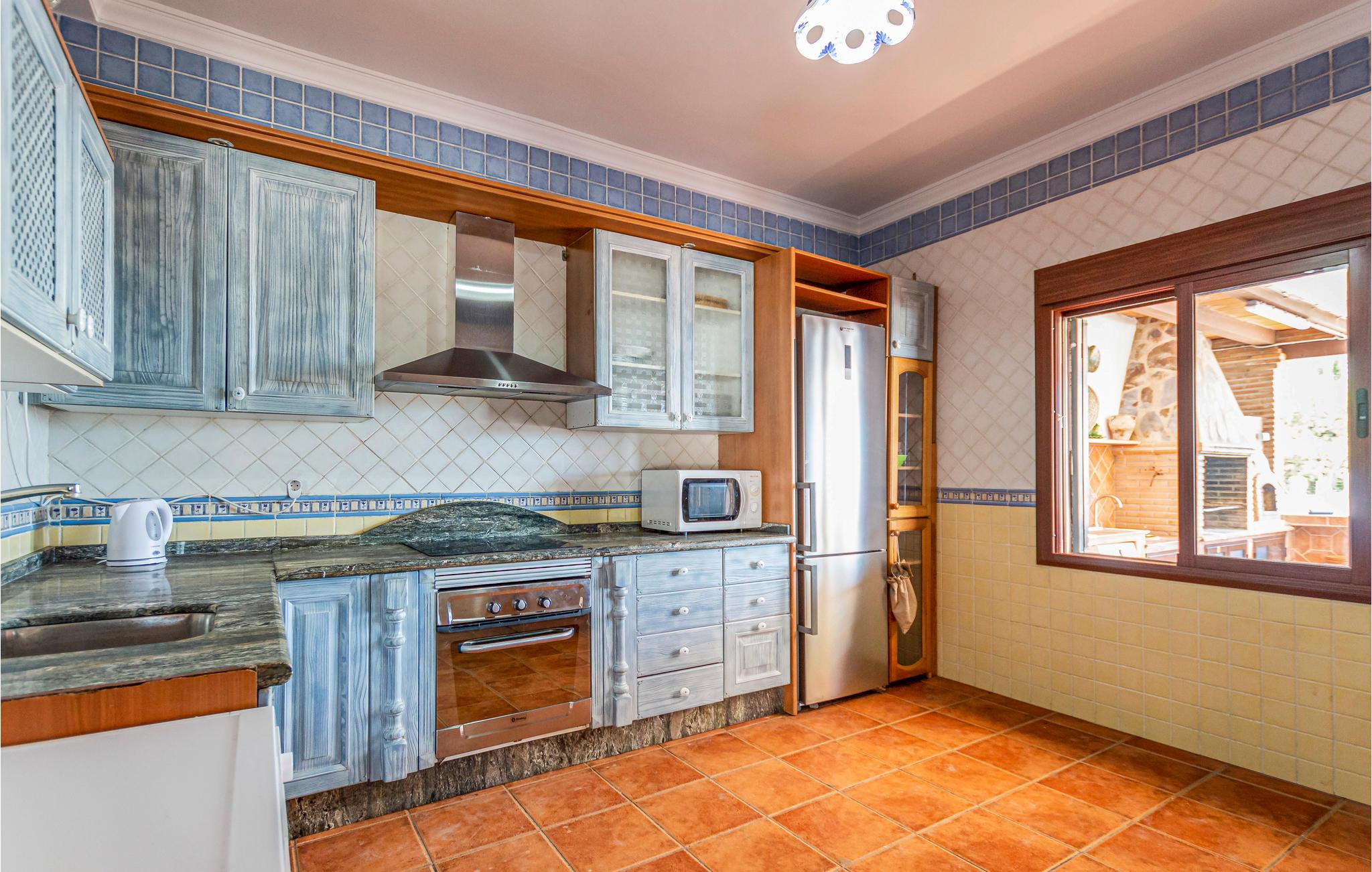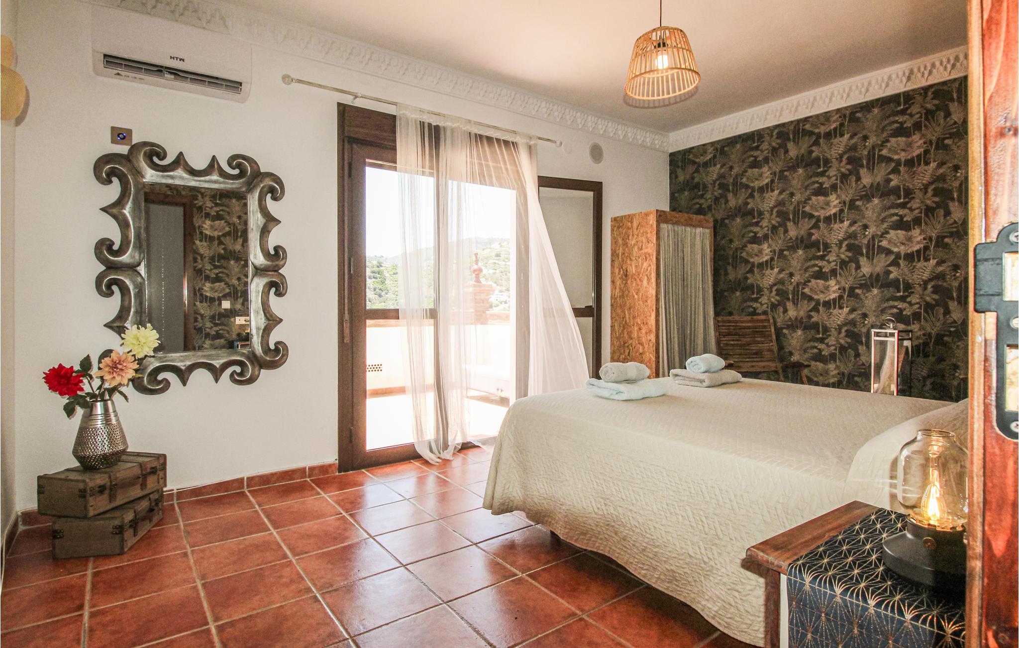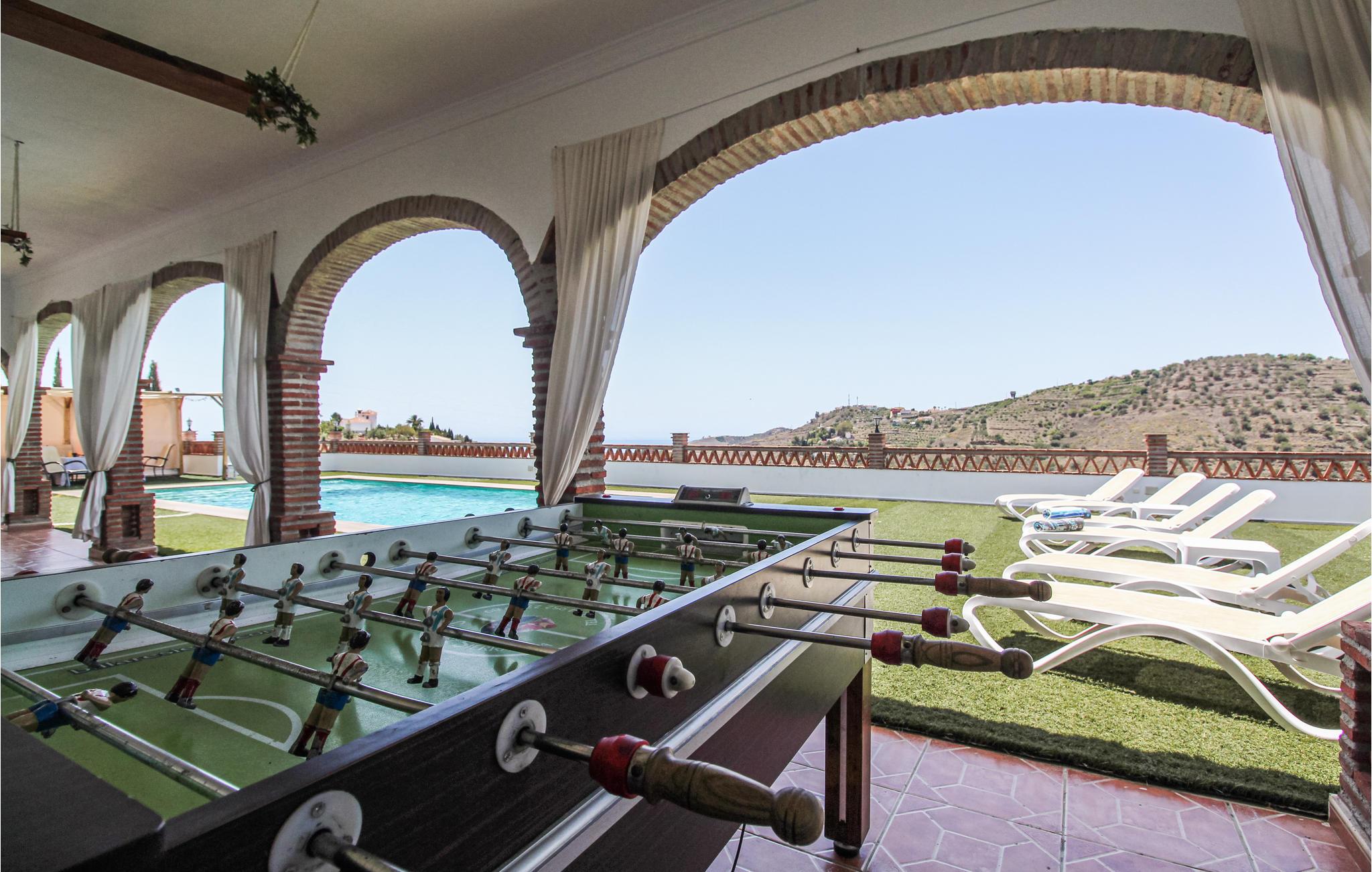 Denne flotte villaen byr på mye plass å slappe av på. Interiøret er lyst og trivelig, men høydepunktet er uteområdet. Her finner du et stort privat basseng med boblebad og komfortable hagemøbler hvor du kan nyte det fantastiske været i Sør-Spania hele dagen. På terrassene, som delvis er overbygd, finner du mange koselige kroker. Her kan du spise frokost om morgenen eller avslutte dagen med et glass vin. Det finnes også et utekjøkken for hyggelige grillkvelder.