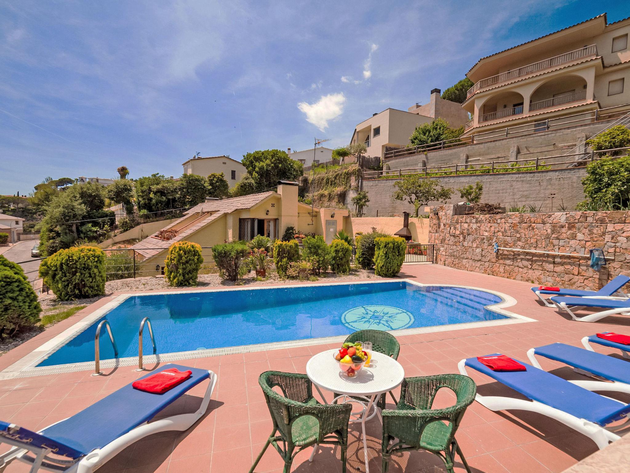 Santa Maria de Llorell 3 km from center Tossa de Mar: Beautiful, cosy apartment house "Cala Llorell", 2 storeys, semi-detached. Residencial Santa Maria Llorell, in a quiet position residential area (villas), traffic calmed area, 980 m from the sea, 980 m from the beach. Private: terraced garden (fenced), swimming pool angular, secured, fenced (8 x 5 m, seasonal availability: 05.Apr. - 10.Nov.). Outdoor shower, patio, arbour, garden furniture, barbecue, pool maintenance by the owner/gardener. In the house: washing machine. Stepped path (30 steps) to the house. Shop, supermarket 550 m, shopping centre 3 km, restaurant 900 m, bus stop "Santa Maria Llorell" 800 m, railway station "Blanes" 15 km, sandy beach "Santa Maria de Llorell" 980 m. Nearby attractions: Tossa de Mar Castle 3 km, Waterworld 10 km, Marineland 15 km, Jardin Botanico Pinya de Rosa 11 km, Jardin Botanico Marimurtra 12 km. Please note: car recommended. Suitable for families. The owner does not accept any youth groups. Owner lives in separate semi-detached house. The owner has a dog.
