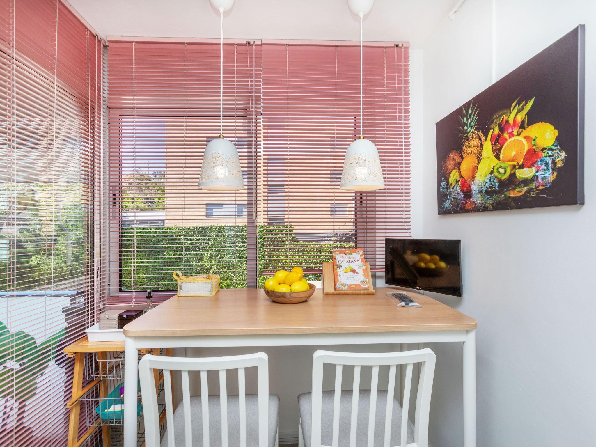 "Silves", 4-room apartment 78 m2, north facing position. Spacious and bright, comfortable and cosy furnishings: large living/dining room, south facing position and east facing position with dining table, digital TV, air conditioning and fan. Exit to the terrace. 1 double bedroom with 1 french bed (150 cm, length 200 cm), shower/bidet/WC, TV and fan. 1 children's room with 1 bed (90 cm, length 200 cm), fan. 1 double bedroom with 1 french bed (135 cm, length 190 cm). Large kitchenette (3 hot plates, oven, dishwasher, toaster, kettle, microwave, freezer, electric coffee machine) with fan. Exit to the terrace, to the loggia. Shower/WC. No heating option. Parquet floors. Balcony furniture. View of the swimming pool, the garden and the resort. Facilities: washing machine, iron, children's high chair, baby cot for up to 2 year olds, hair dryer. Internet (WiFi, free). Parking space n 26 (1 car). Please note: suitable for families apartment street side. Non-smokers only. TV only ES. Smoke alarm, fire extinguisher. HUTG-073609 // Reg. Nr.: ESFCTU000017022100049529000000000000000HUTG-0736-893