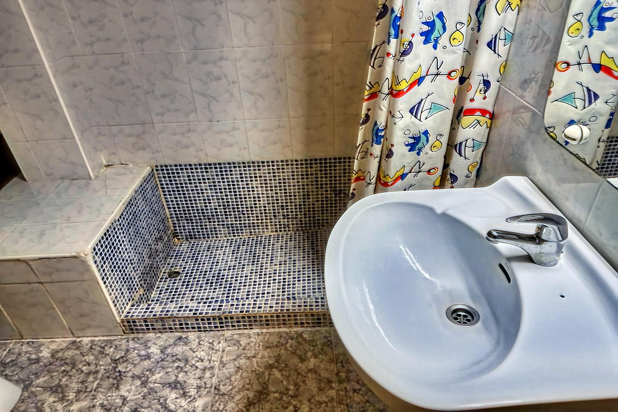 Velkommen til ditt rolige tilfluktssted i første etasje, hvor komfort møter bekvemmelighet på alle måter. Gå inn i den romslige stuen, utsmykket med en myk dobbel sovesofa, et sjarmerende spisebord og en koselig sittegruppe hvor du kan slappe av etter en dag med utforsking. Hold deg kjølig og uthvilt med det beroligende klimaanlegget, som sikrer en hyggelig atmosfære under hele oppholdet. Gå ut til den innbydende hagen, en rolig oase hvor du kan lene deg tilbake, slappe av og nyte de rolige omgivelsene. Enten du nipper til morgenkaffen eller nyter en rolig kveldscocktail, er denne uteplassen det perfekte stedet for å slappe av og koble til naturen igjen. Med det travle sentrum kun 500 m unna og den glitrende sjøstranden kun 100 m fra dørstokken din, vil du finne deg selv perfekt plassert for å utforske alt dette pulserende reisemålet har å tilby. Enten du spaserer langs de sjarmerende gatene i sentrum eller soler seg på den gylne sanden på stranden, ethvert eventyr er innen rekkevidde fra den koselige leiligheten din. Tilbered deilige måltider med letthet i det velutstyrte kjøkkenet, komplett med alle fasiliteter du trenger for å piske opp kulinariske herligheter. Enten du er en erfaren kokk eller bare har begynt, vil dette kjøkkenet garantert inspirere din kulinariske kreativitet. Etter en dag med eventyr kan du trekke deg tilbake til de komfortable soverommene, hvor fredelig søvn venter. Synk ned i det myke sengetøyet og dra avgårde til drømmeland, forynge kropp og sinn for nok en dag med spenning.