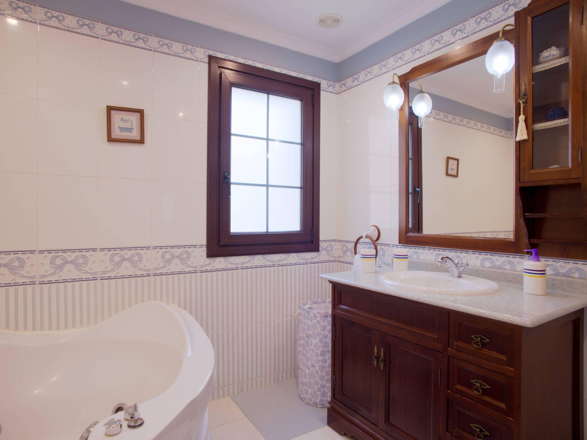 It has a comfortable, open-plan layout: Kitchen-dining room with everything necessary (fridge, freezer, dishwasher, microwave, vitro-ceramic cooker and all the small electrical appliances for daily use). Two bathrooms inside the main house, one of the bathrooms with Jacuzzi bath and the second bathroom with Jacuzzi shower. Three bedrooms with double beds. Small living room with sofa-bed and television. Spacious living-dining room.